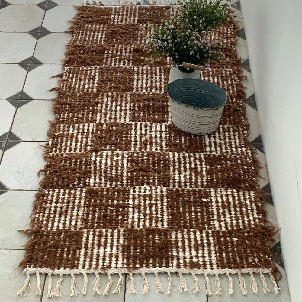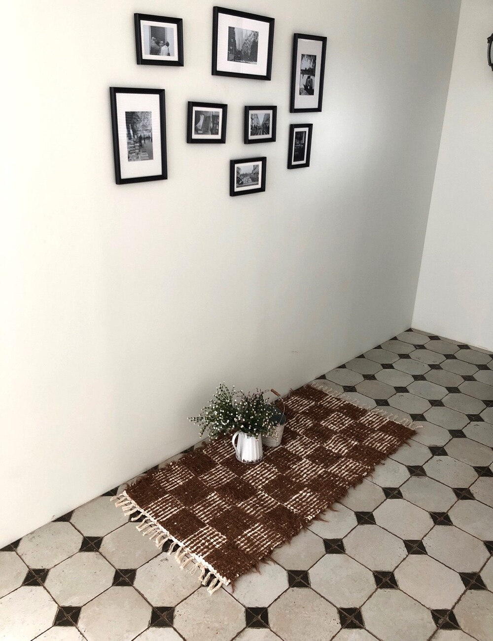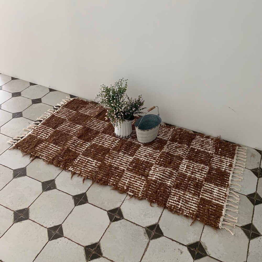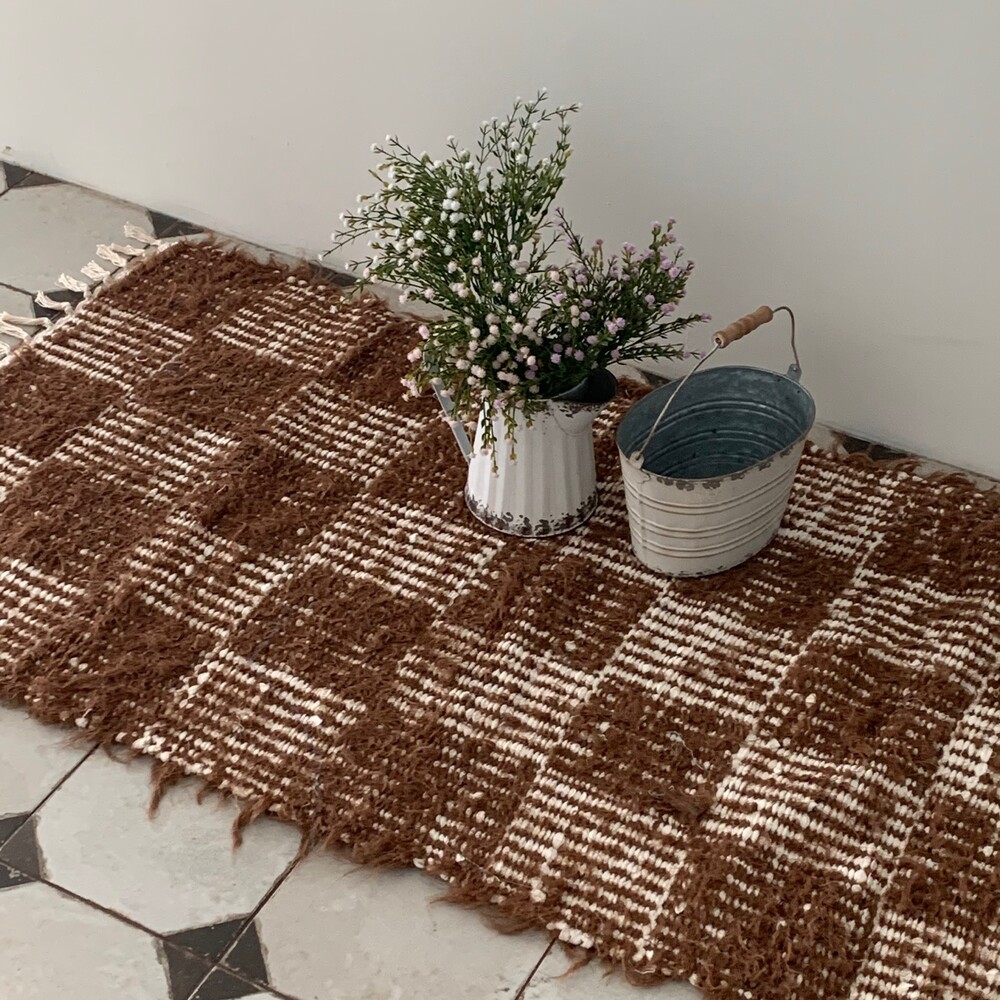 (포르투갈 수입) 핸드메이드 브라운 체커 러그
