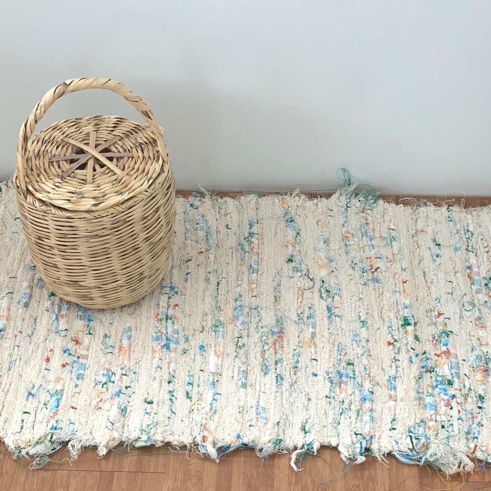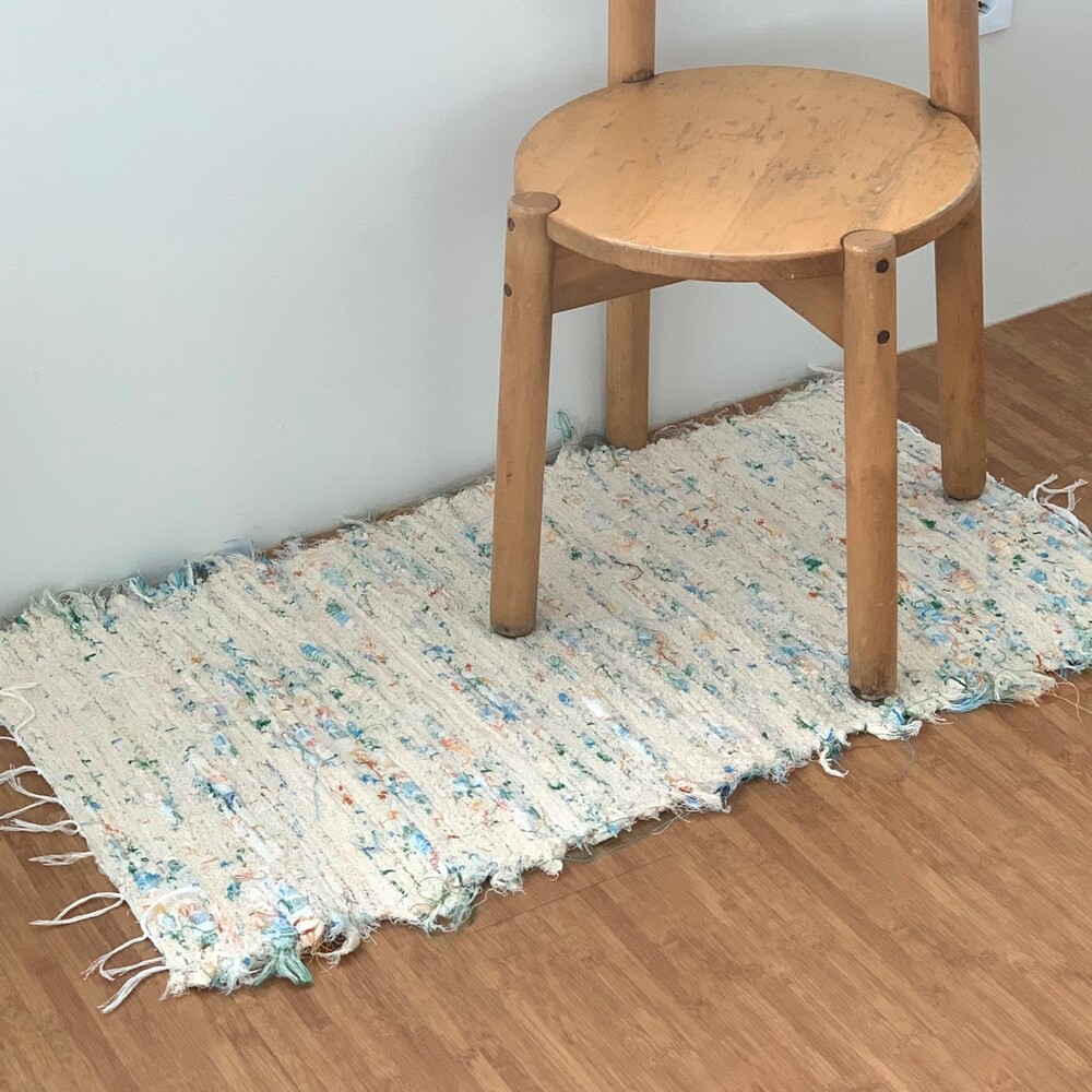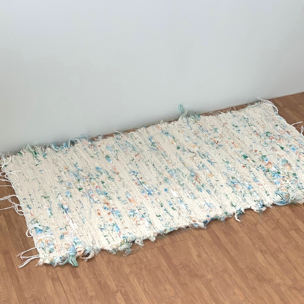 크림 컬러 바탕에 여러 컬러들이 믹스 된 러그 입니다.