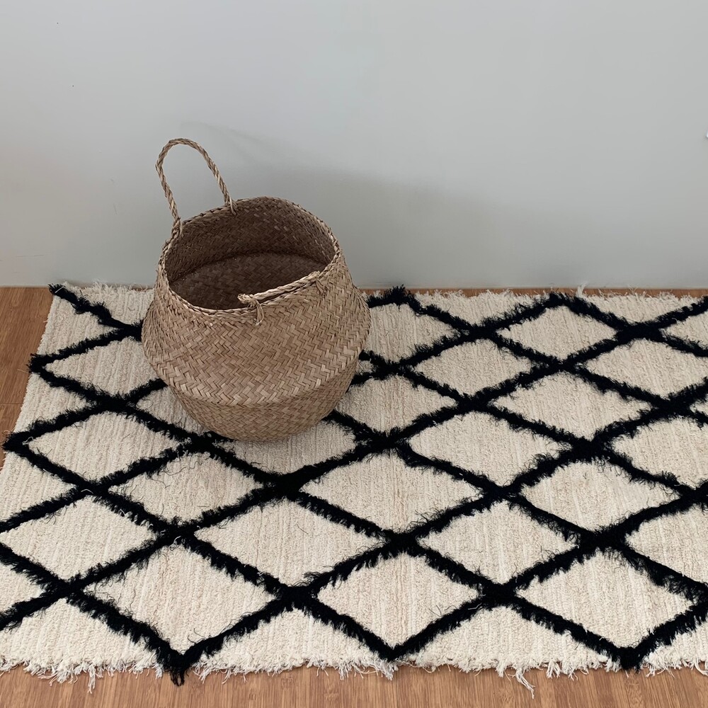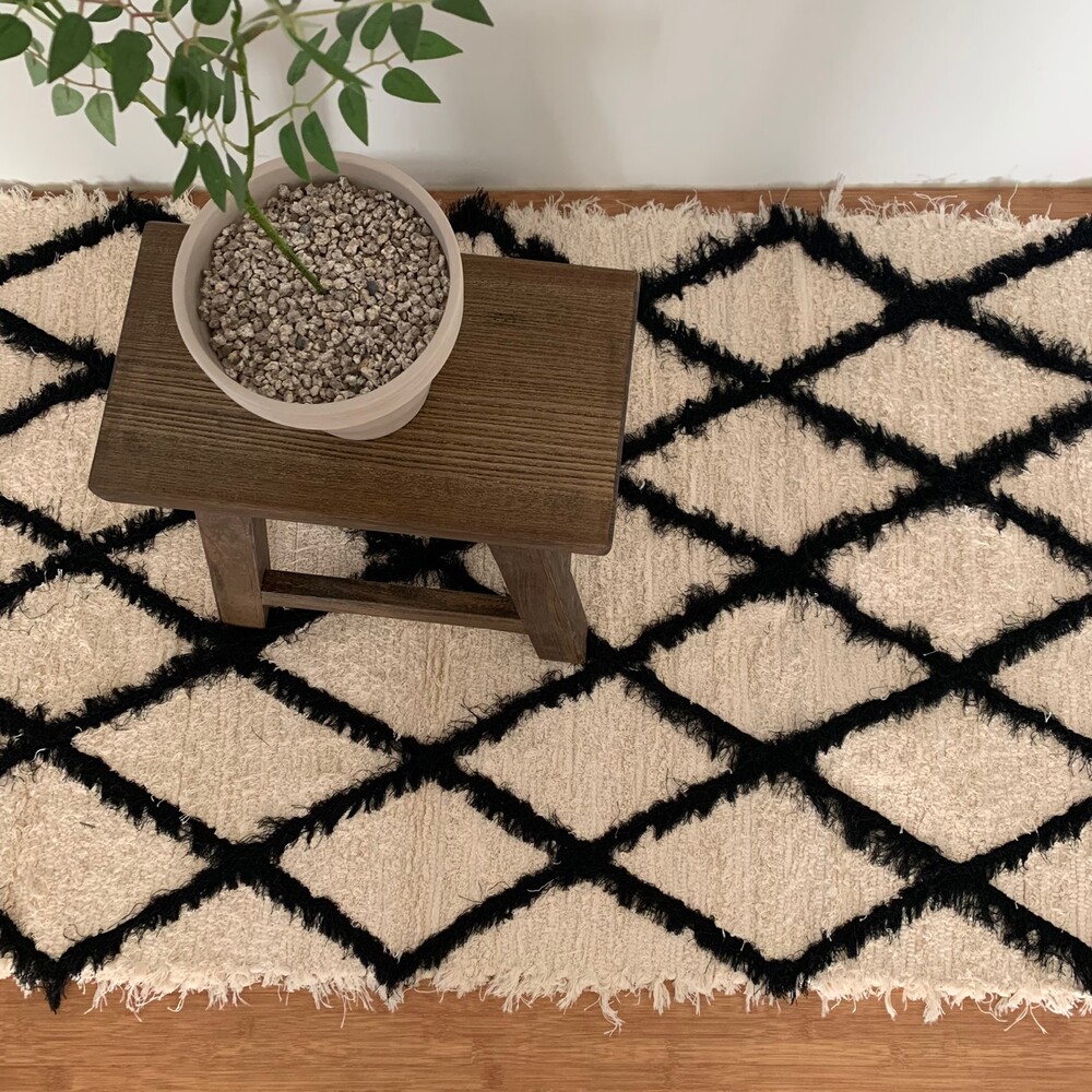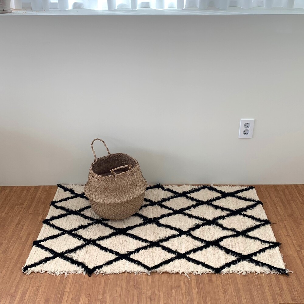 크림 컬러 바탕에 블랙 다이아몬드 라인이 더해진 미듐 사이즈 러그입니다.