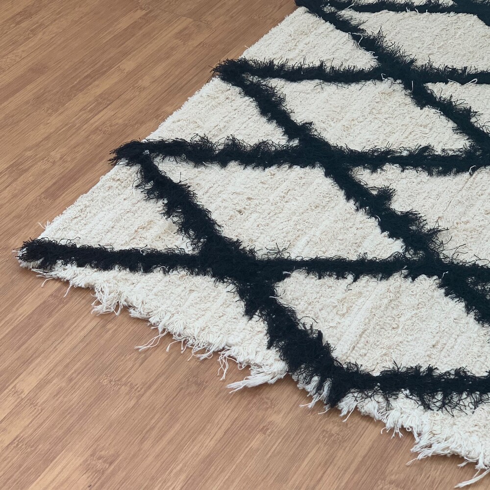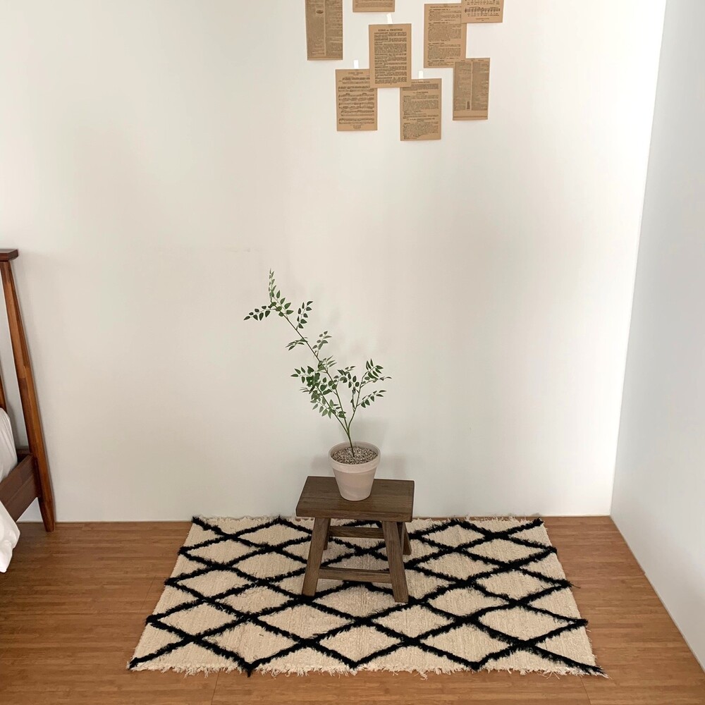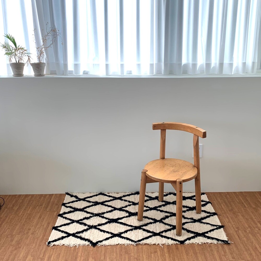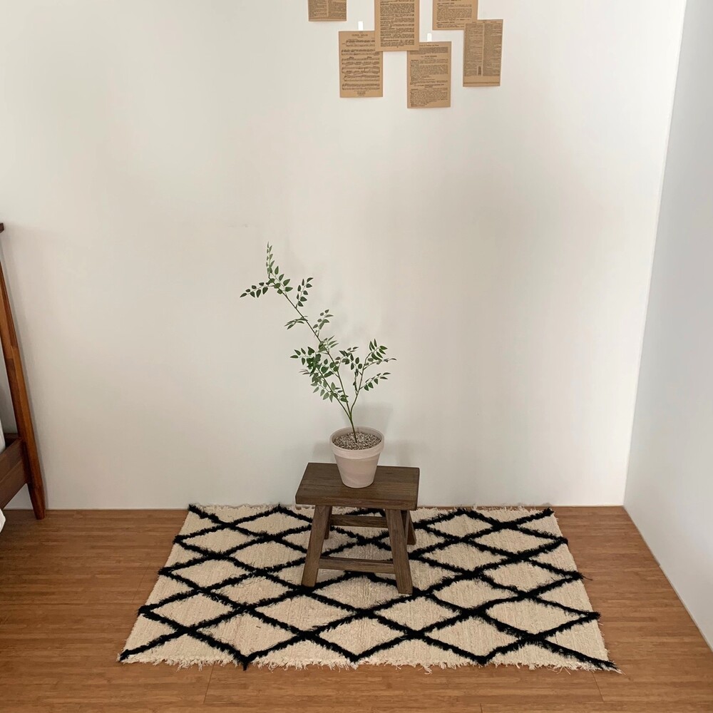 크림 컬러 바탕에 블랙 다이아몬드 라인이 더해진 미듐 사이즈 러그입니다.