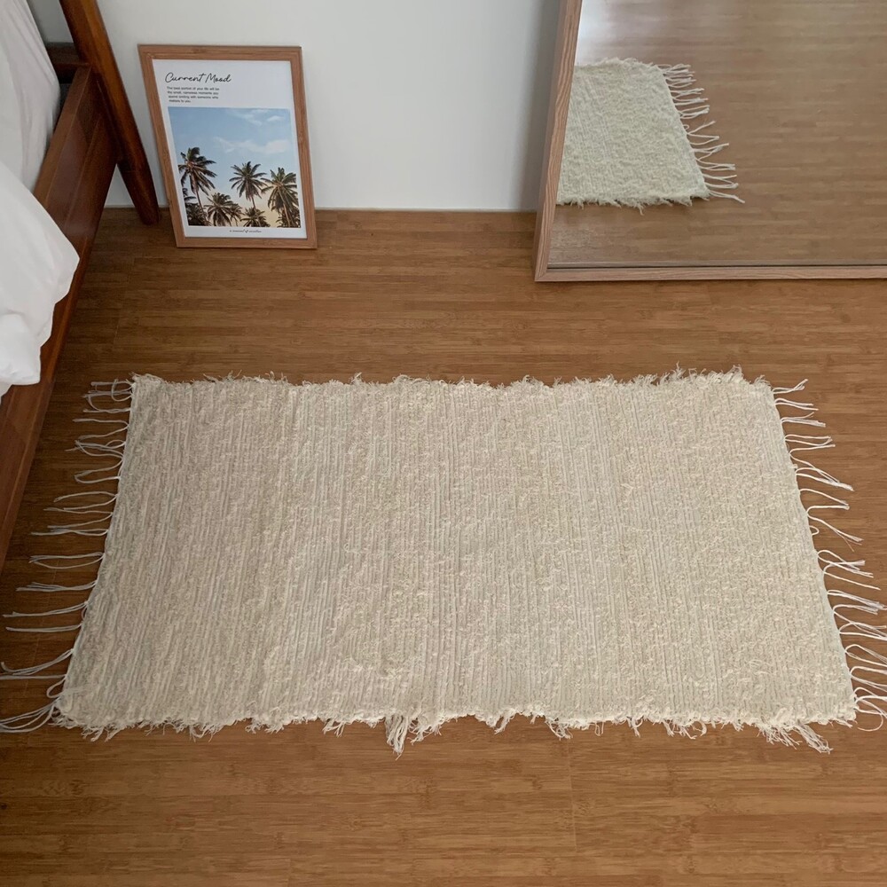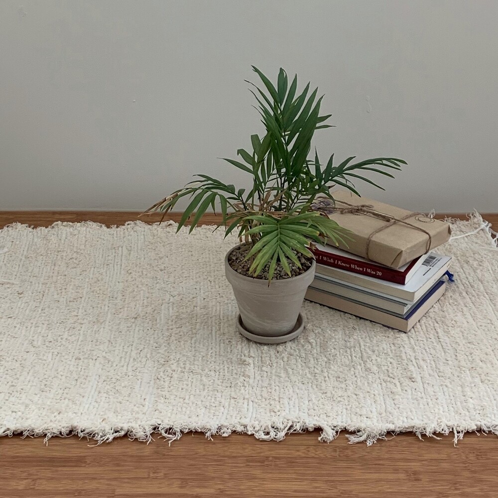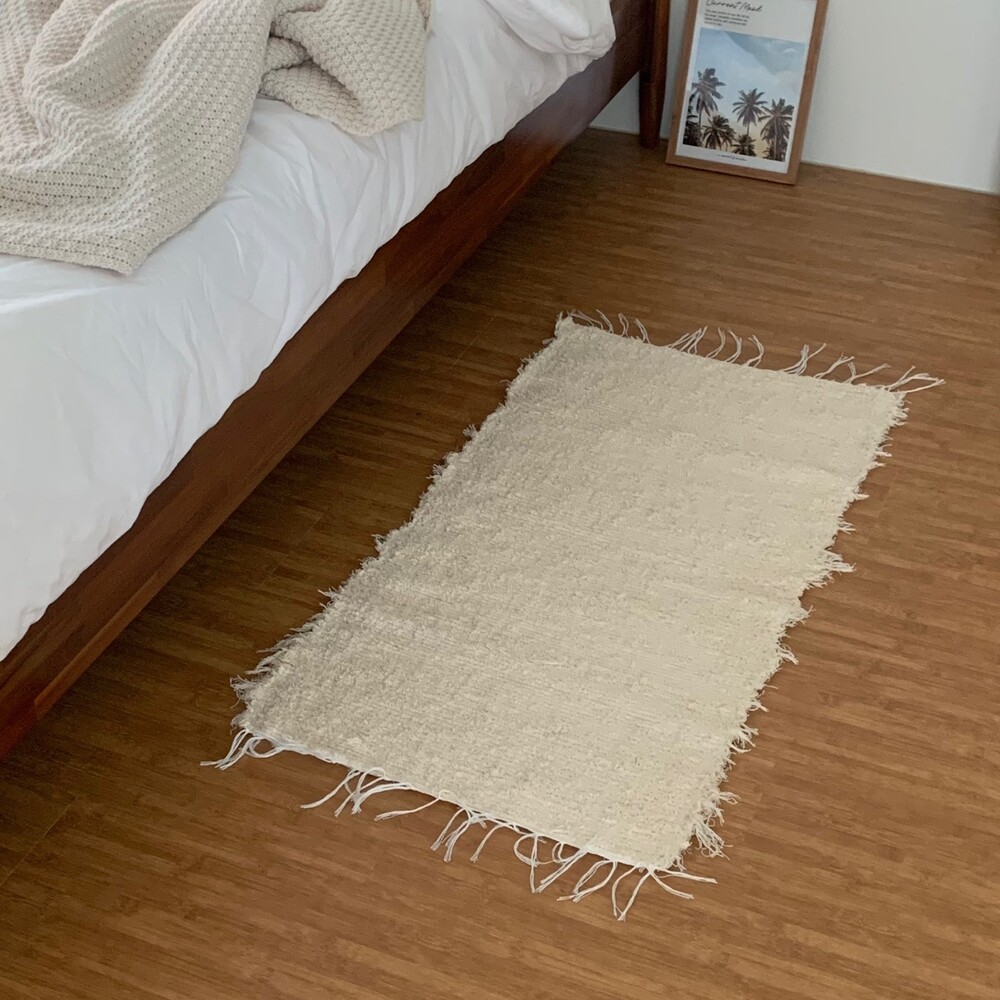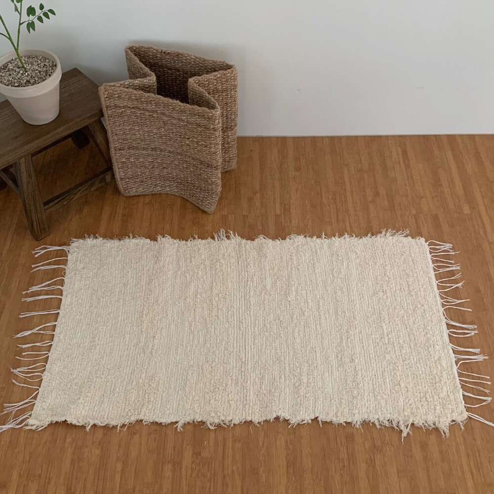 크림 빛이 감도는 아이보리 컬러의 스몰 사이즈 러그 입니다.