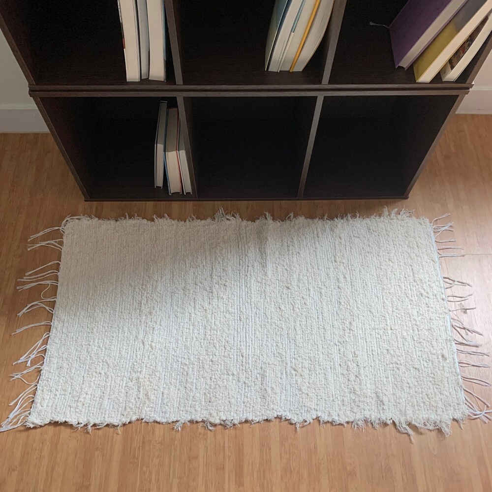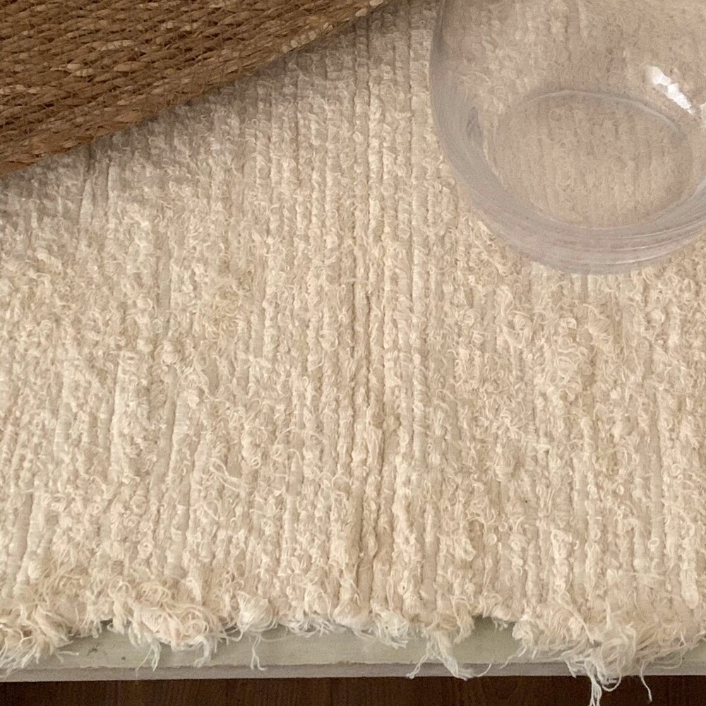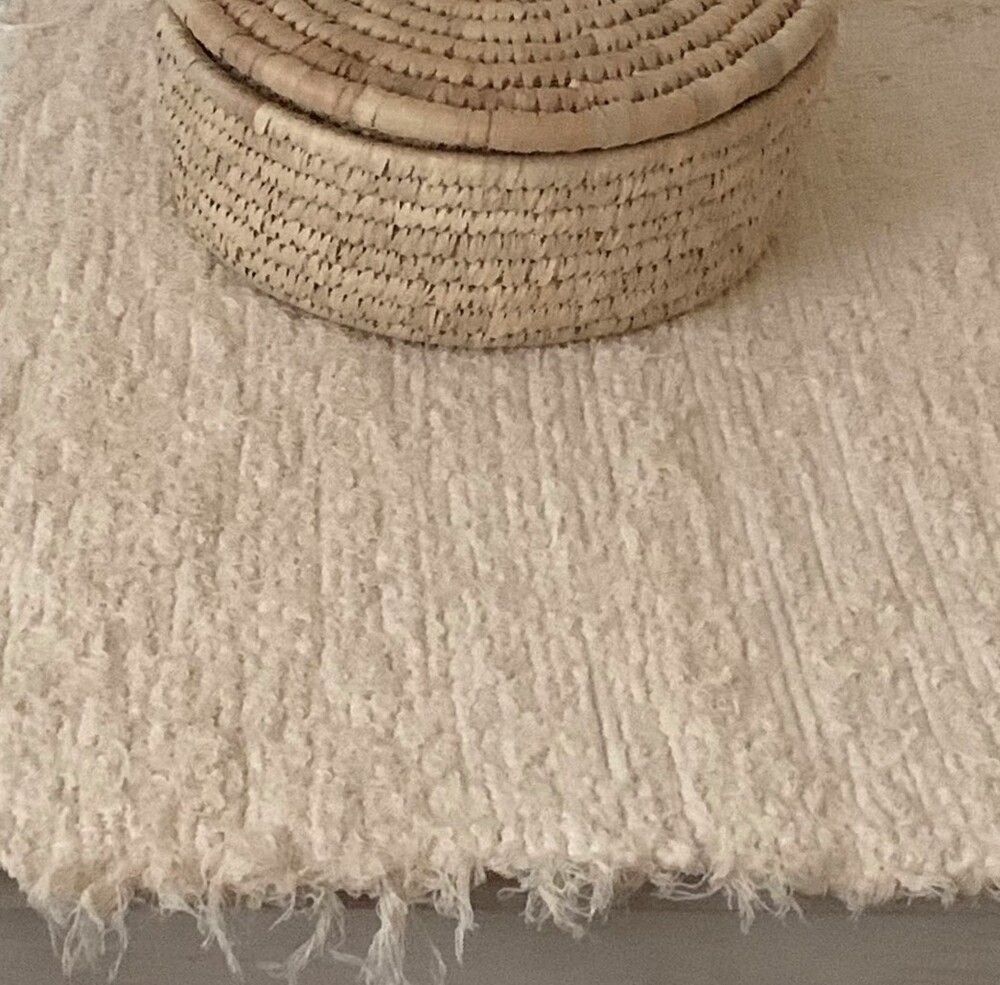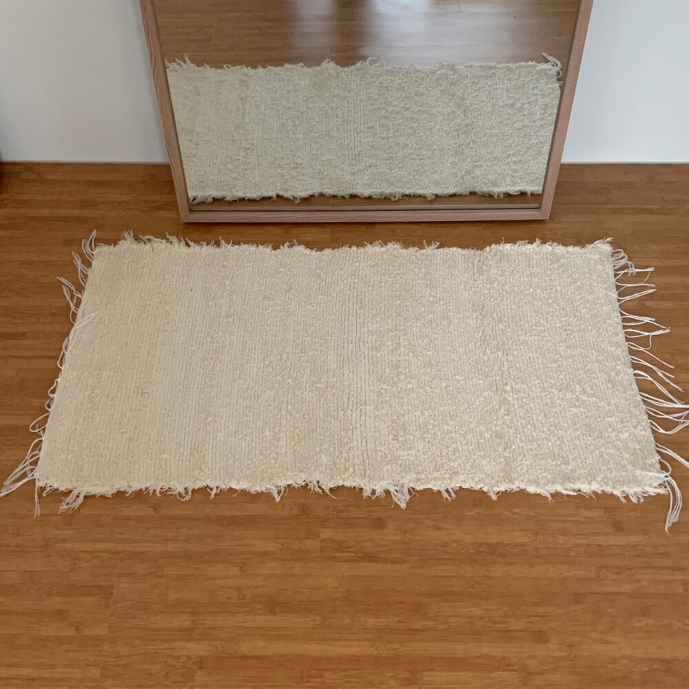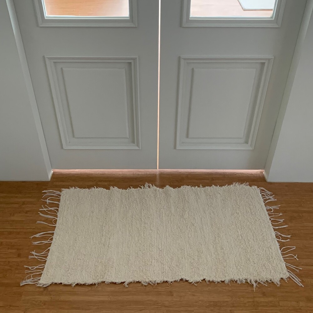 크림 빛이 감도는 아이보리 컬러의 스몰 사이즈 러그 입니다.