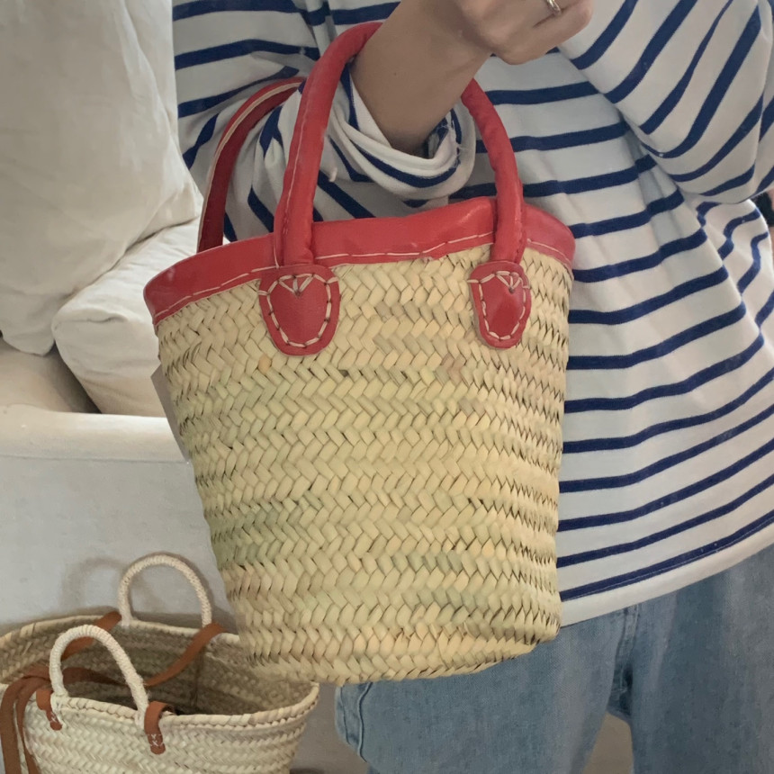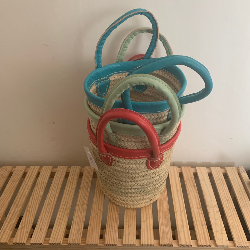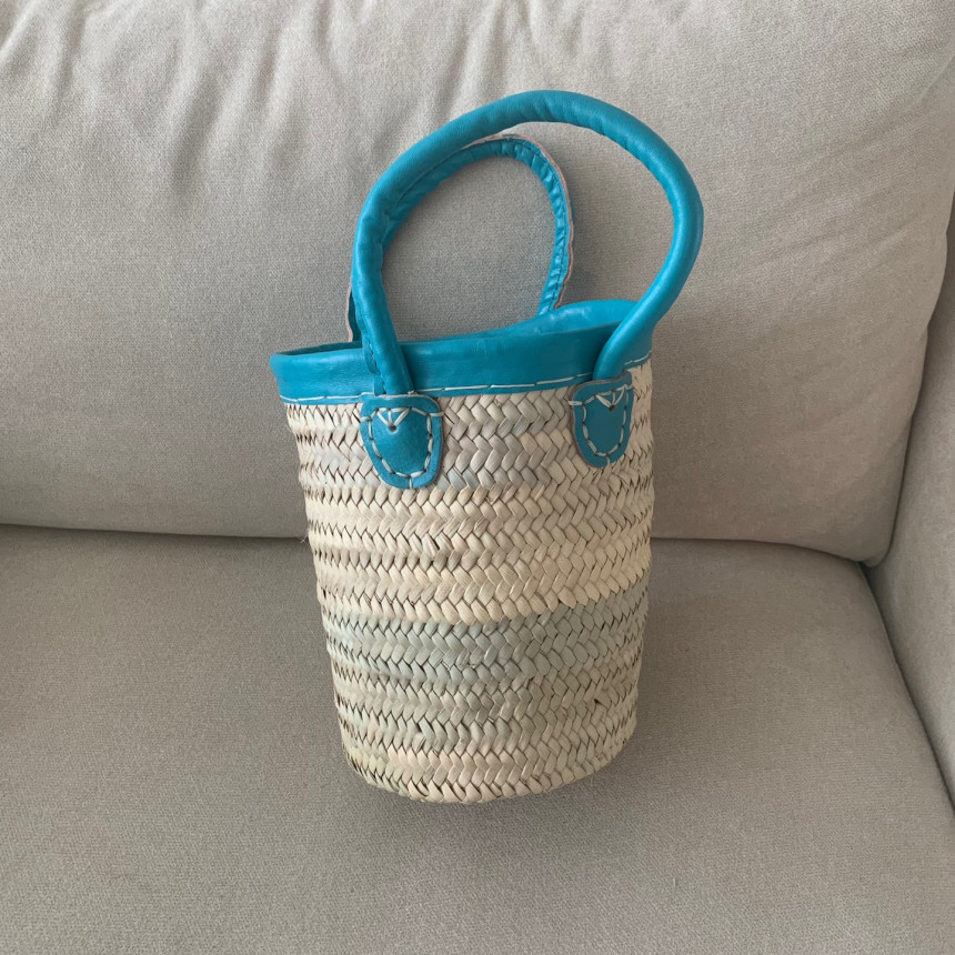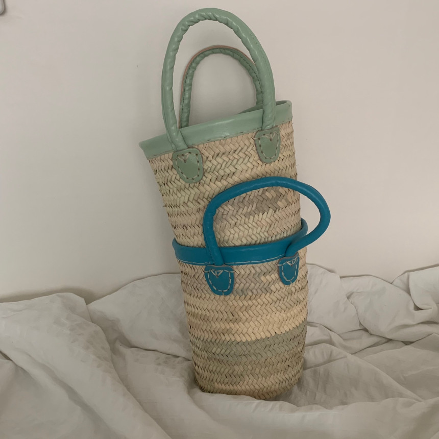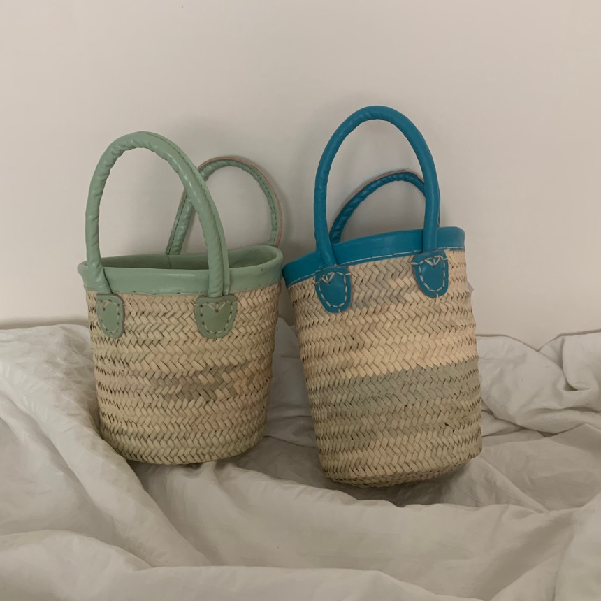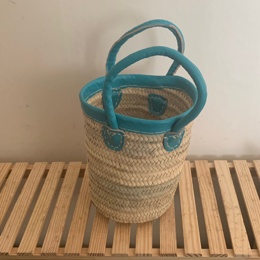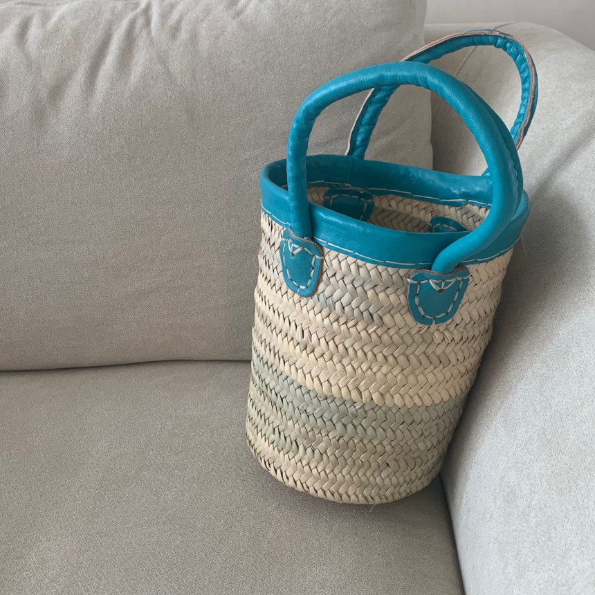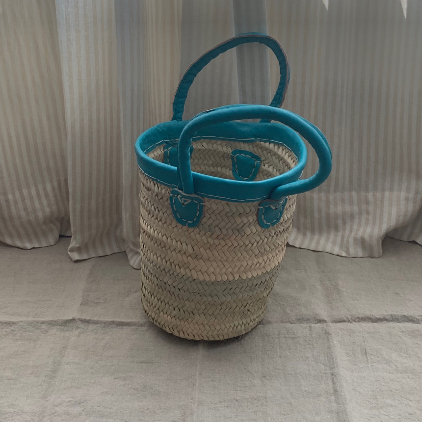 프랑스에서 핸드메이드로 제작된 긴 원형 모양의 마르쉐 백 입니다. 청량한 블루 컬러 가죽을 가방 테두리와 손잡이에 더한 디자인으로 이런 쉐입의 마르쉐 백은 정말 흔하지 않아요. 사이즈는 일반적인 마르쉐백 보다 작은 사이즈로 더 귀엽고 사랑스러운 느낌이 가득하답니다. 구매전 사이즈를 꼭 확인 부탁드리며 마르쉐 백은 제작과정과 소재 특성상 거칠고 정교하지 않은 마감 부분이 많이 보입니다. 많이 사용해보시는 분들은 이 또한 매력으로 느끼고 자주 구매하시는데요, 처음 구매 하시는분들은 아래 필독사항을 꼭 숙지하신 후 구매해주세요.