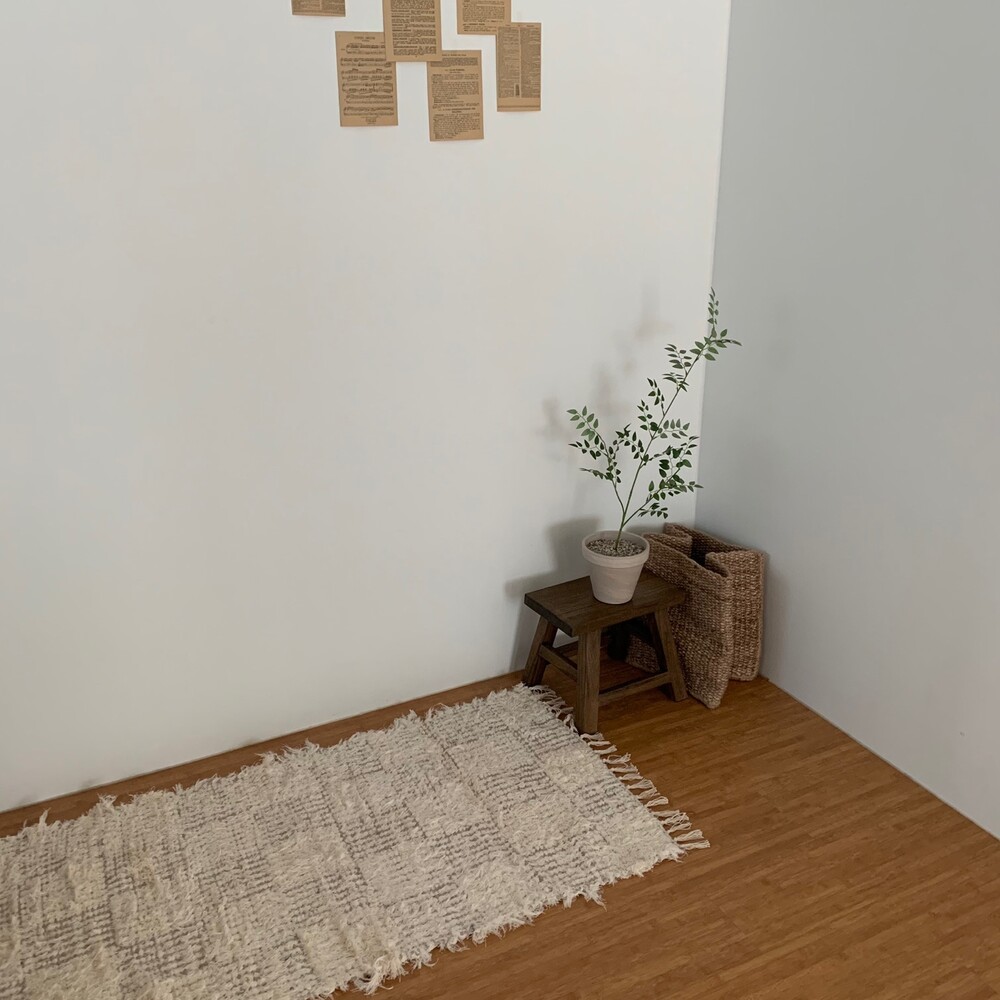 (포르투갈 수입) 핸드메이드 크림 체커 러그