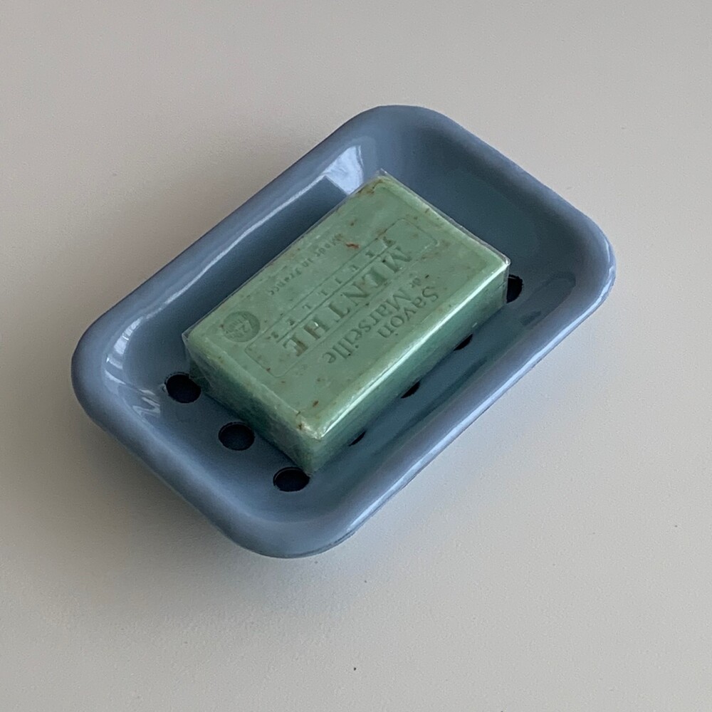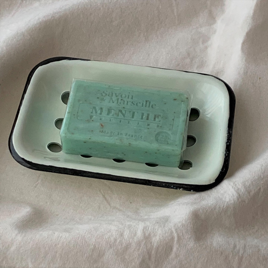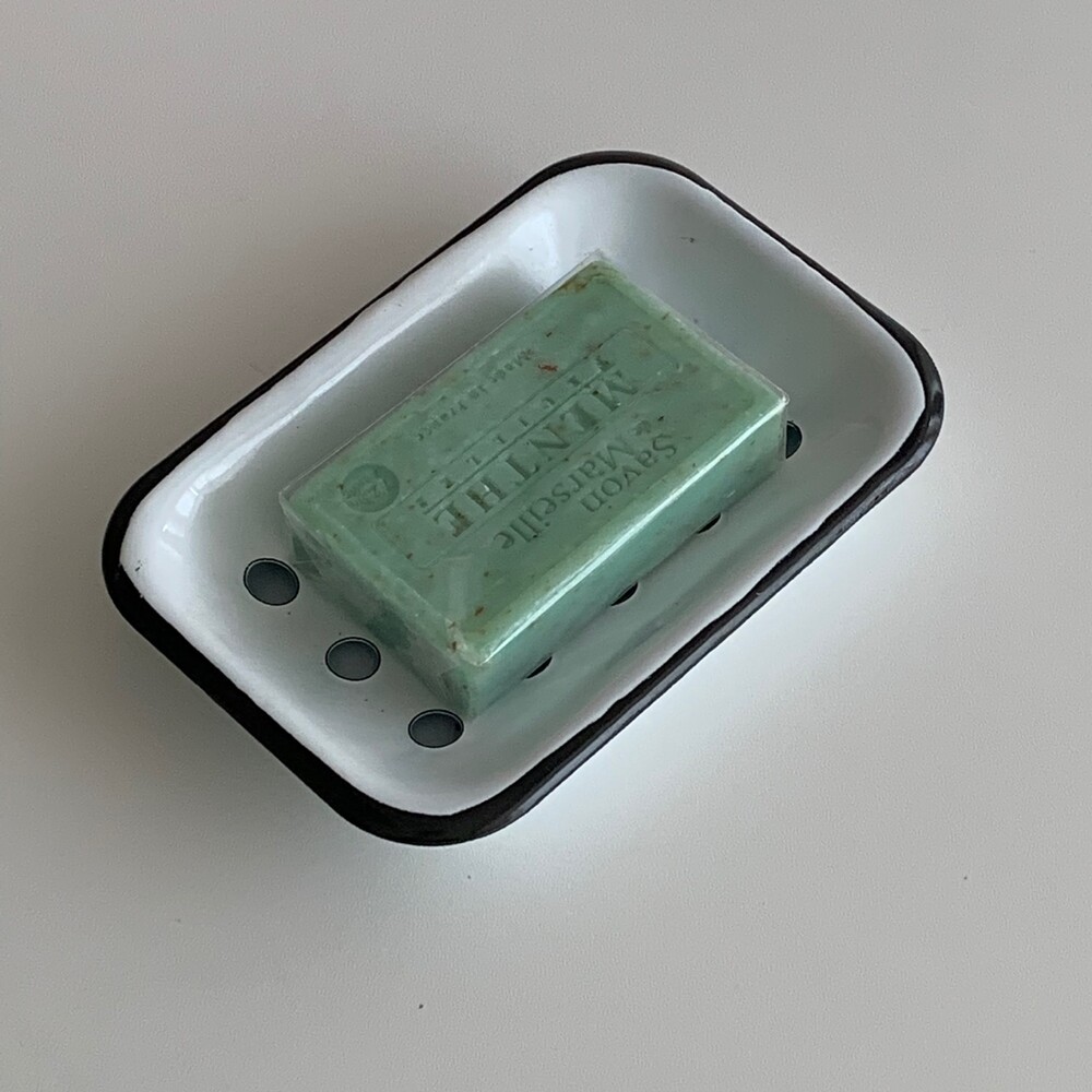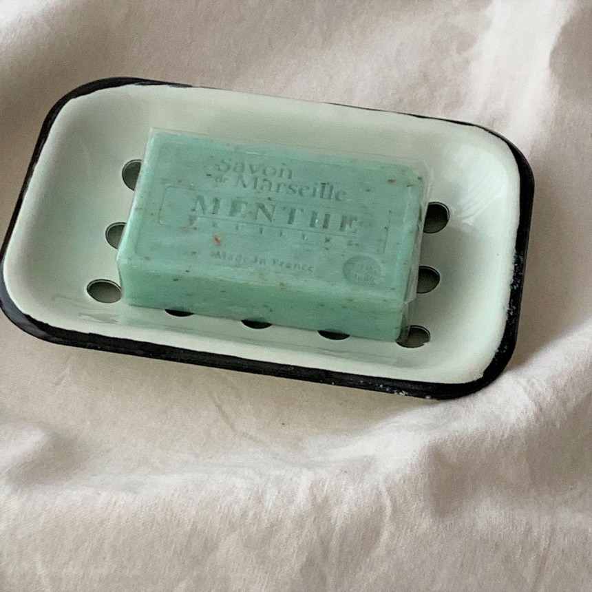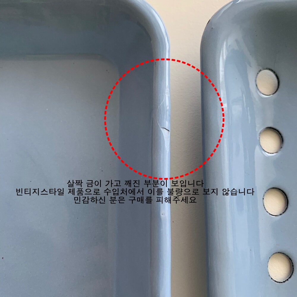 예쁜 비누받침은 정말 찾기 어려운데요, 유럽에서 볼 법한 법랑 소재의 비누트레이를 발견해 소개해드립니다. 물 빠지는 구멍 트레이와 아래 물 받치는 용도의 트레이로 2중으로 구성되어 있습니다. 비누 뿐만 아니라 수세미나, 세제용기 등을 올려놓고 사용하기에도 좋아요. 욕실이나 주방에 법랑 소재의 받침을 두니 분위기가 한층 달라집니다. 주의하실 점은 아주 정교하게 만들어진 제품이 아닙니다. 마감이나 페인트칠이 빈티지한 느낌으로 되어 있으니 민감하신 분들은 구매를 매우 신중히 부탁드립니다.