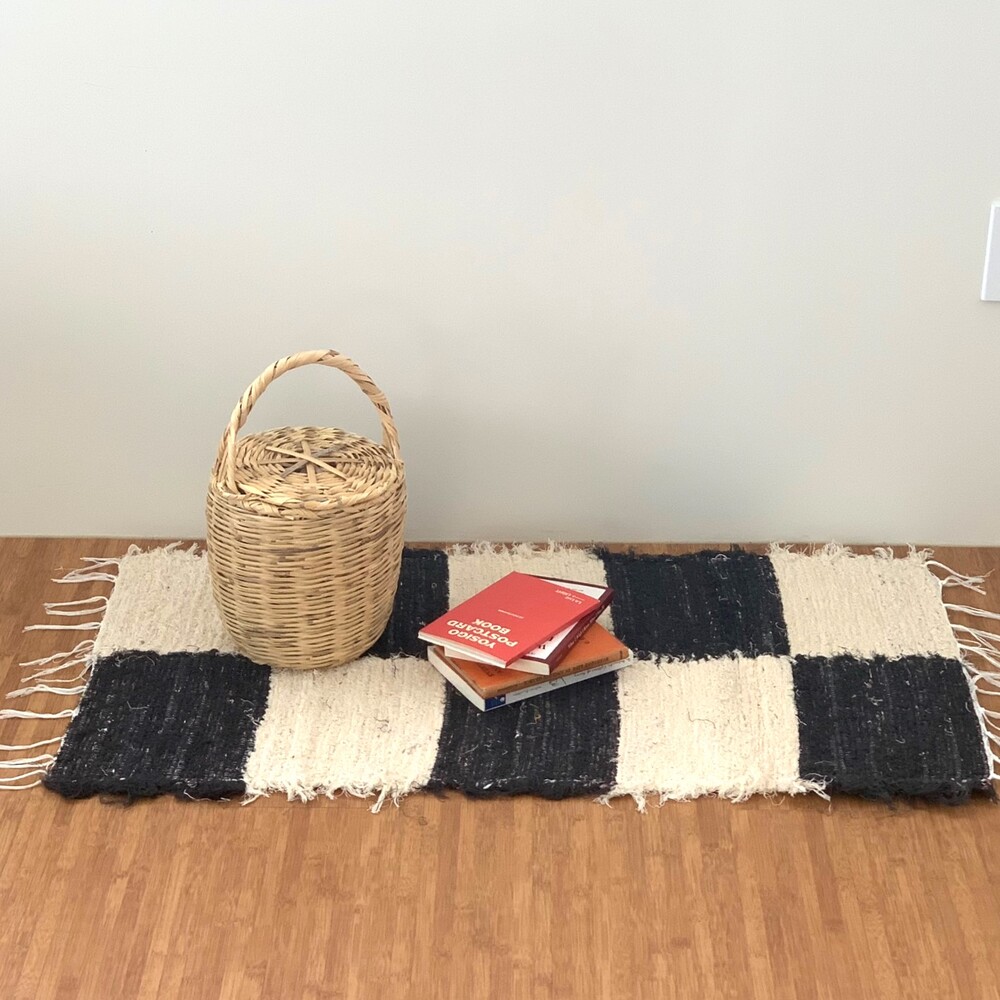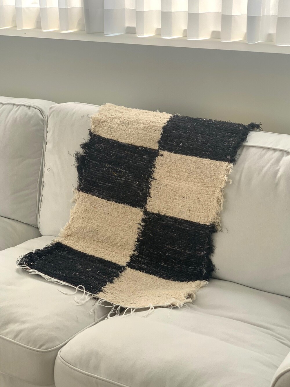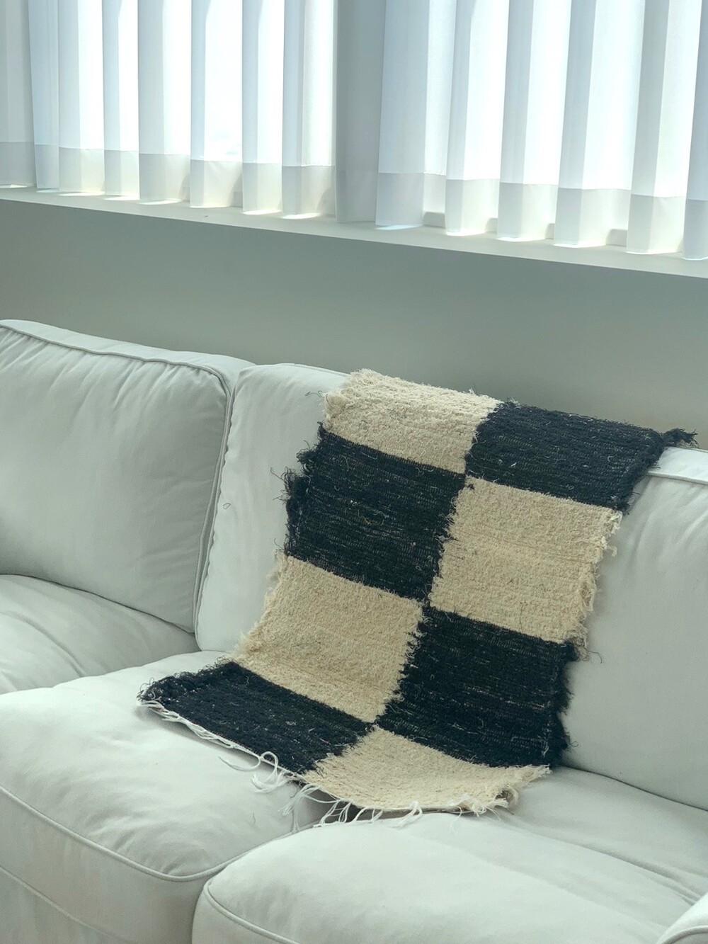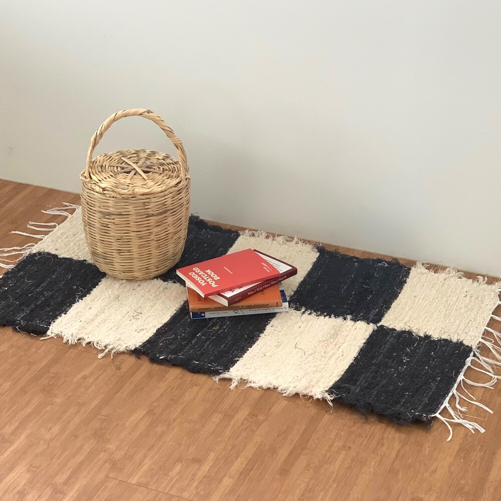 (포르투갈 수입) 핸드메이드 블랙화이트 체커 스몰 러그