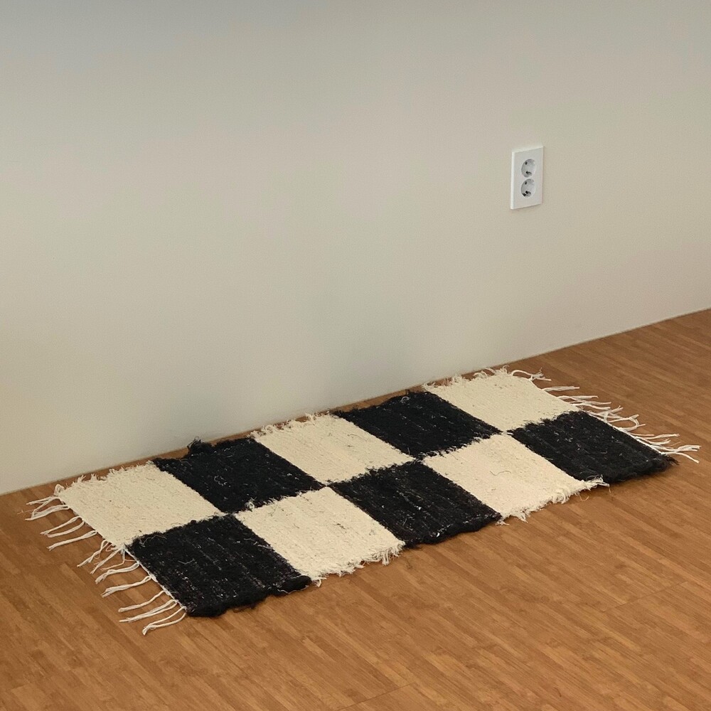 블랙 앤 화이트 체커 무늬 러그입니다.