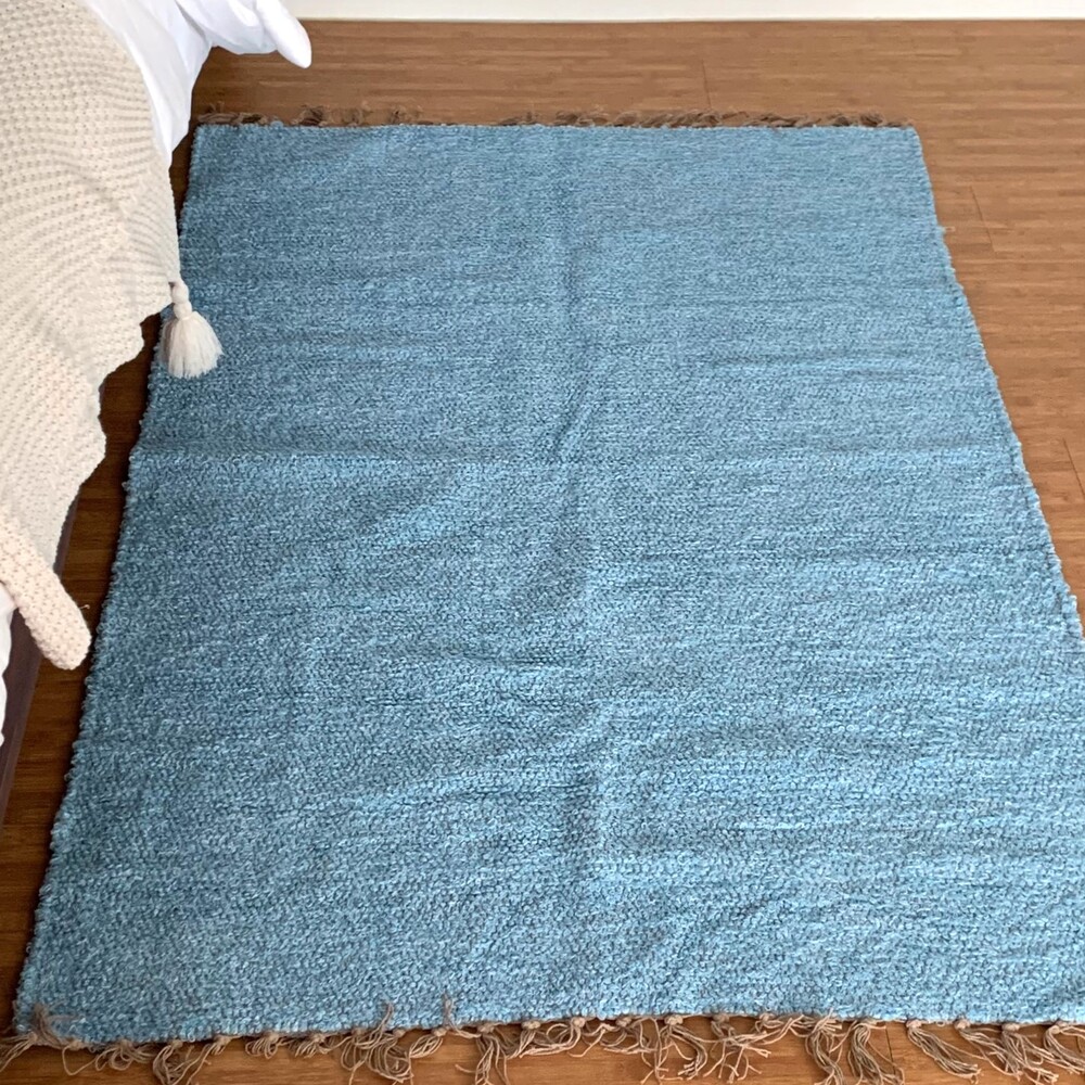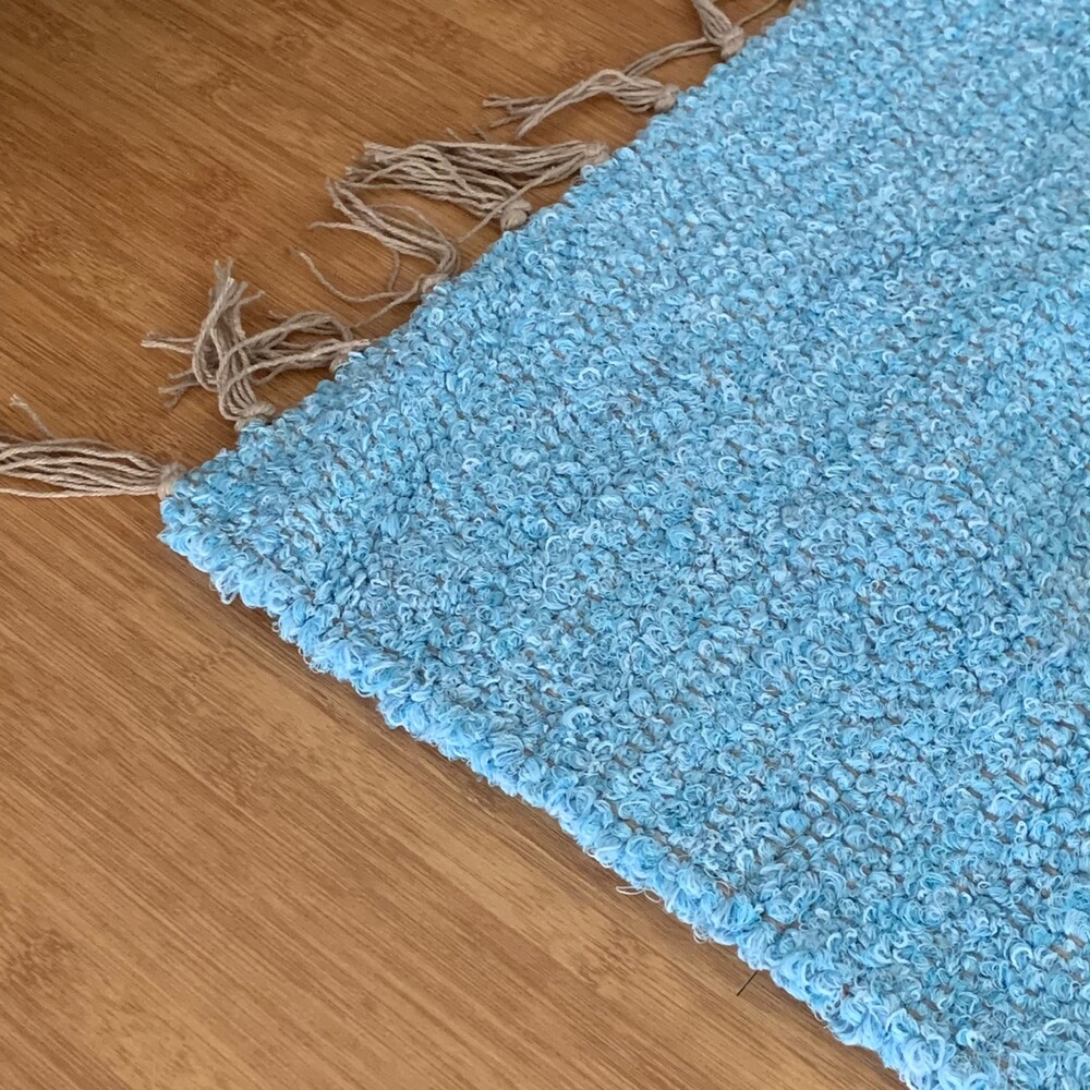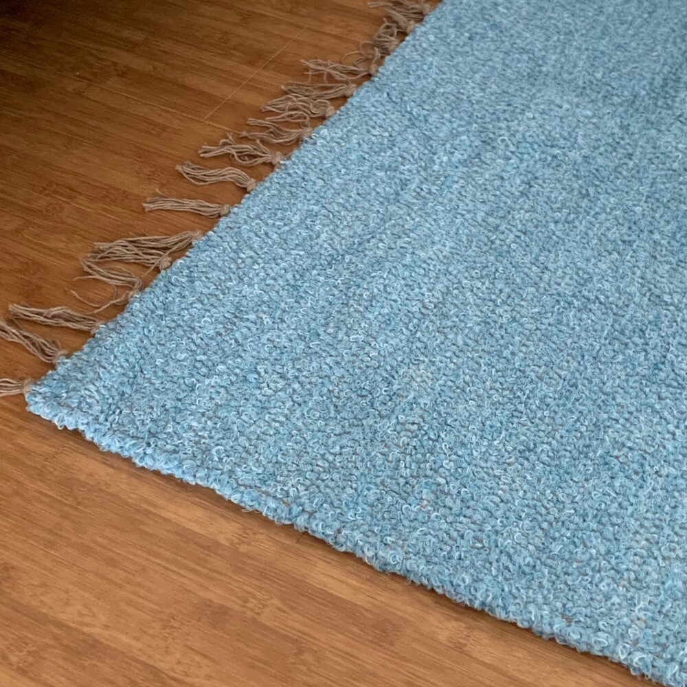 사랑스러운 블루 컬러로 짜여진 러그 입니다.