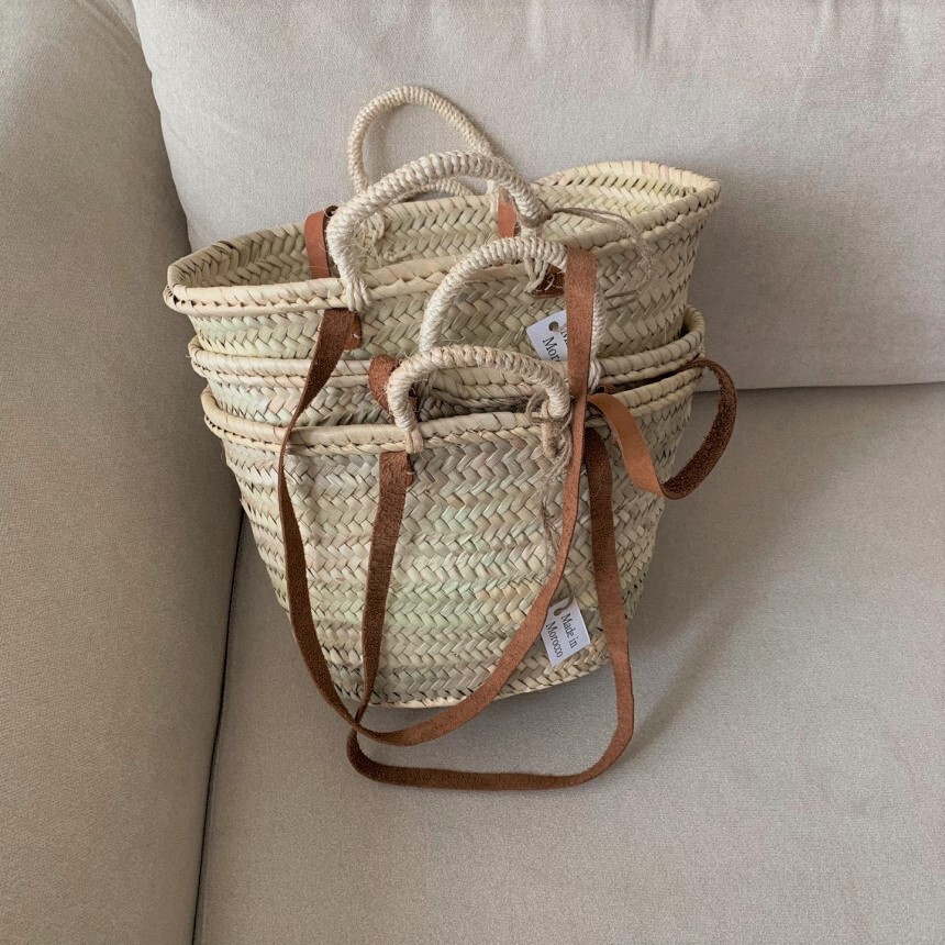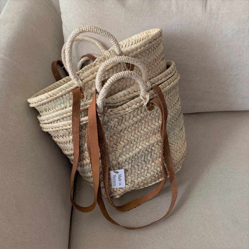 모로코에서 핸드메이드로 제작된 마르쉐 백 입니다. 프랑스 여자들이 많이 들고 다녀 유명해진 디자인으로 '프렌치 마르쉐 백'이라고 많이들 부르기도 하죠. 가죽 소재의 어깨끈도 함께 있어, 토트백과 숄더백 두 가지 스타일로 연출이 가능합니다. 마르쉐 백은 제작과정과 소재 특성상 거칠고 정교하지 않은 마감 부분이 많이 보입니다. 많이 사용해보시는 분들은 이 또한 매력으로 느끼고 자주 구매하시는데요, 처음 구매 하시는분들은 아래 필독사항을 꼭 숙지하신 후 구매해주세요.