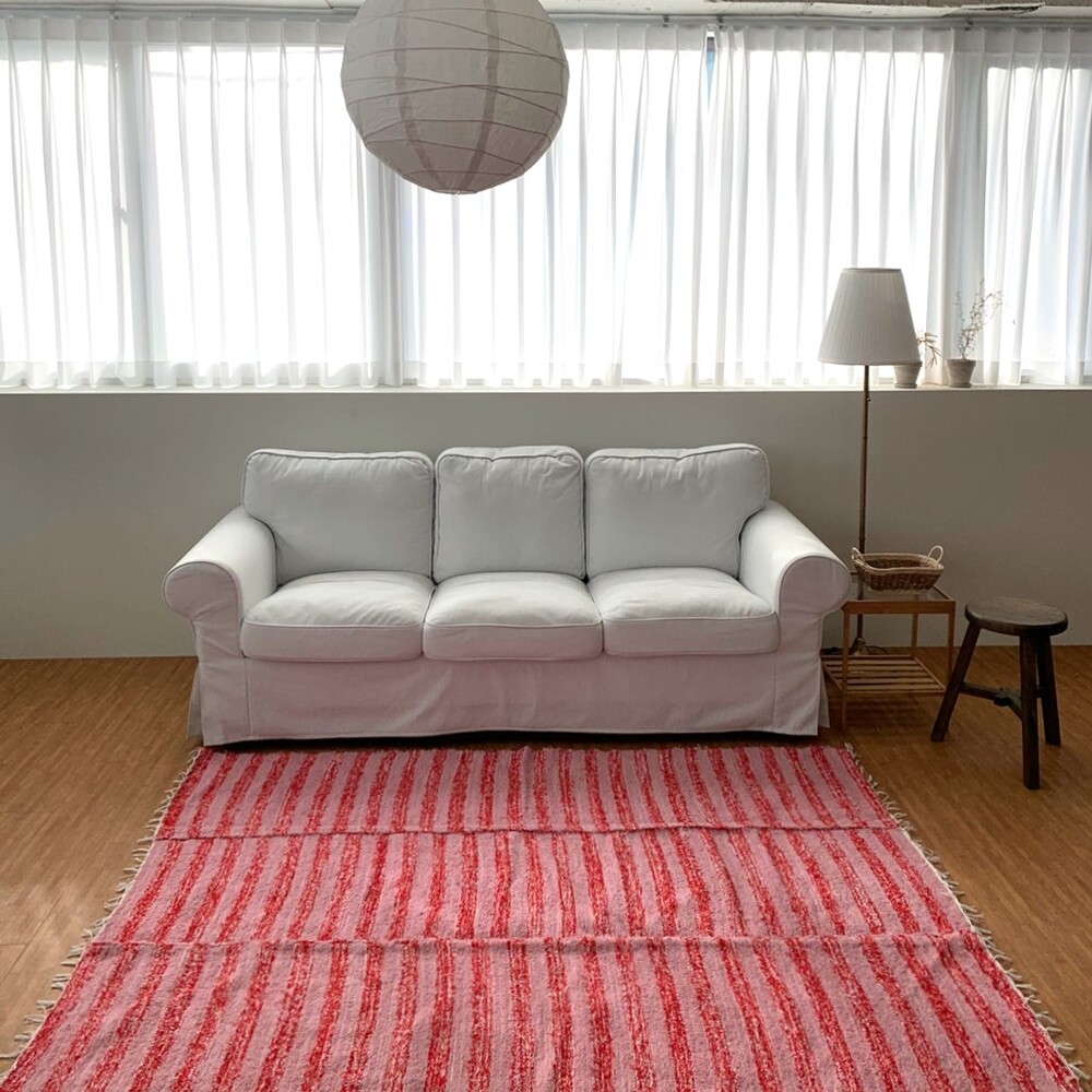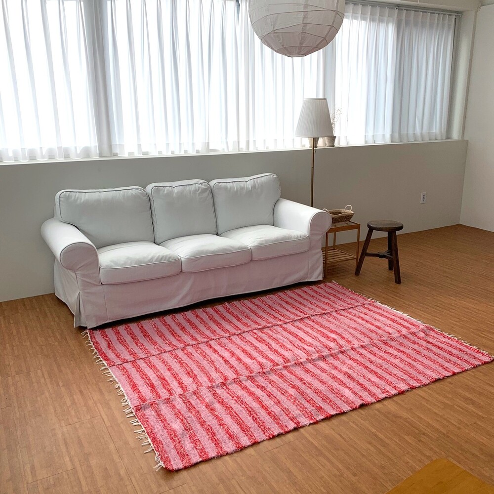 (포르투갈 수입) 핸드메이드 핑크스트라이프 러그