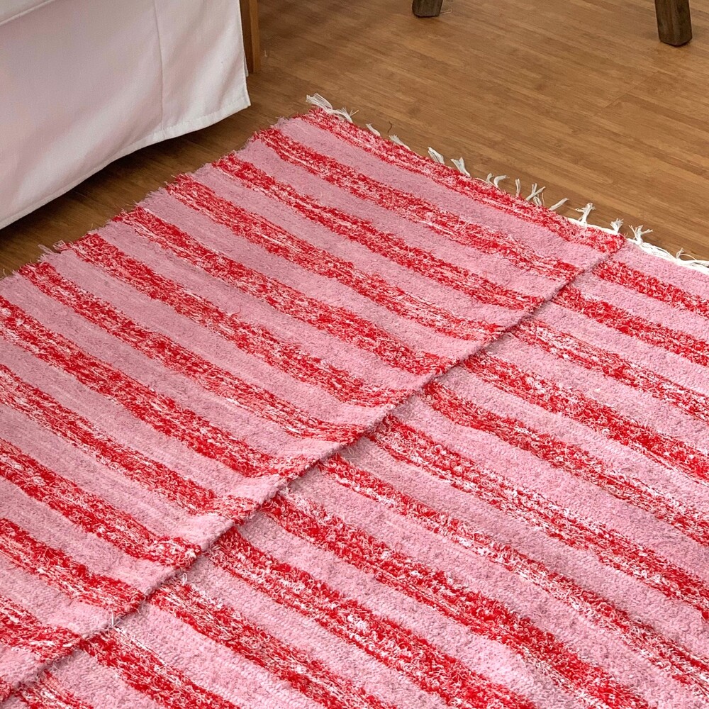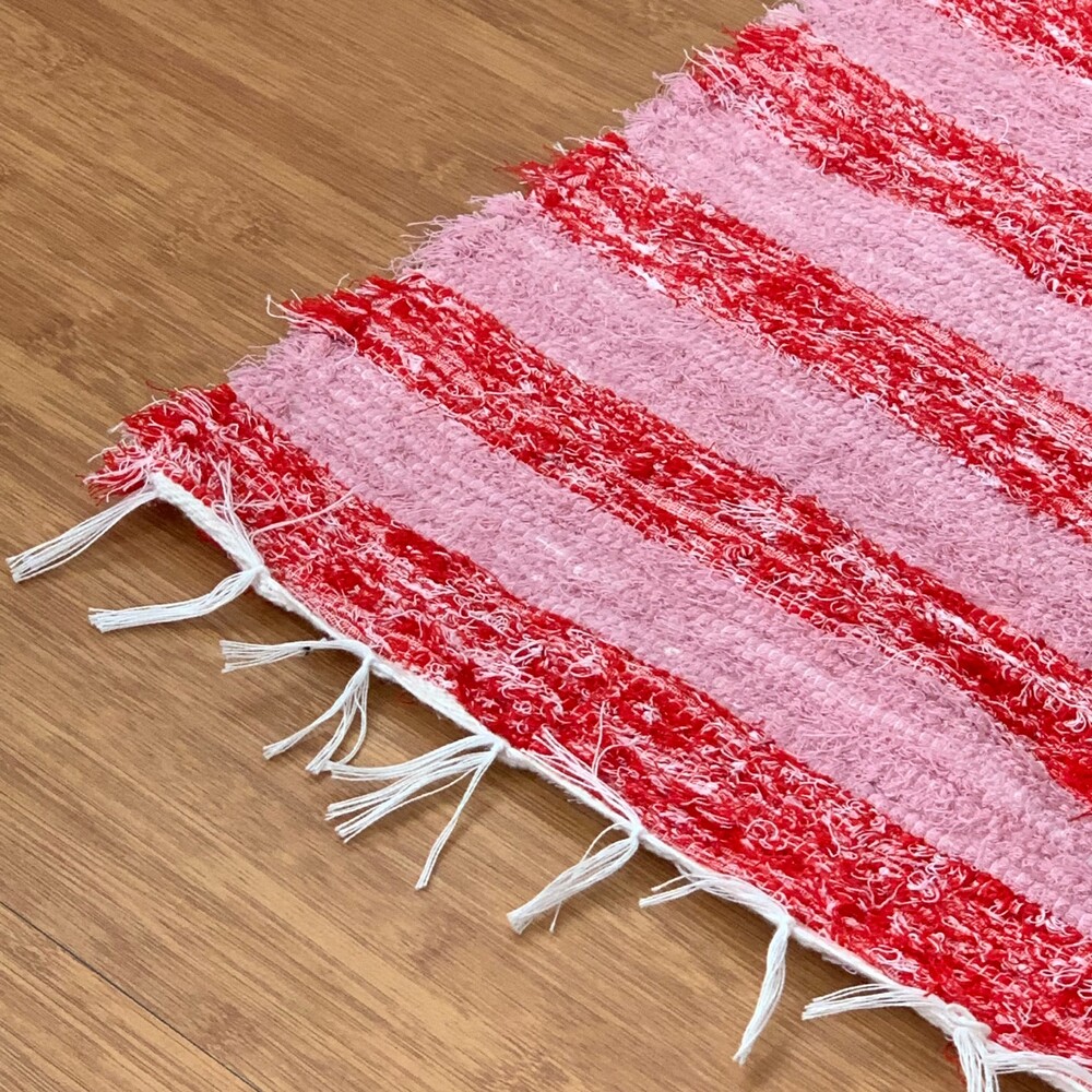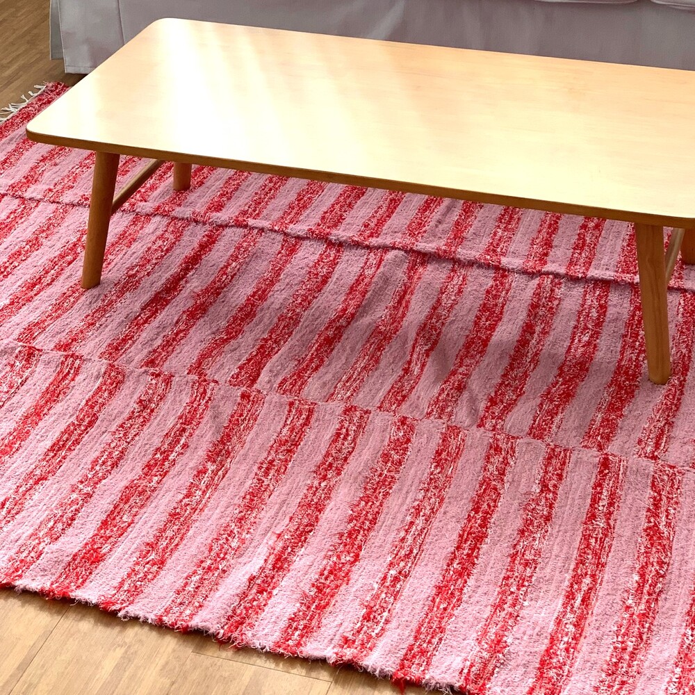 상큼한 핑크와 레드 컬러 스트라이프 러그 입니다.