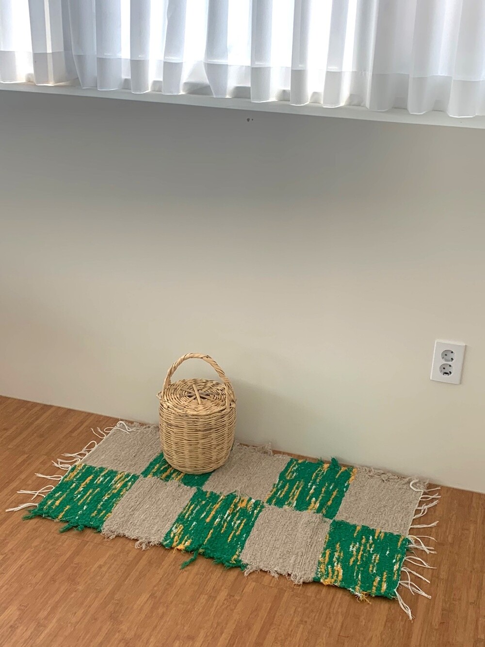 싱그러운 그린과 토프 컬러 체커가 교차된 러그 입니다.