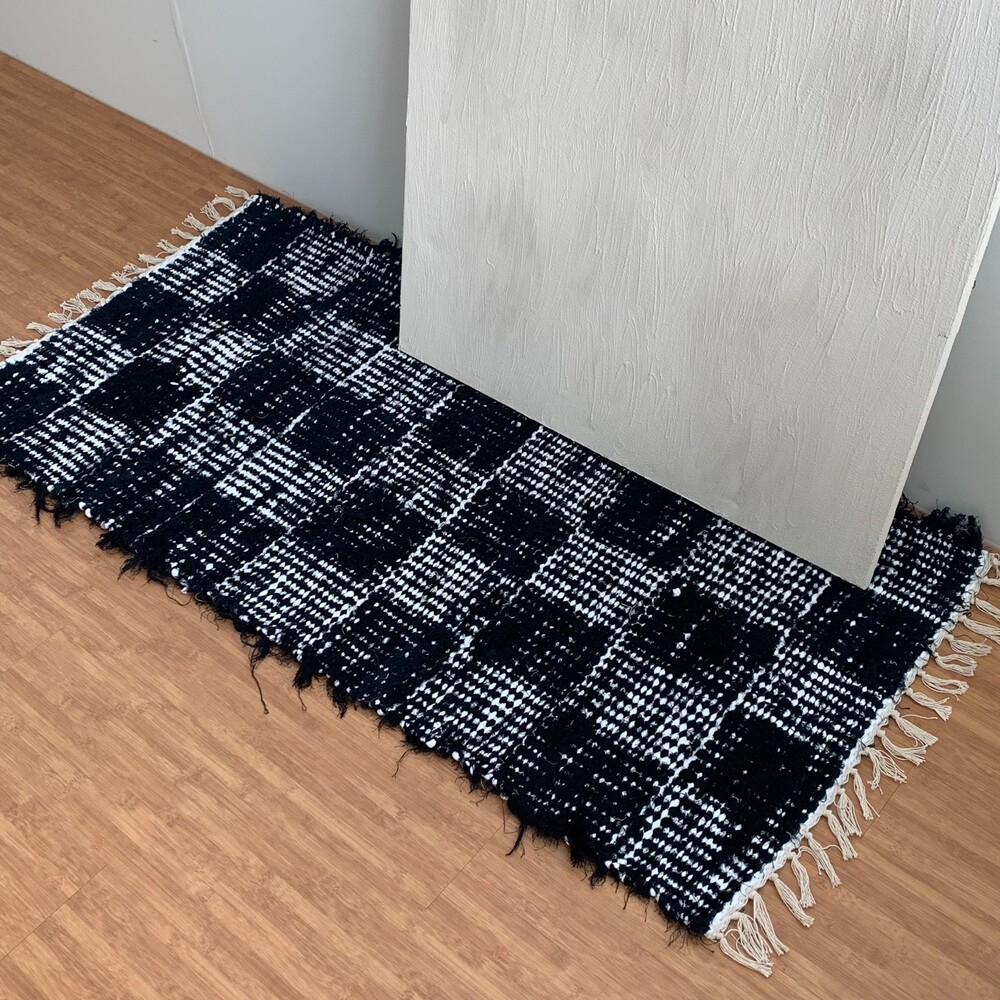 (포르투갈 수입) 핸드메이드 블랙 체커 러그