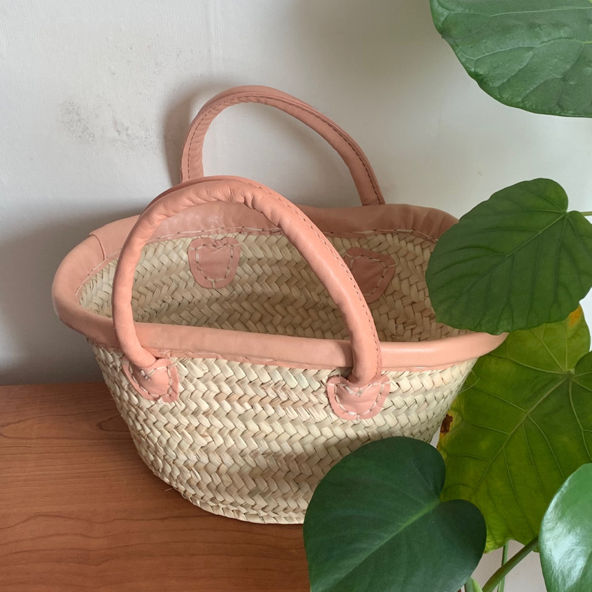 프랑스에서 핸드메이드로 제작된 마르쉐 백 입니다. 흔하지 않은 페일핑크 컬러 가죽을 손잡이에 더한 디자인입니다. 사이즈는 일반적인 마르쉐백 보다 작은 사이즈로 더 귀엽고 사랑스러운 느낌이 가득하답니다. 구매 전 사이즈를 꼭 확인 부탁드리며 마르쉐 백은 모든 제품을 하나씩 수작업으로 만들어 사이즈 모양도 조금씩 모두 다릅니다. 또한 제작과정과 소재 특성상 거칠고 정교하지 않은 마감 부분이 많이 보입니다. 많이 사용해보시는 분들은 이 또한 매력으로 느끼고 자주 구매하시는데요, 처음 구매 하시는분들은 아래 필독사항을 꼭 숙지하신 후 구매해주세요.