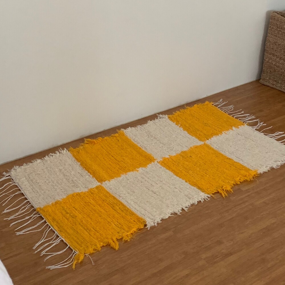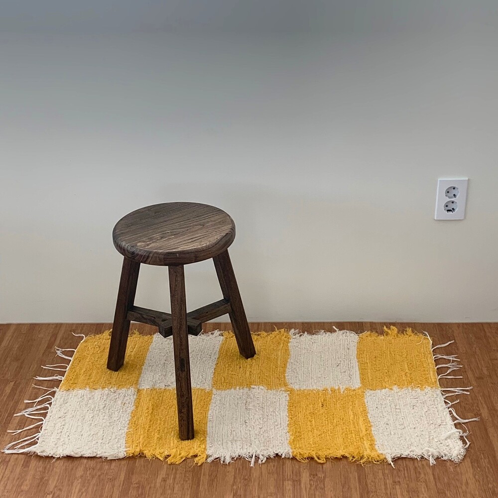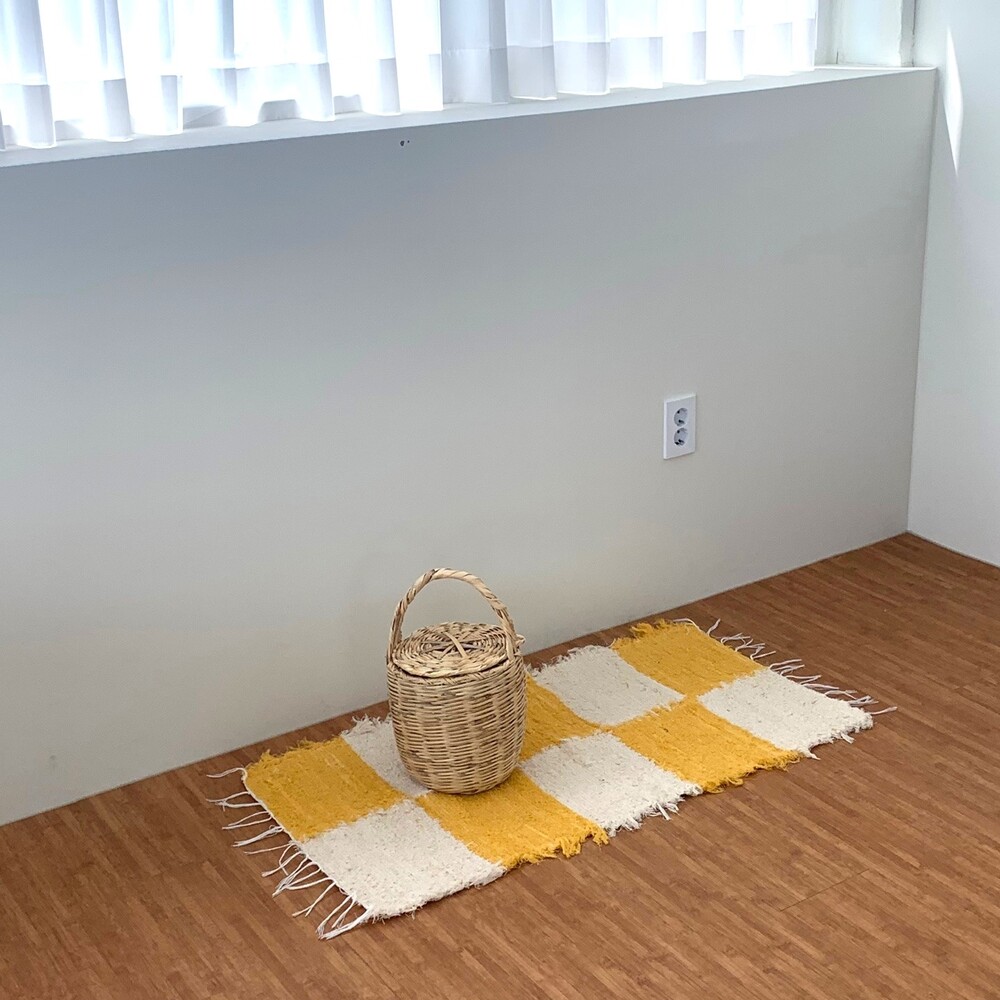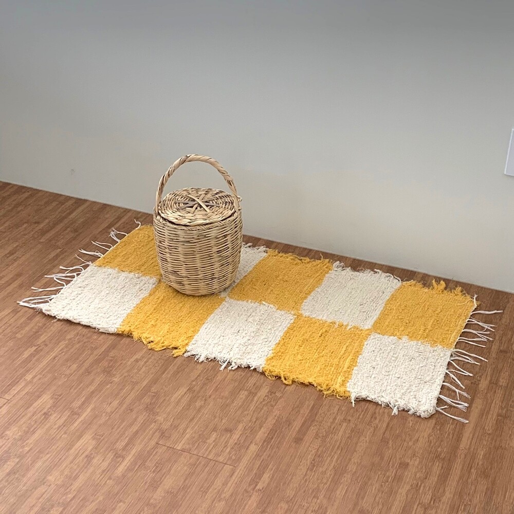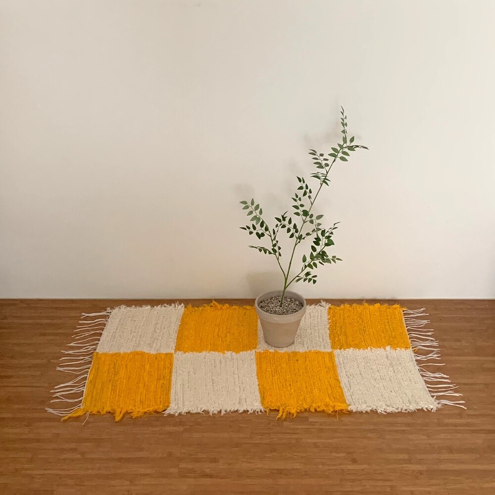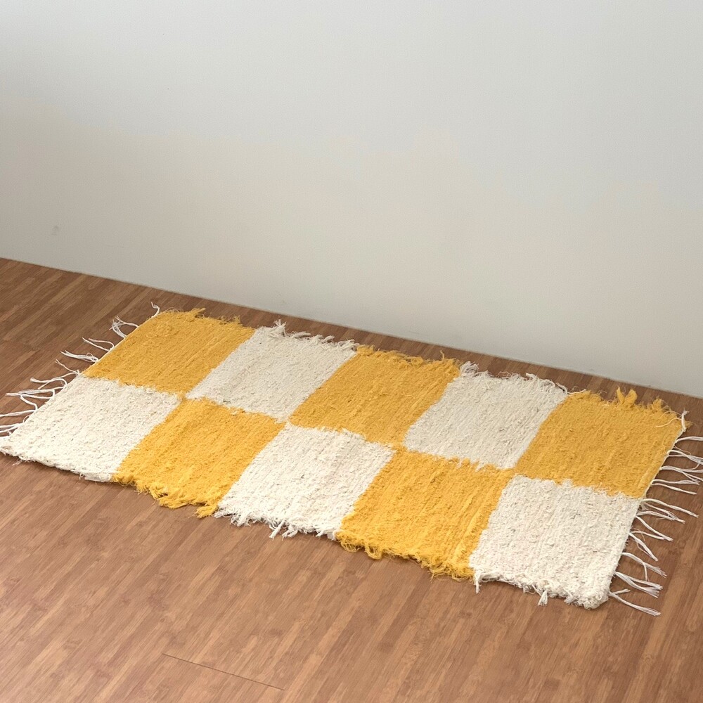 (포르투갈 수입) 핸드메이드 옐로우 체커 러그 스몰