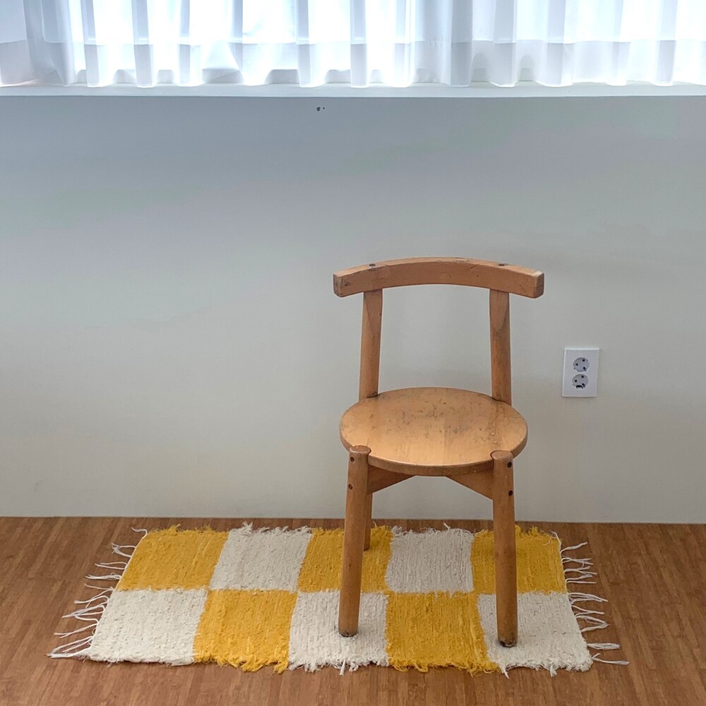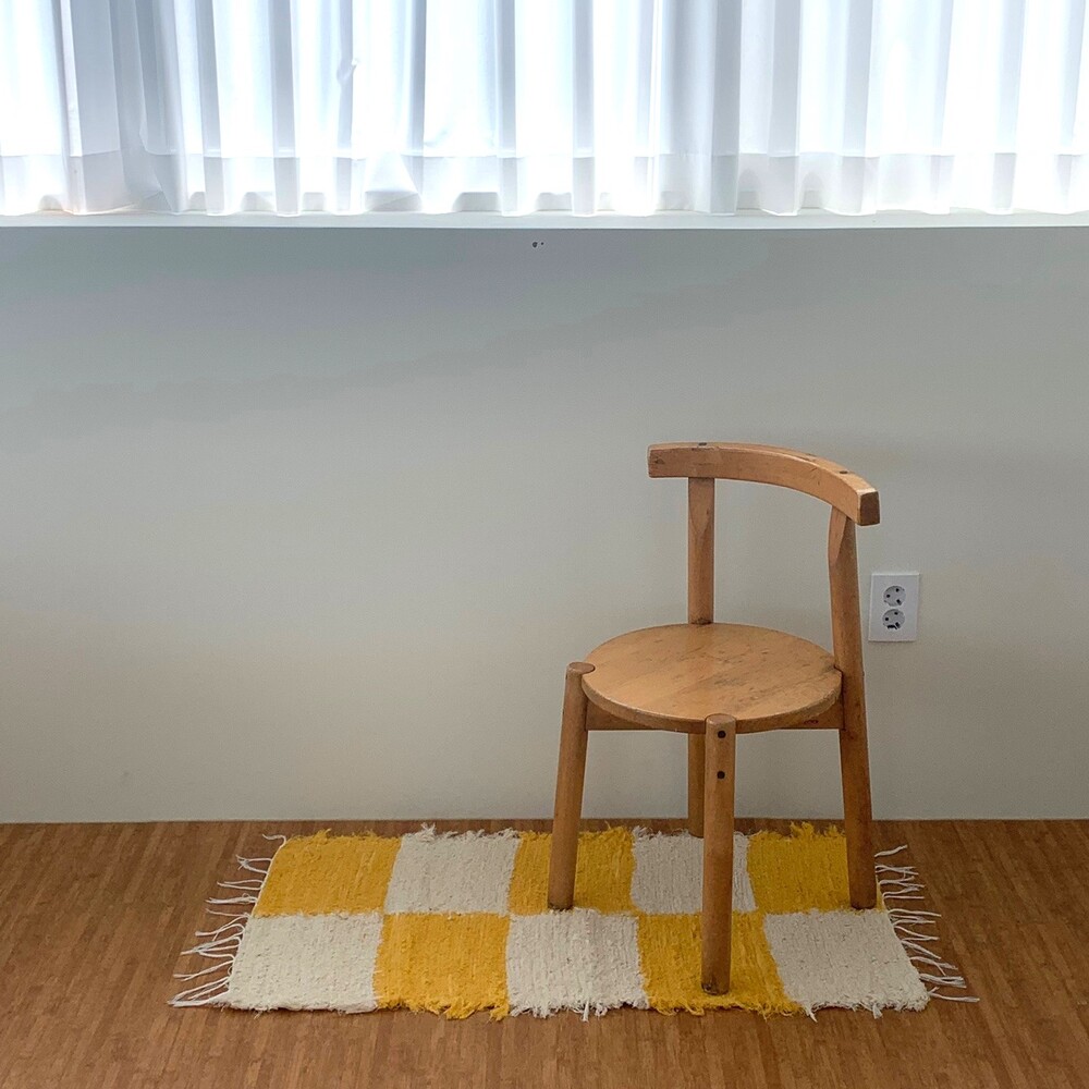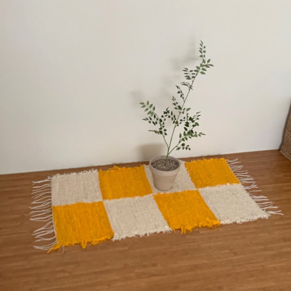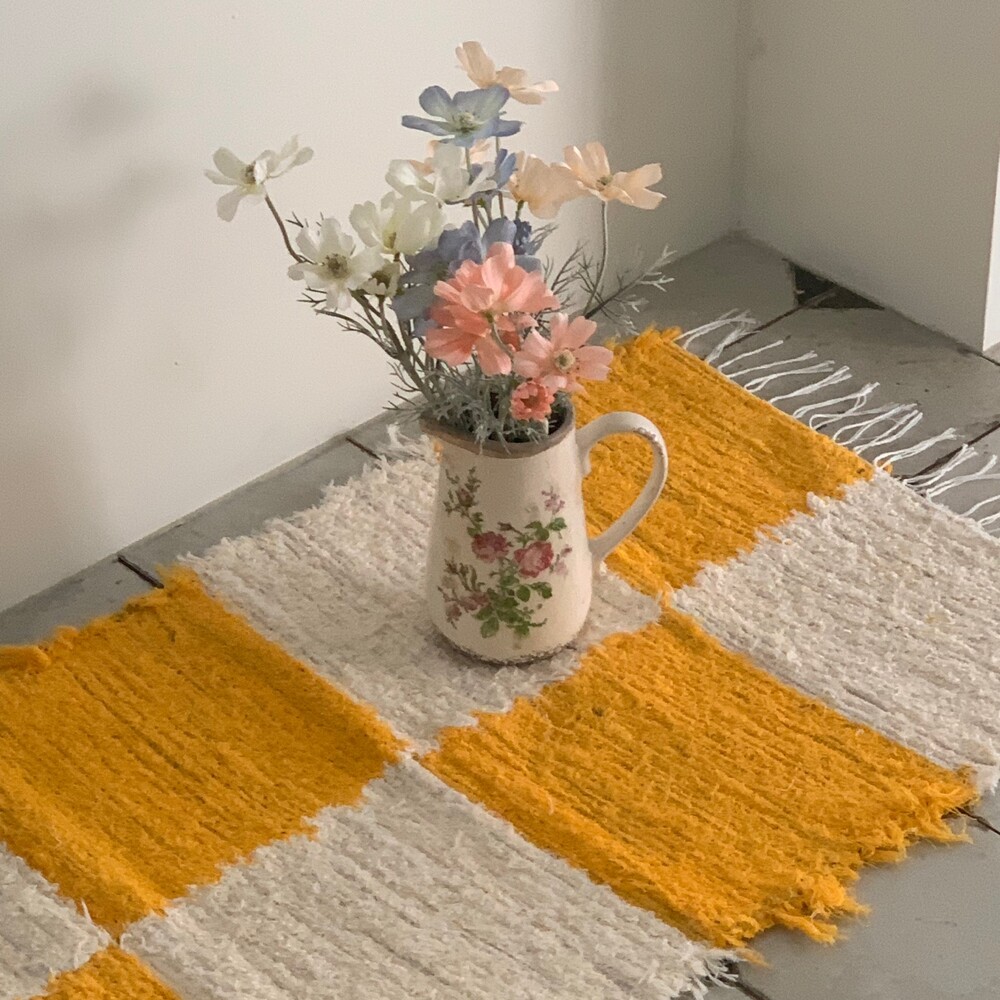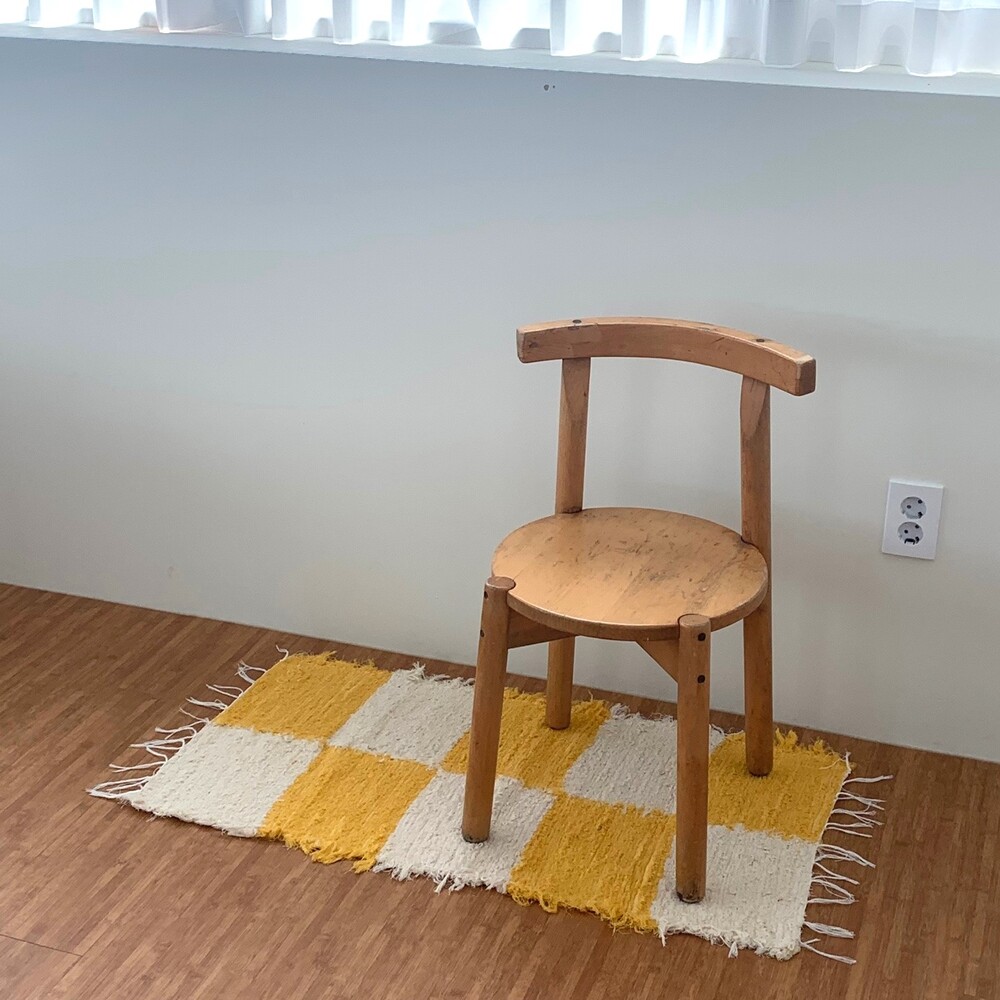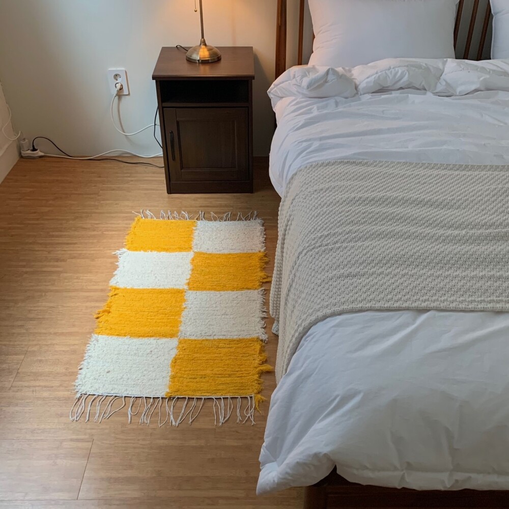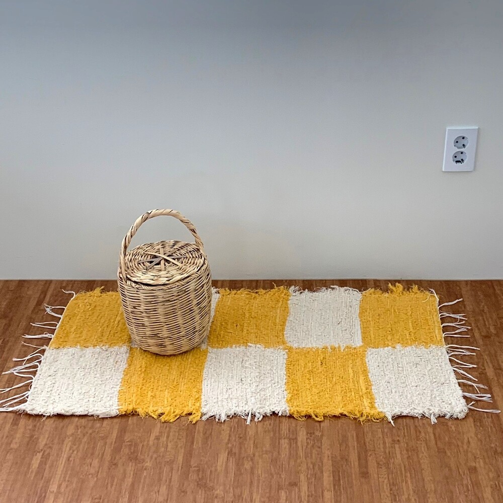 (포르투갈 수입) 핸드메이드 옐로우 체커 러그 스몰
