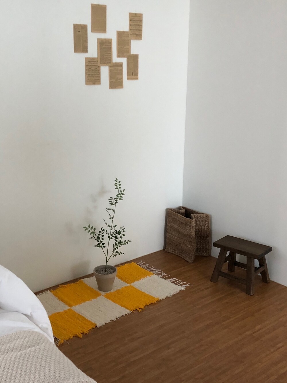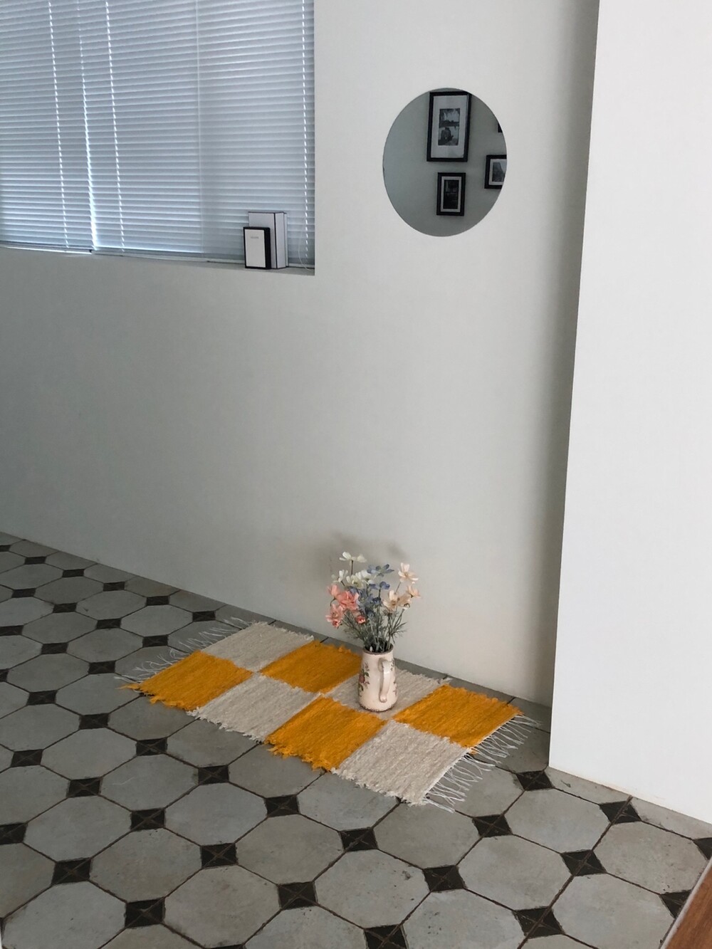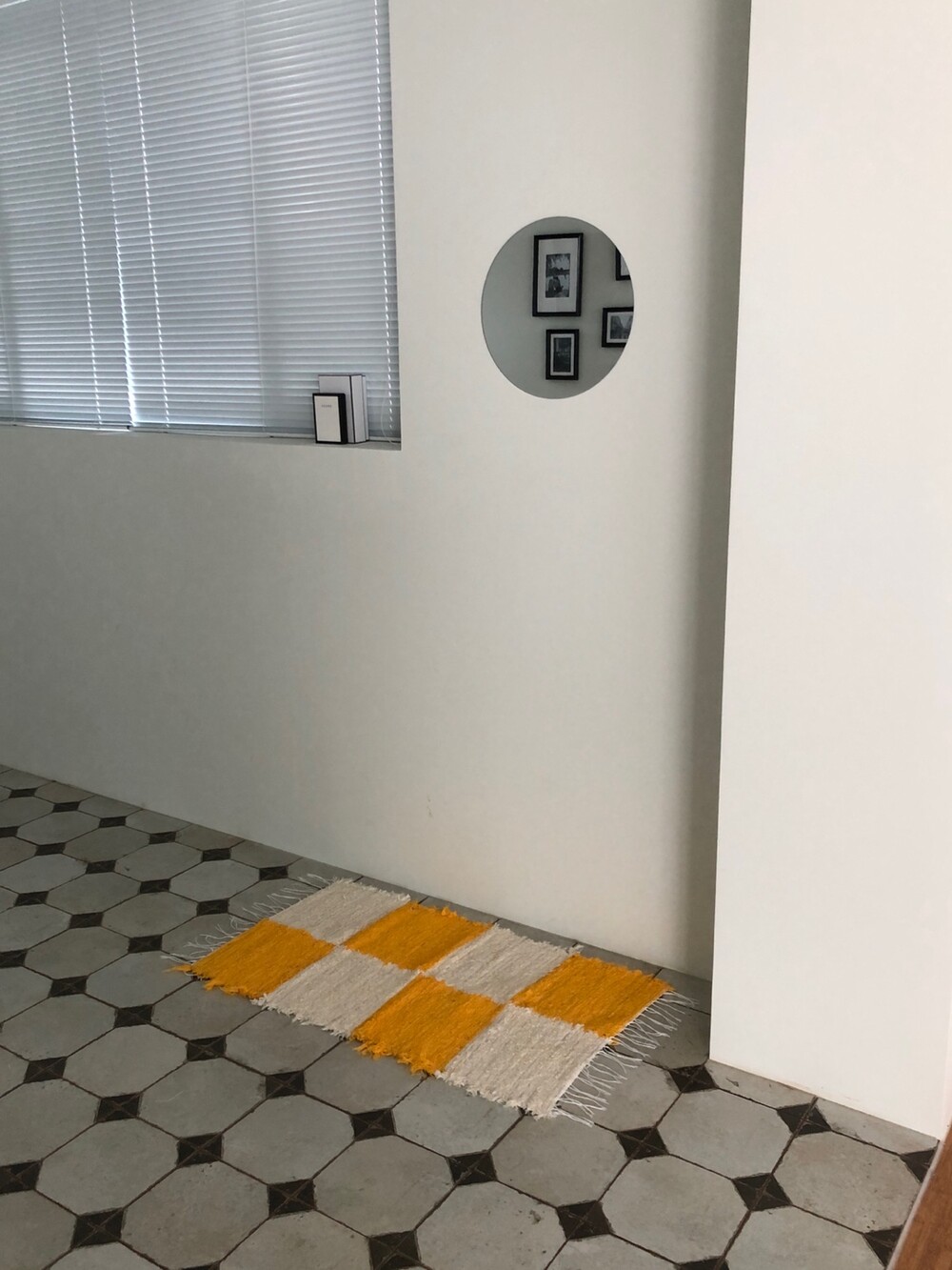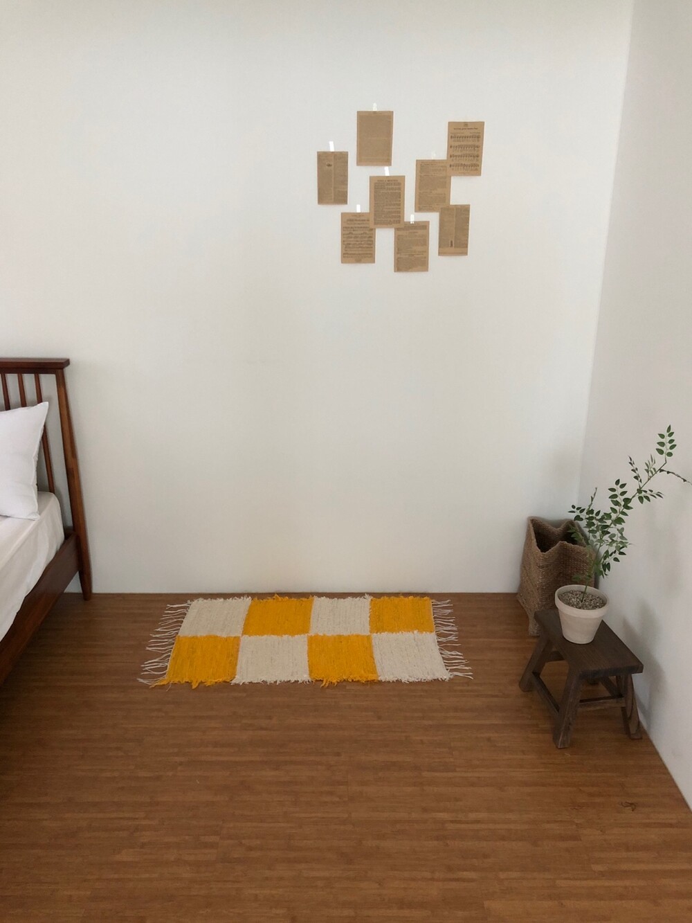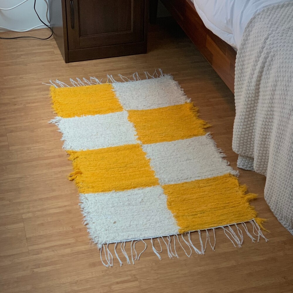(포르투갈 수입) 핸드메이드 옐로우 체커 러그 스몰