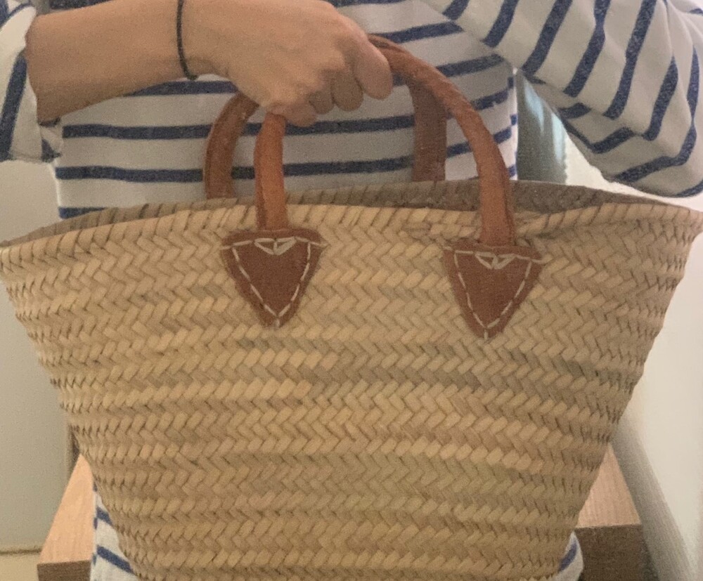 프랑스에서 핸드메이드로 제작된 마르쉐 백 미듐 사이즈 입니다. 오렌지브라운 컬러 가죽을 손잡이에 더한 디자인입니다. 짐들이 넉넉히 들어가고 바캉스때 이것저것 넣어 들고다니기 좋은 사이즈 입니다. 아래 제품정보 란에서 수치는 확인해주세요. 마르쉐 백은 모든 제품을 하나씩 수작업으로 만들어 사이즈 모양도 조금씩 모두 다릅니다. 또한 제작과정과 소재 특성상 거칠고 정교하지 않은 마감 부분이 많이 보입니다. 많이 사용해보시는 분들은 이 또한 매력으로 느끼고 자주 구매하시는데요, 처음 구매 하시는분들은 아래 필독사항을 꼭 숙지하신 후 구매해주세요.