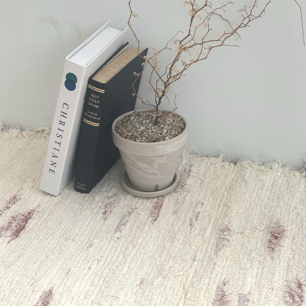 크림컬러 바탕에 빈티지핑크 컬러가 살짝 더해진 러그 입니다.