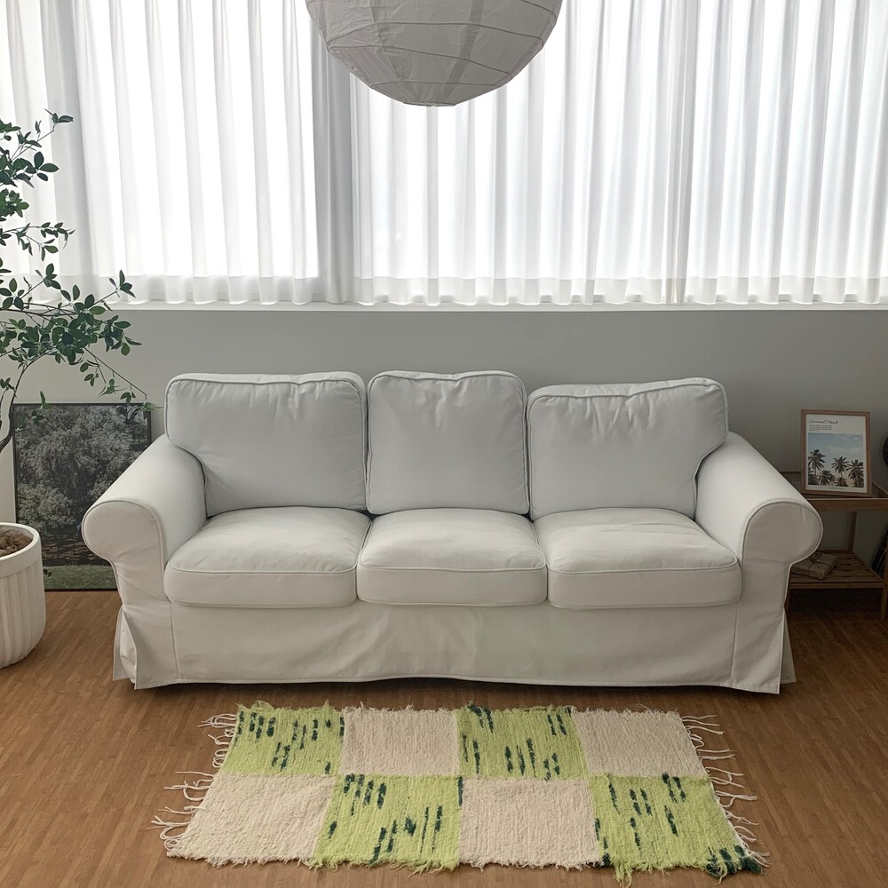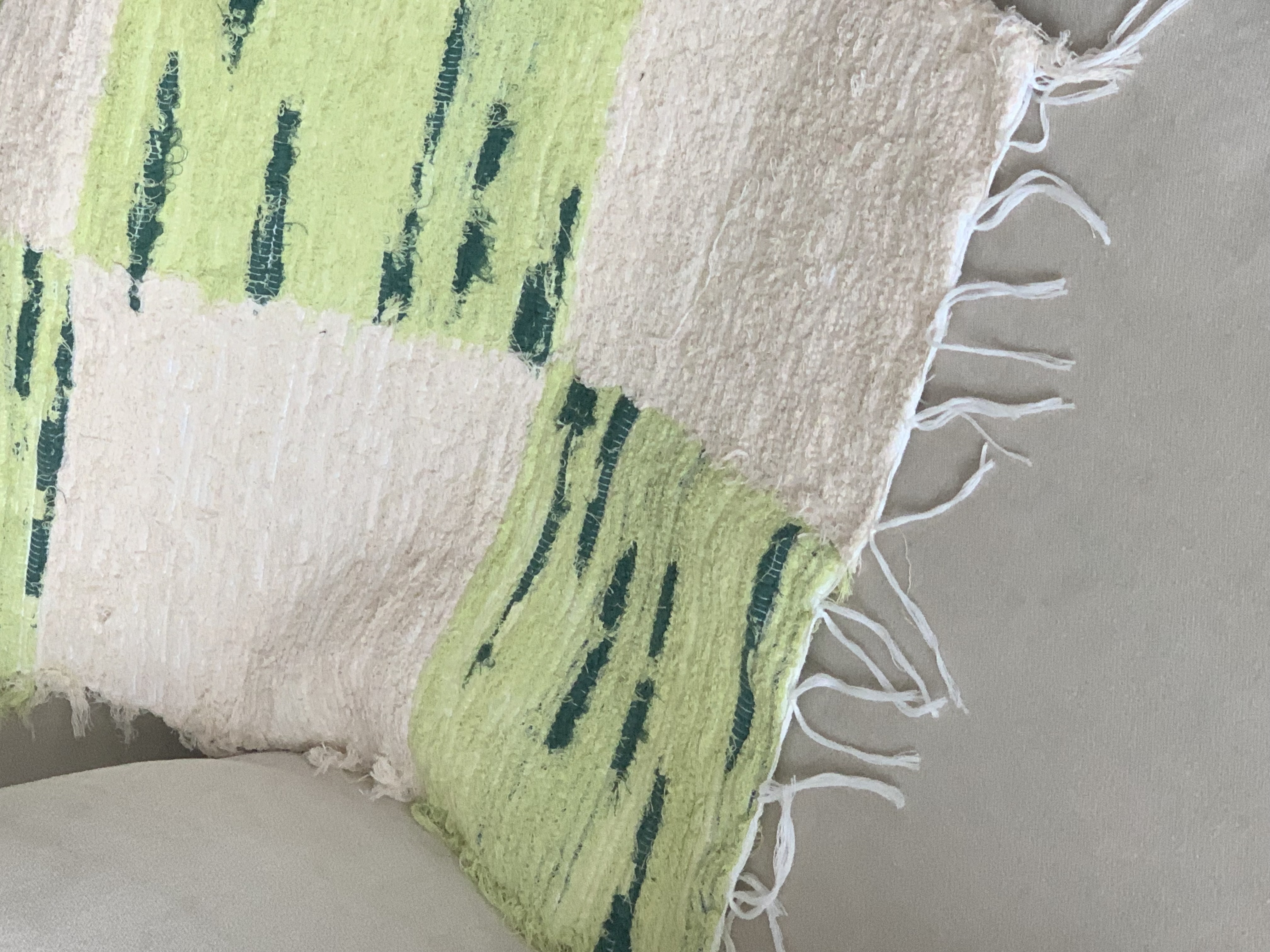 라이트그린 컬러와 크림 체커 무늬 러그 입니다.