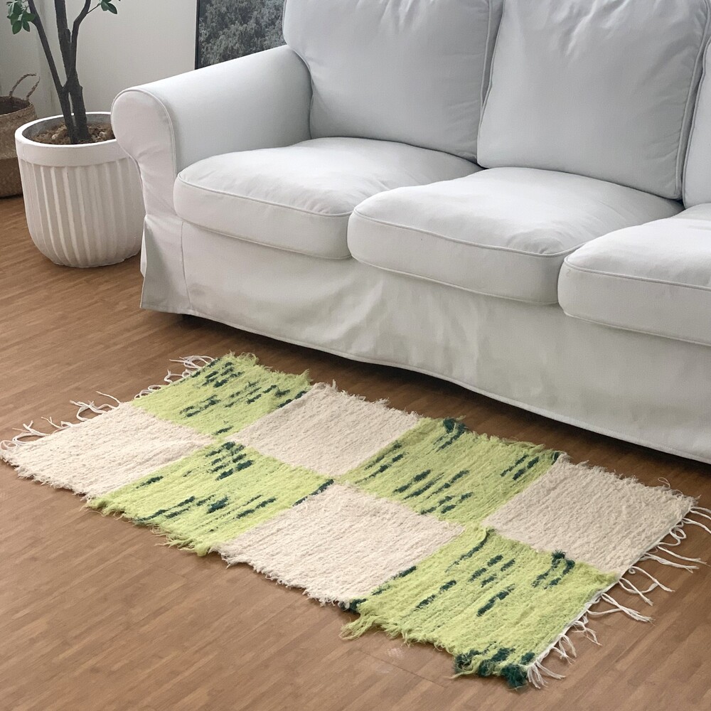 (포르투갈 수입) 핸드메이드 라이트그린 체커 미듐 러그
