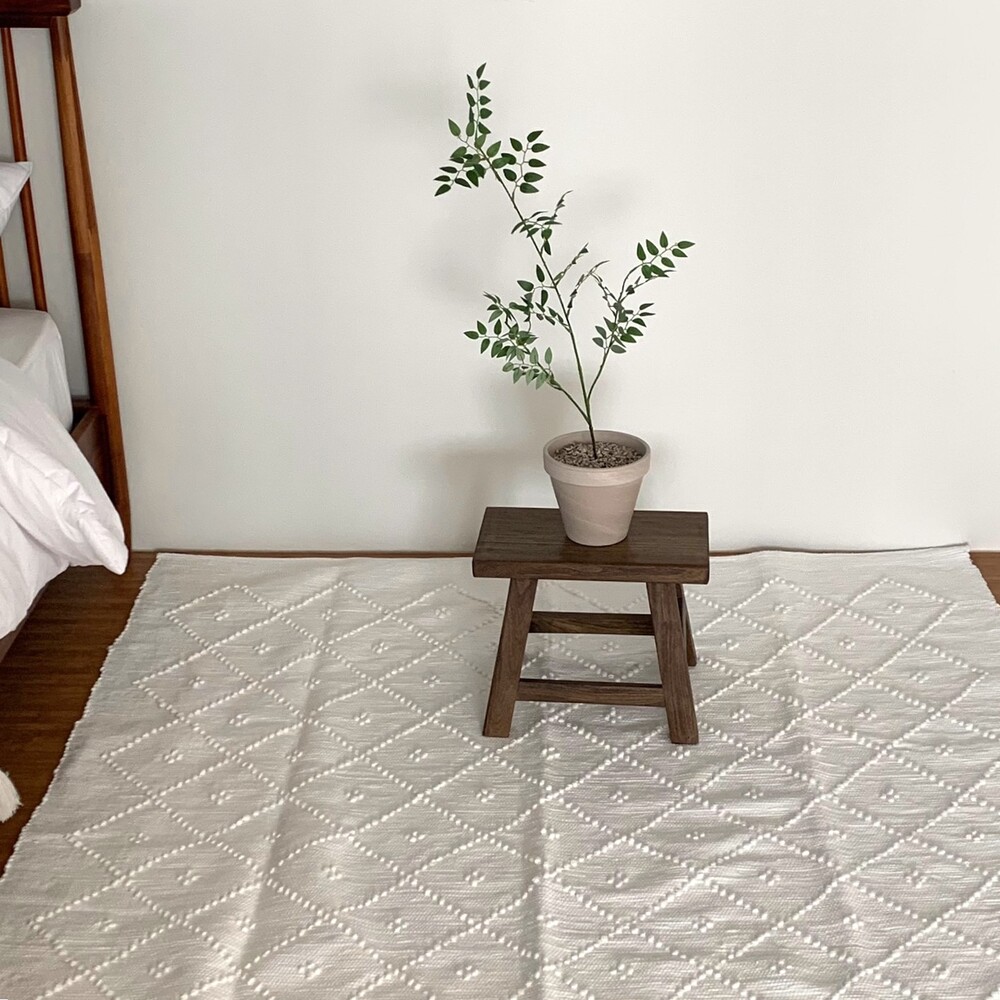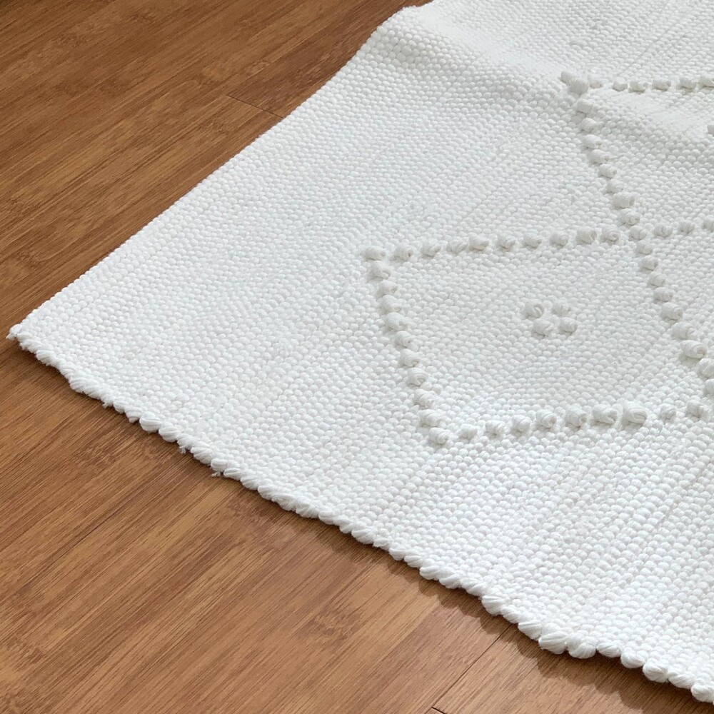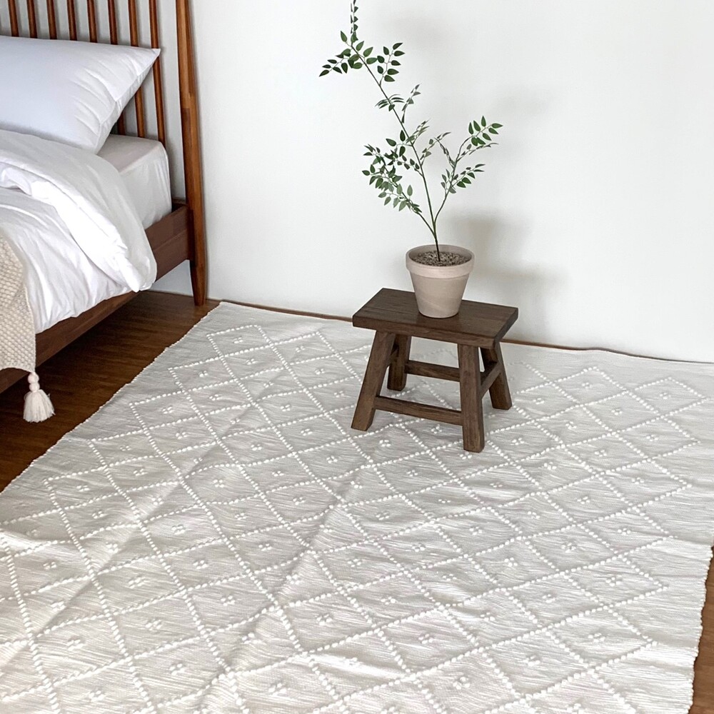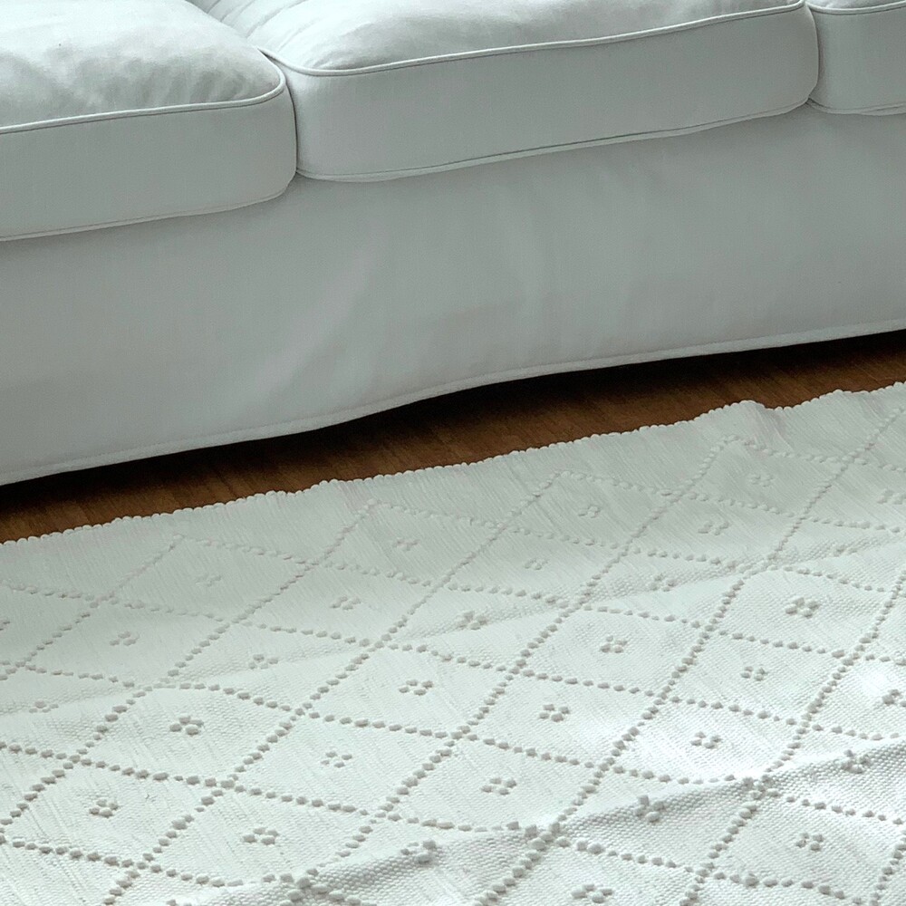 퓨어한 화이트 컬러에 도톰한 다이아몬드 디테일이 돋보이는 라지 사이즈 러그 입니다.