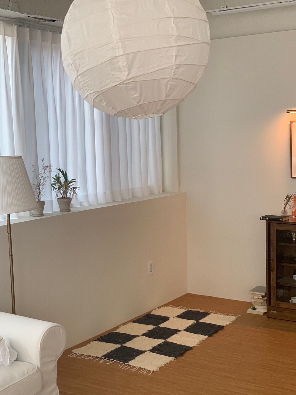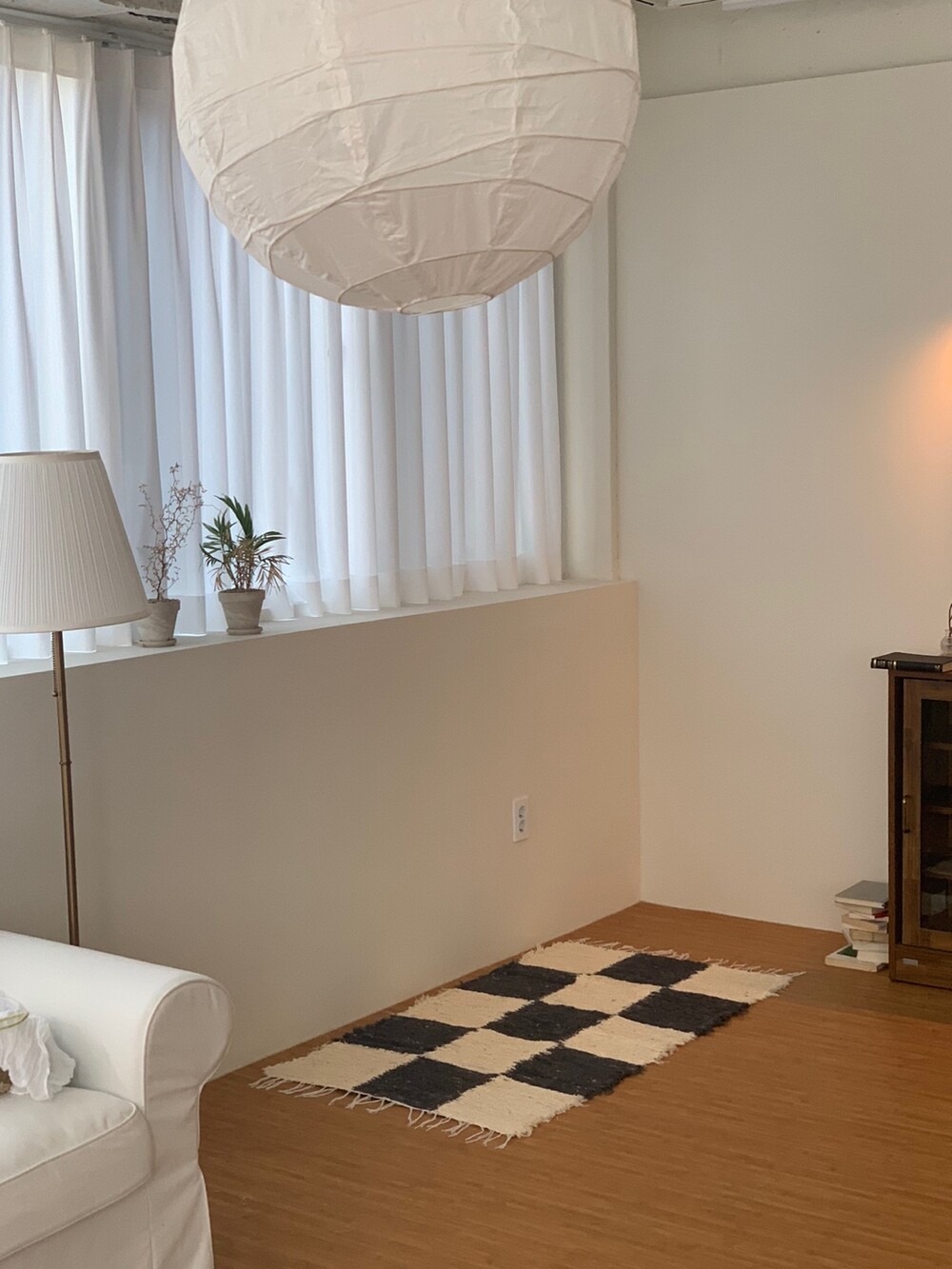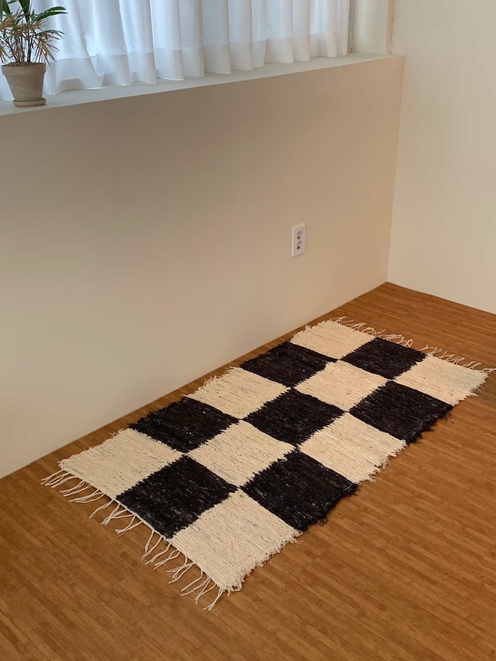 블랙 앤 화이트 체커 무늬 러그 입니다.