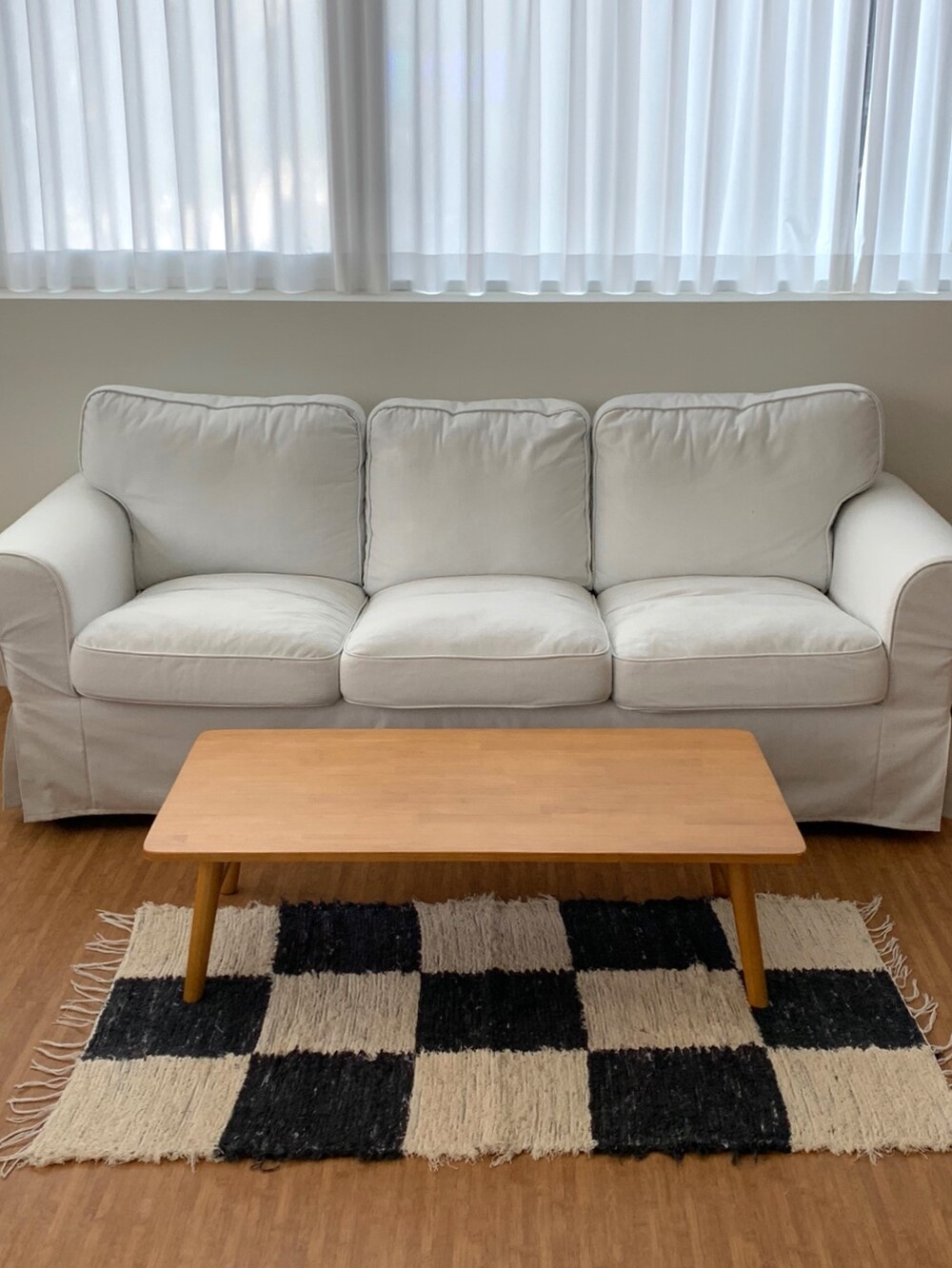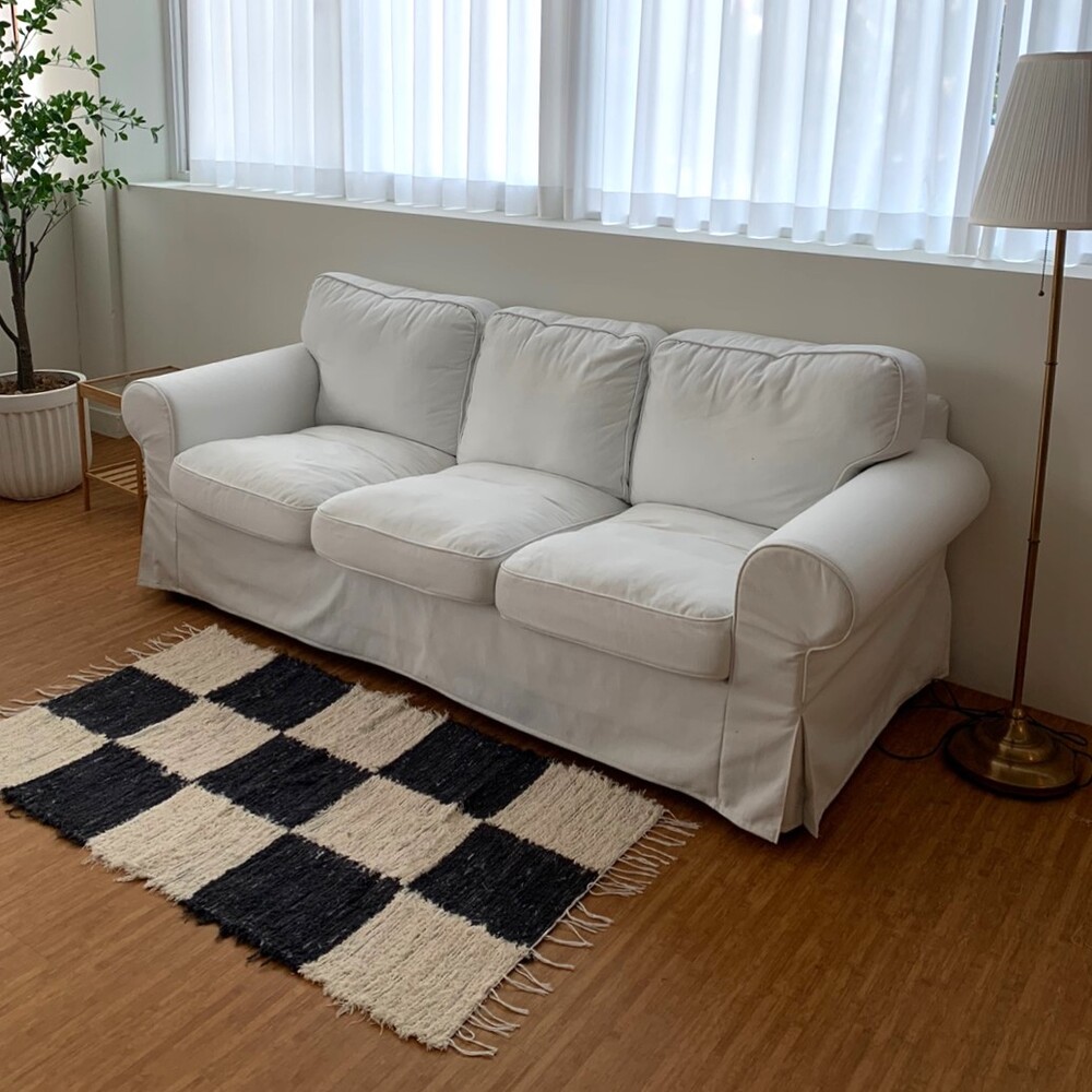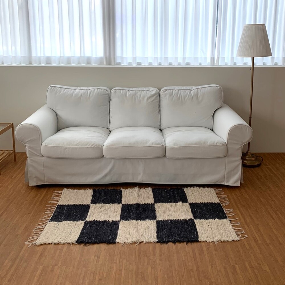 블랙 앤 화이트 체커 무늬 러그 입니다.