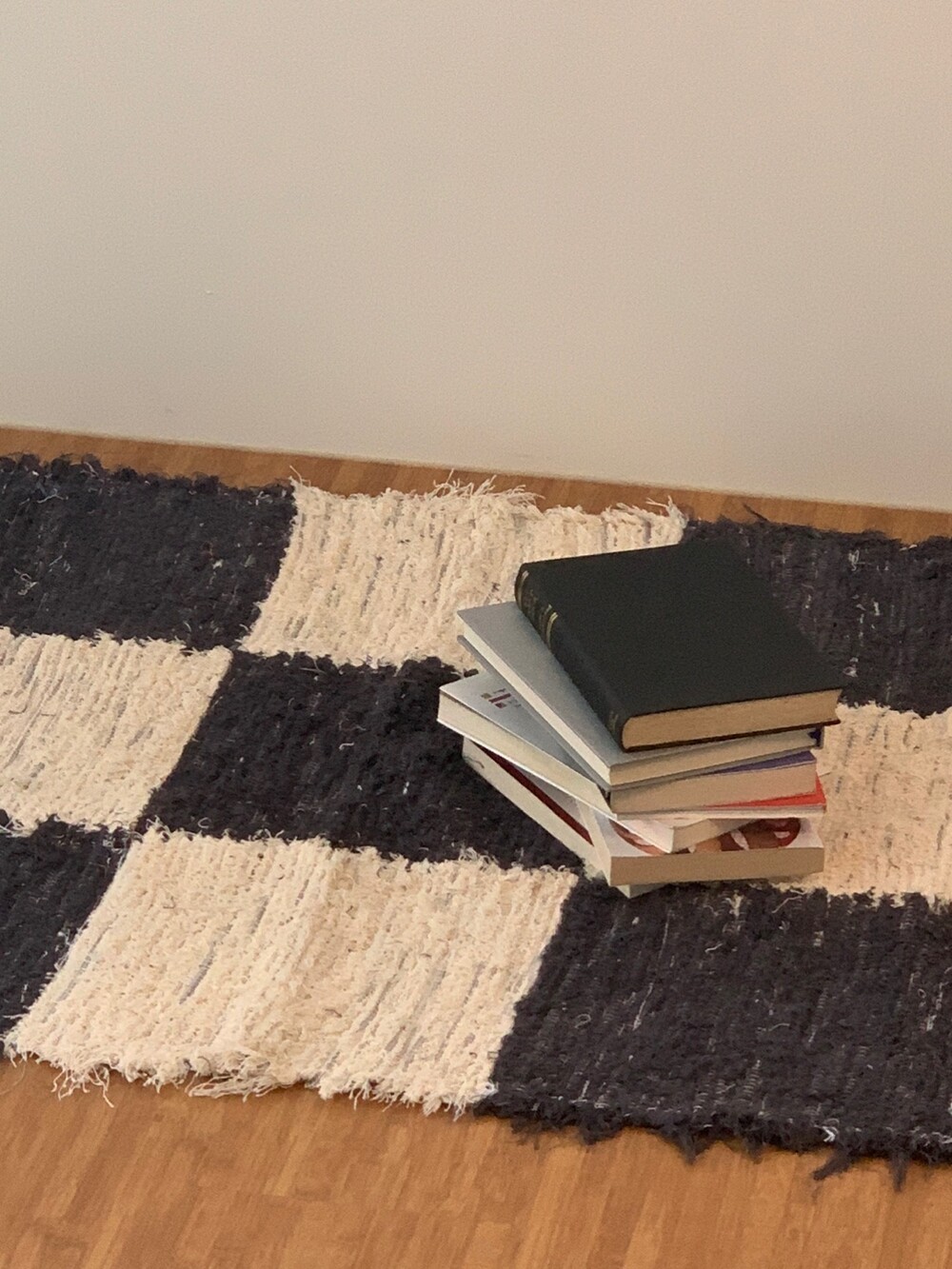 (포르투갈 수입) 핸드메이드 블랙화이트 체커 러그