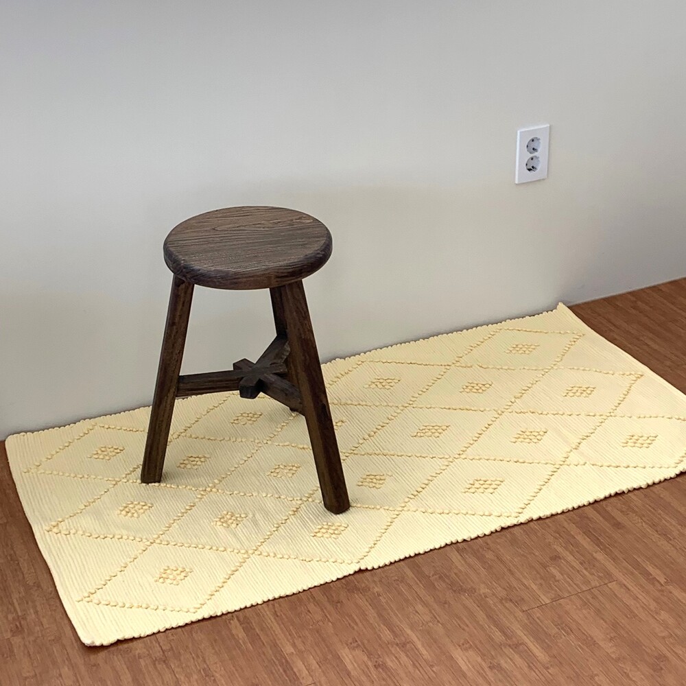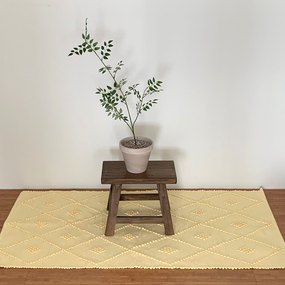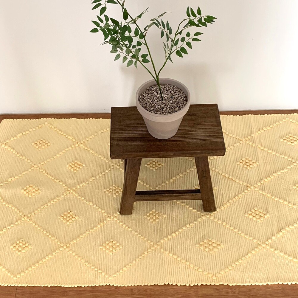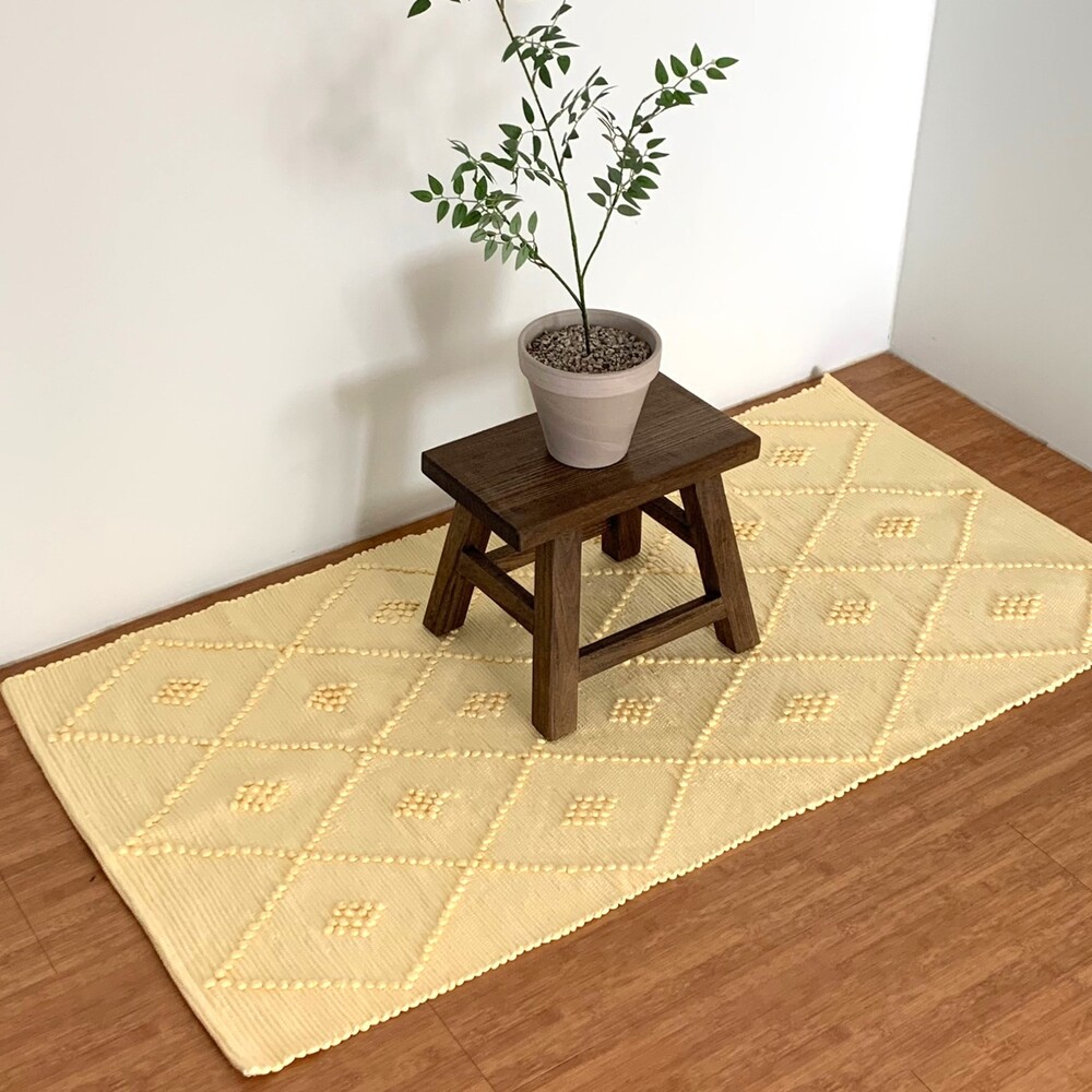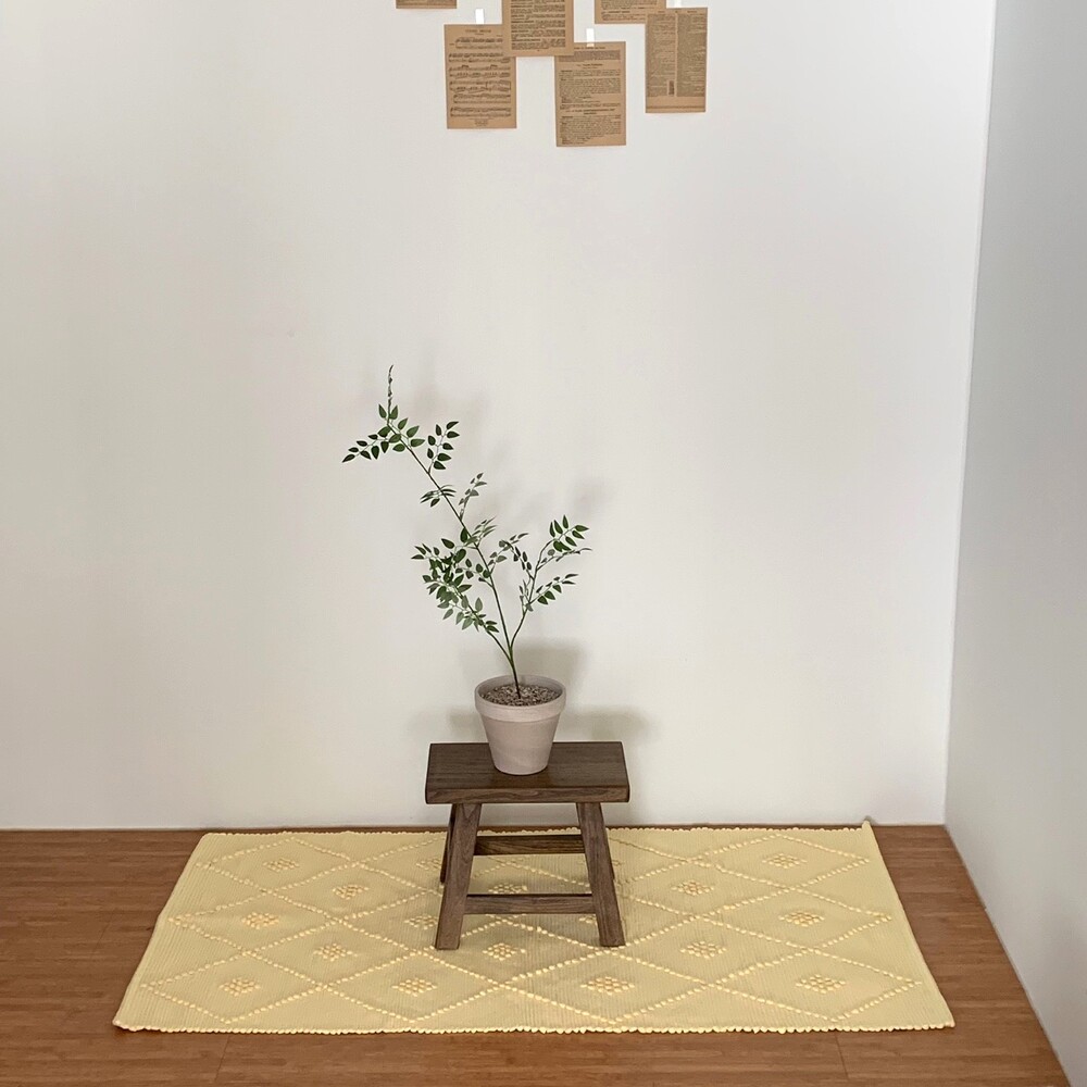 사랑스러운 옐로우 컬러의 다이아몬드 노티드 디테일이 돋보이는 러그 입니다.
