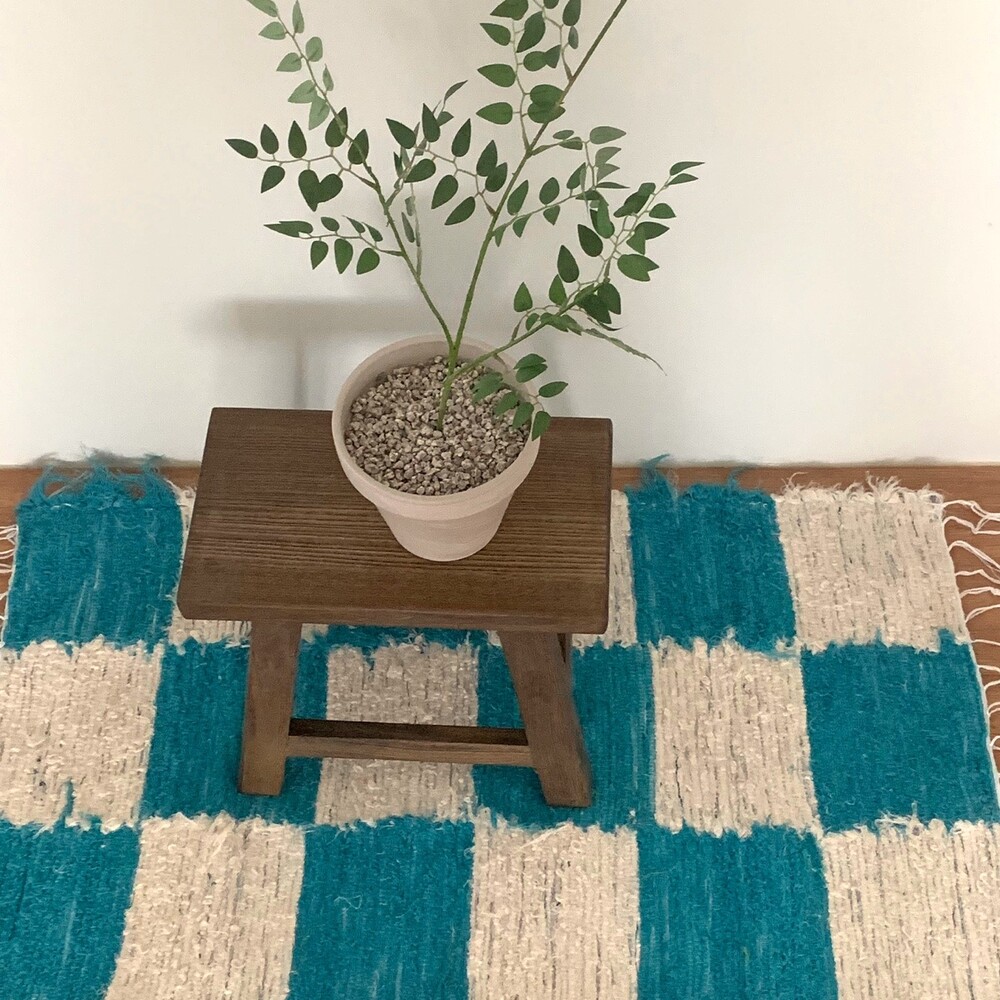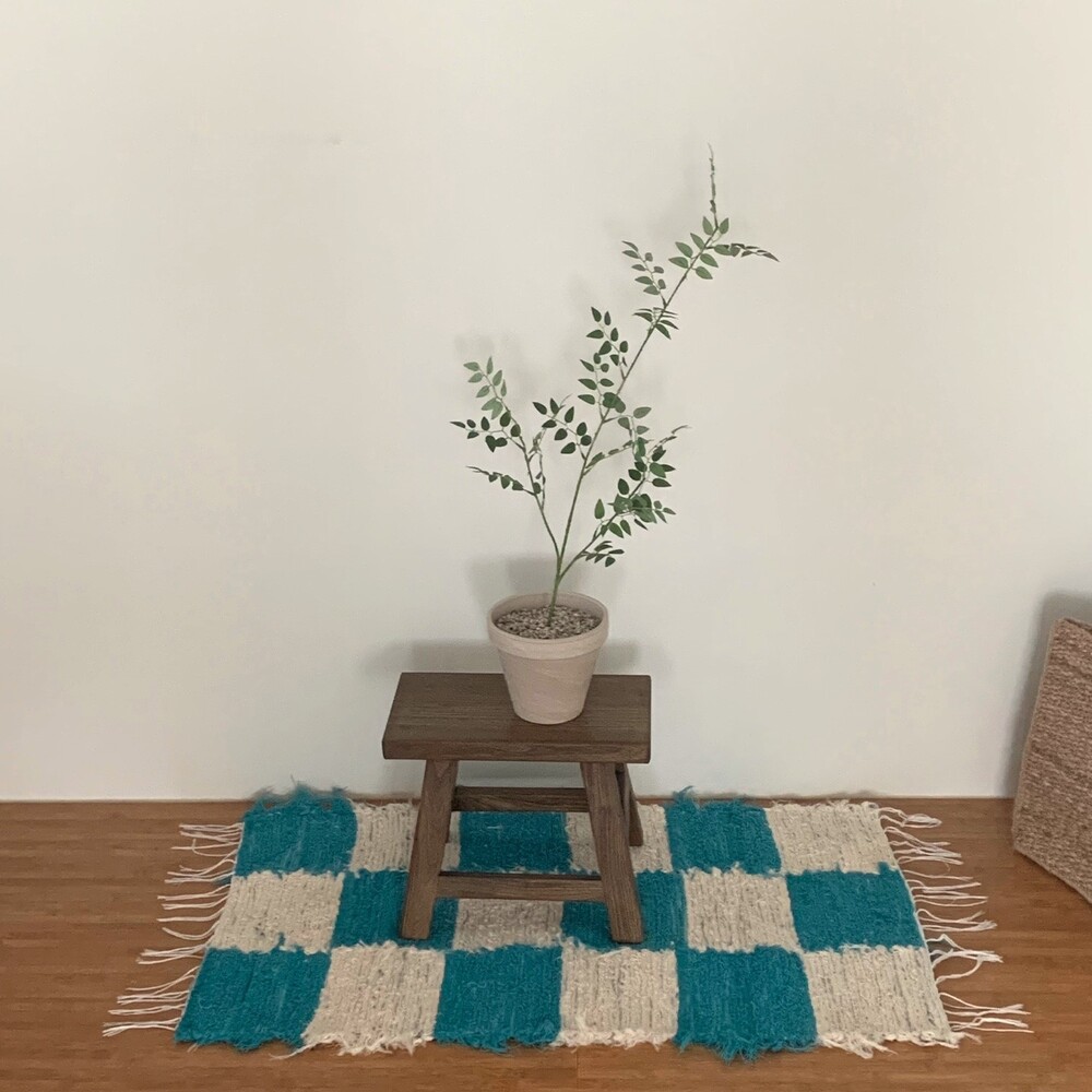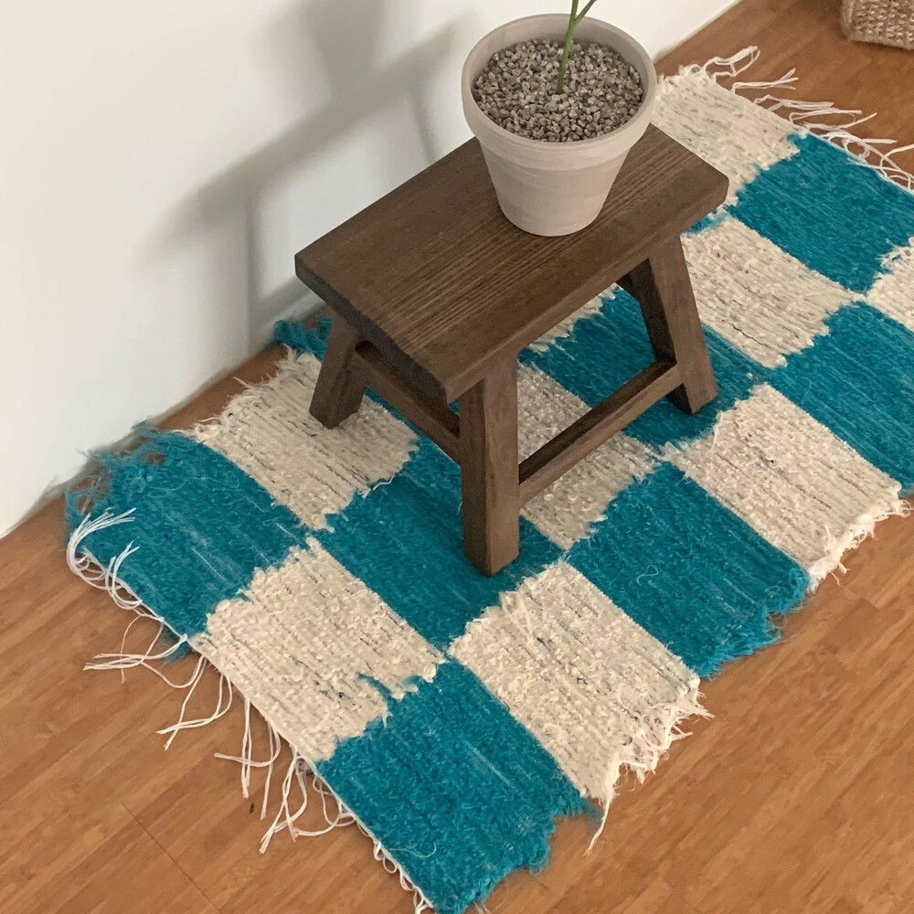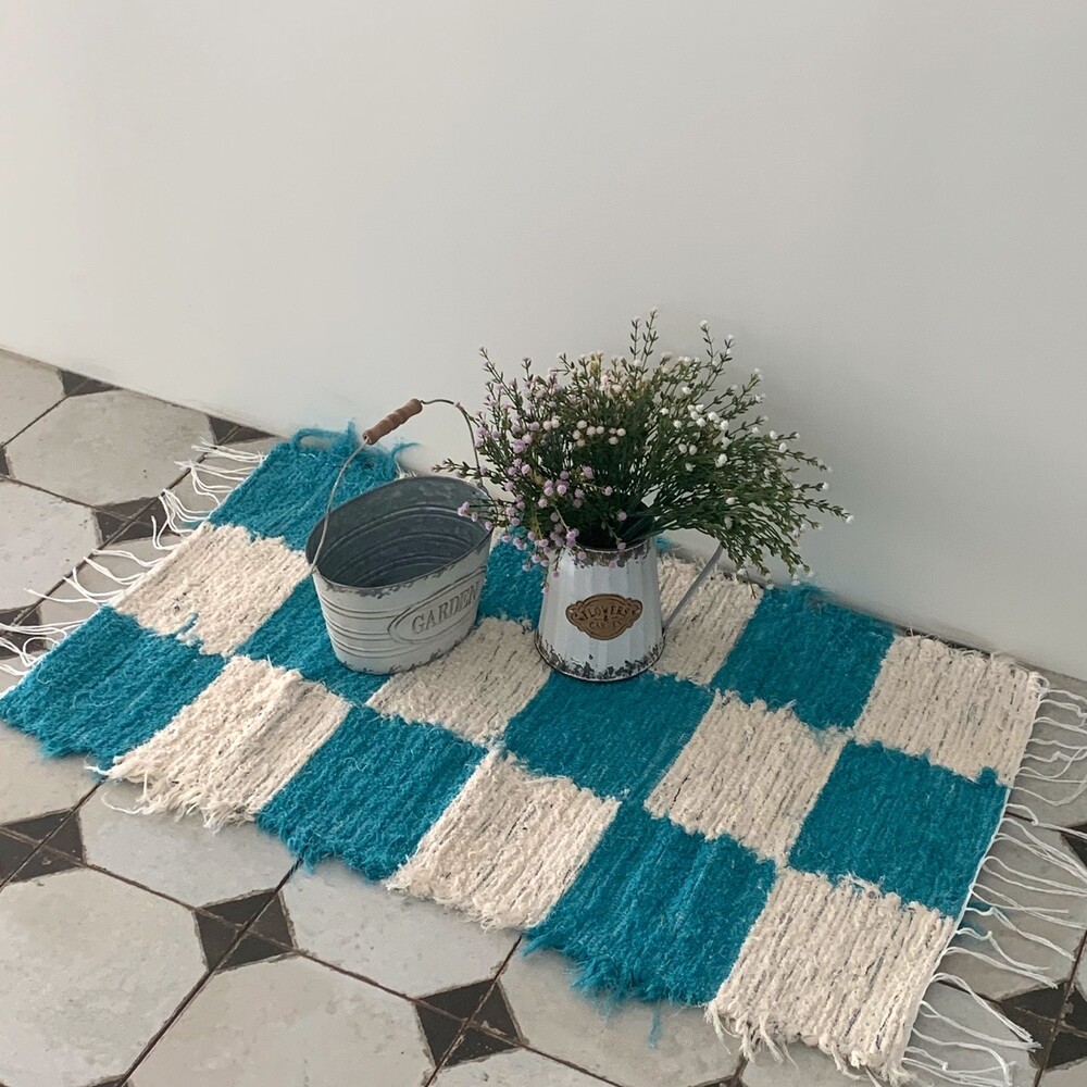 (포르투갈 수입) 핸드메이드 블루체커 러그