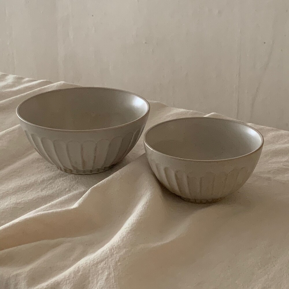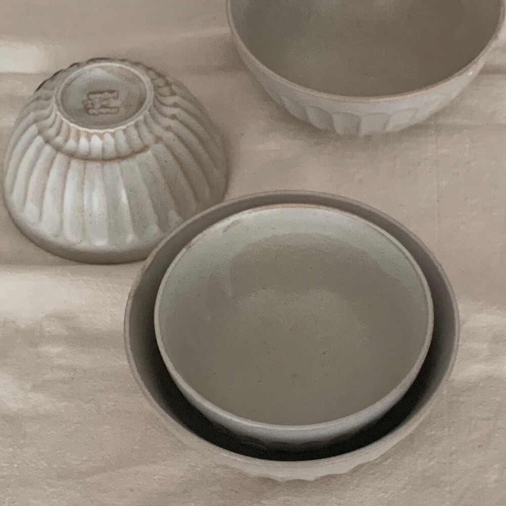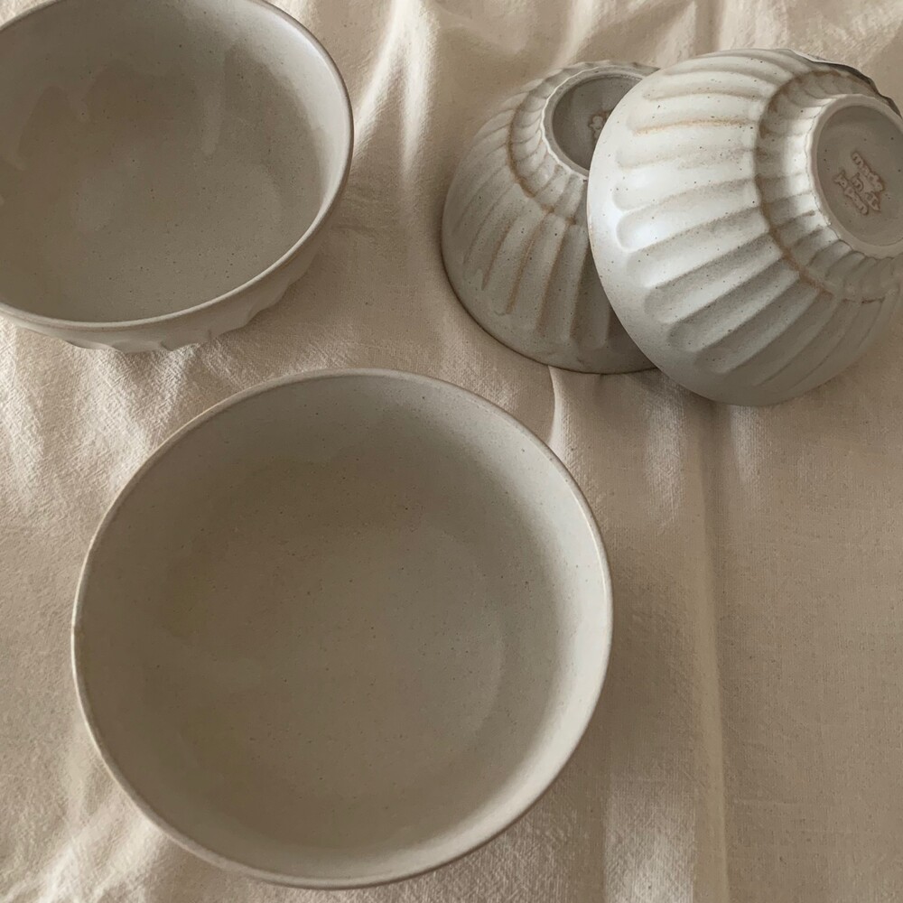 자연스러운 유약의 흐름이 보이는 아이보리 컬러의 밥공기, 국공기입니다.