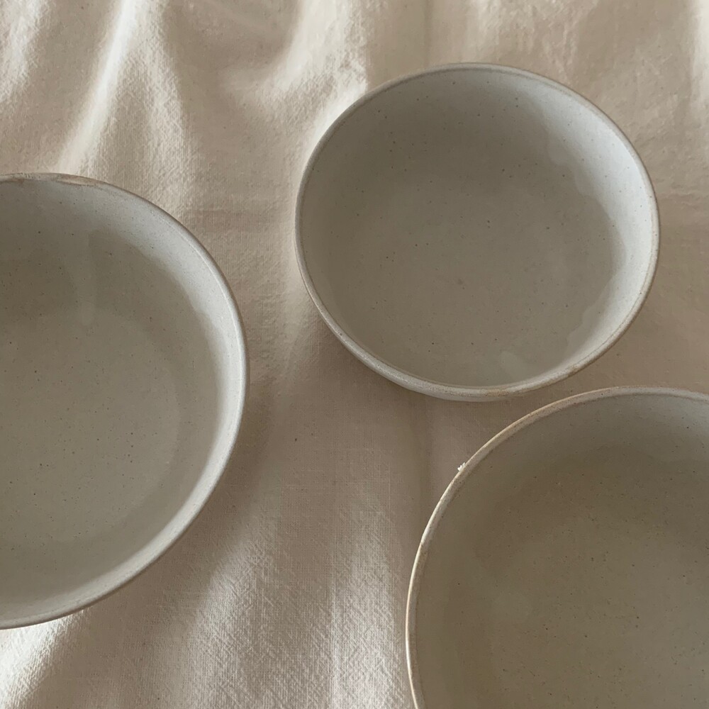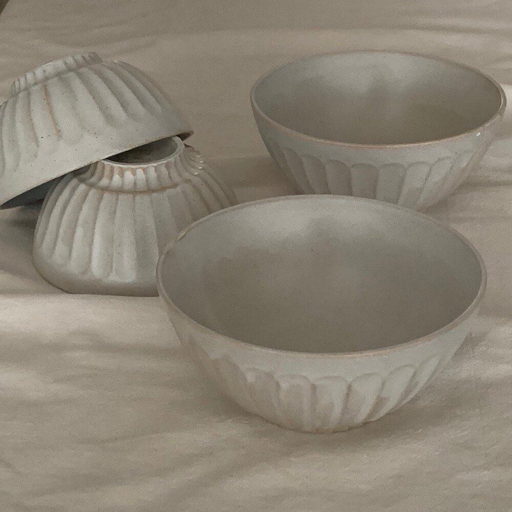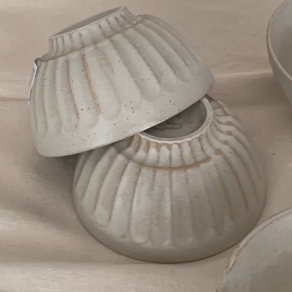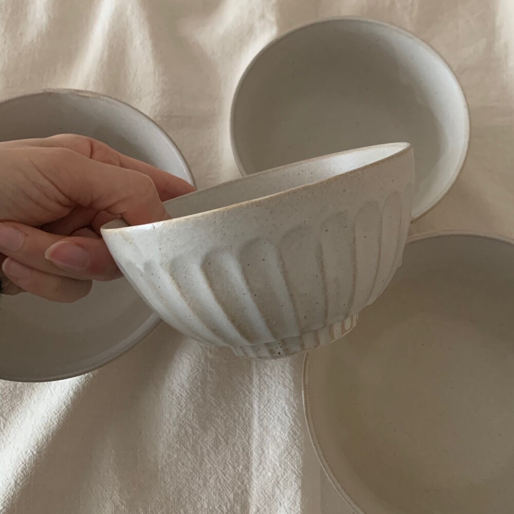 자연스러운 유약의 흐름이 보이는 아이보리 컬러의 밥공기, 국공기입니다.