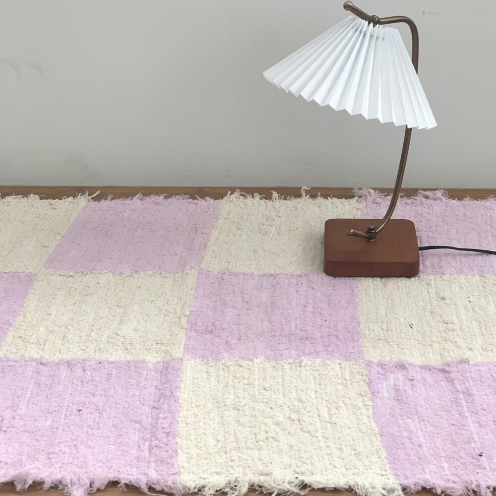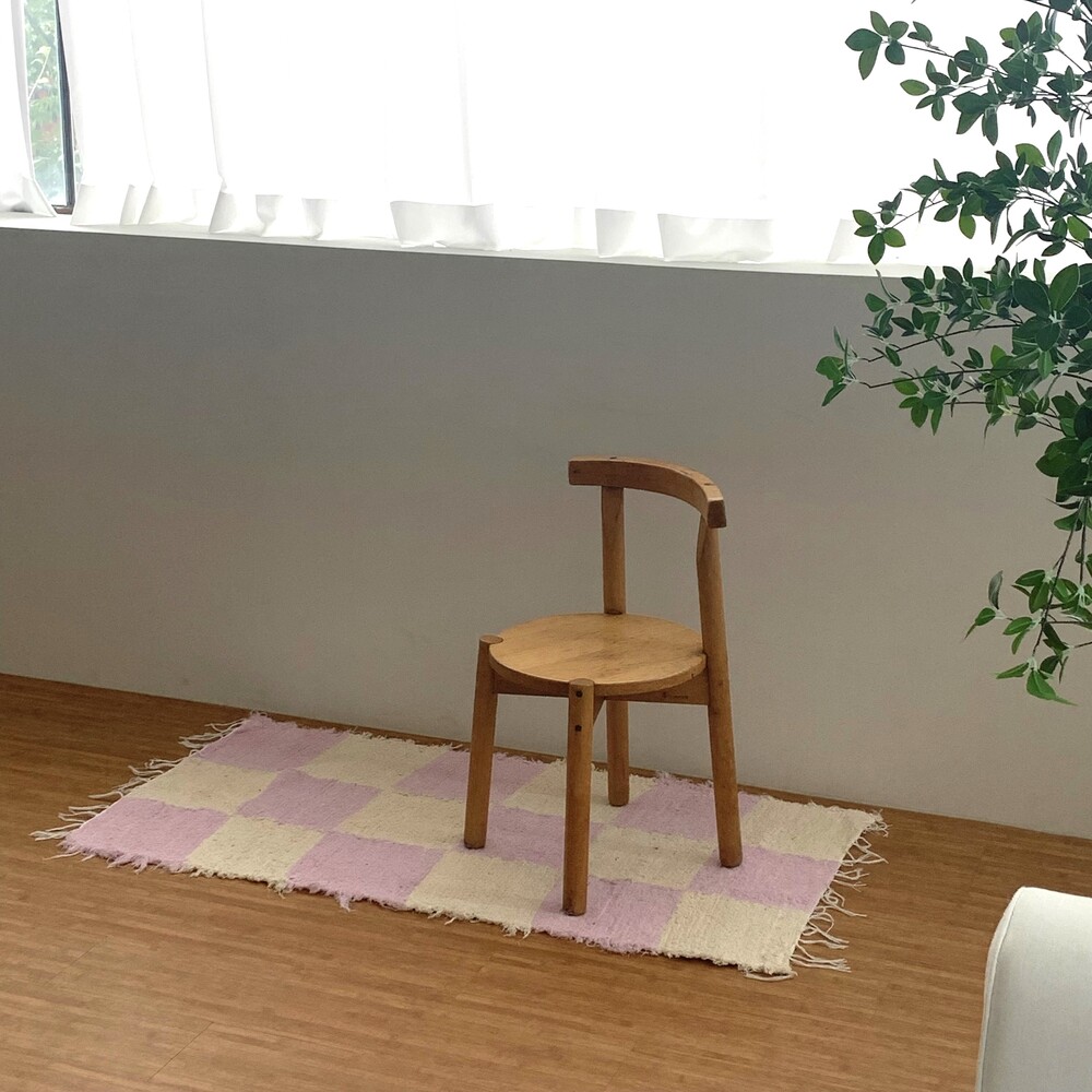 (포르투갈 수입) 핸드메이드 라벤더 체커 미듐 러그