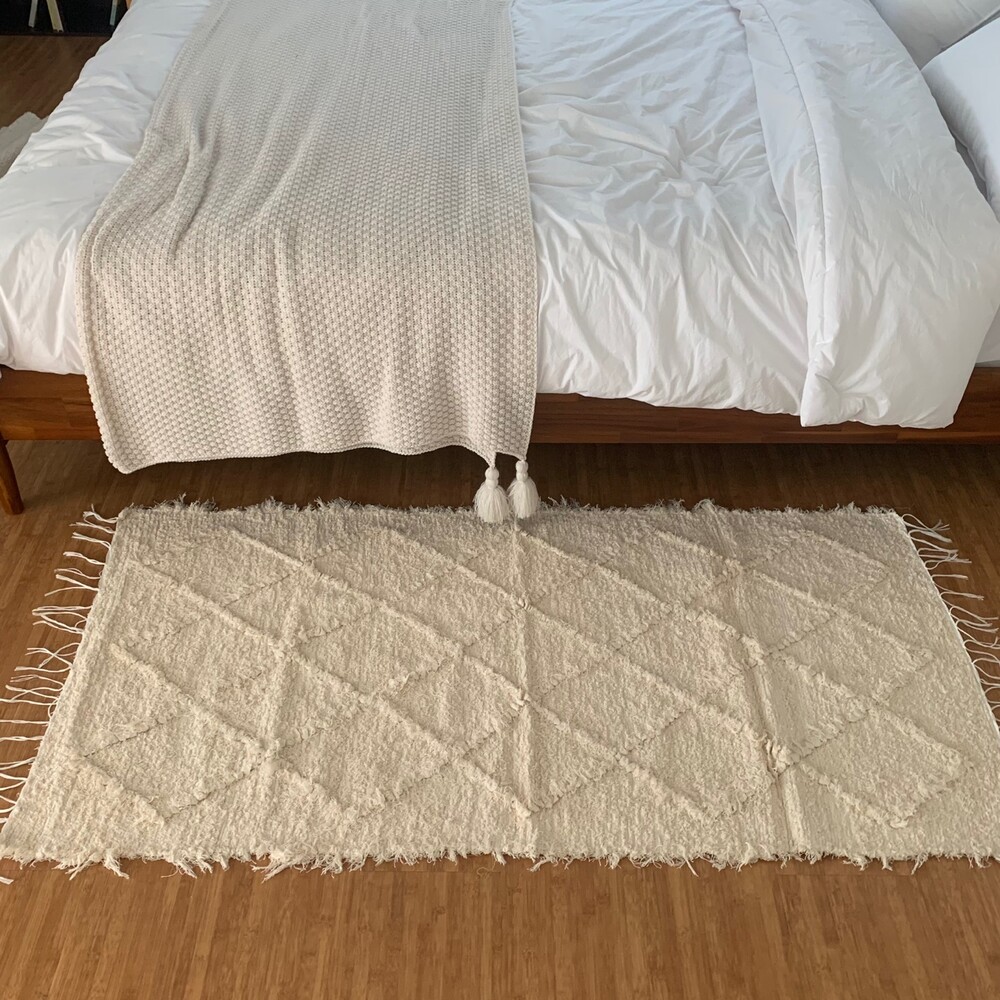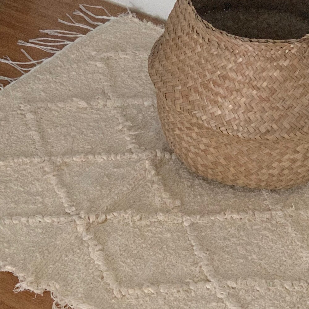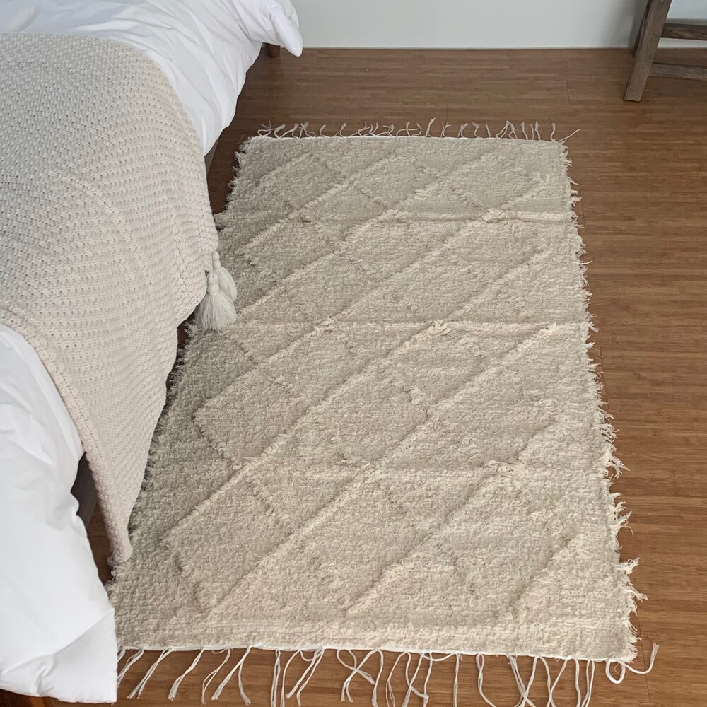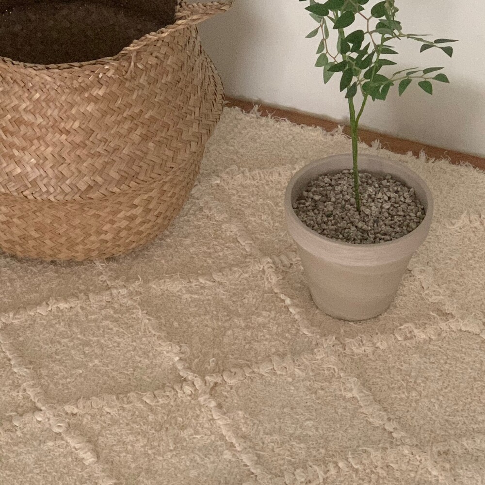 차분한 아이보리 톤에 도톰한 다이아몬드 라인이 더해진 포근한 느낌의 러그 입니다.