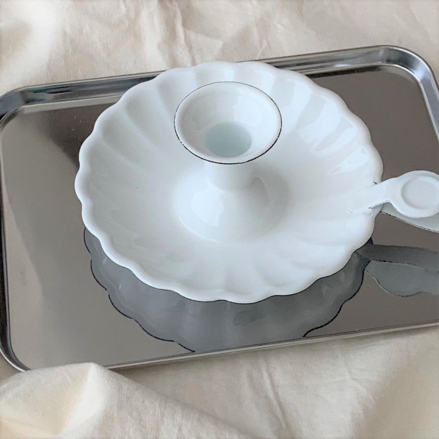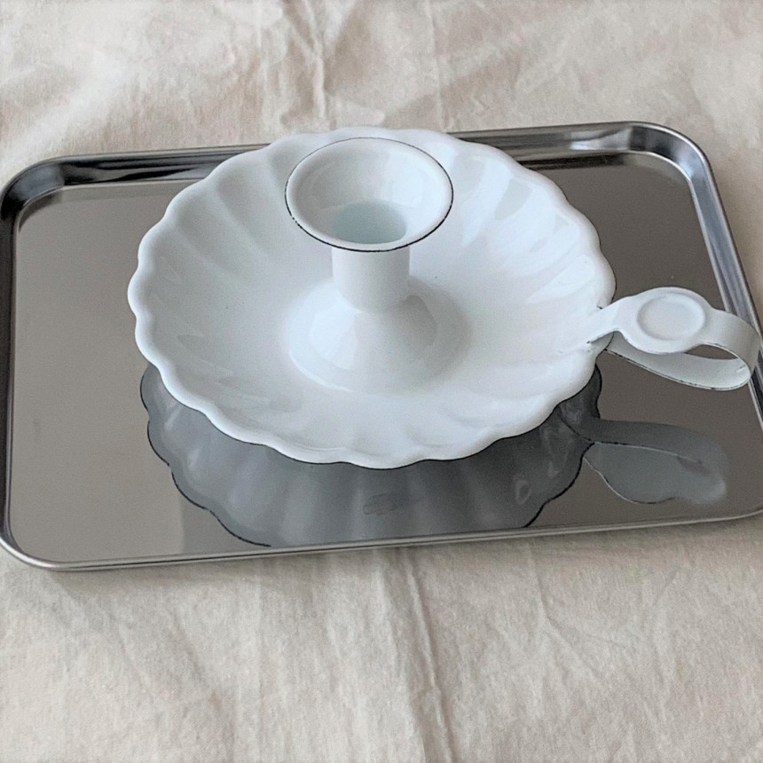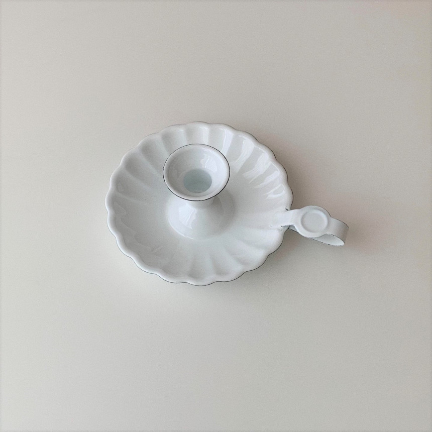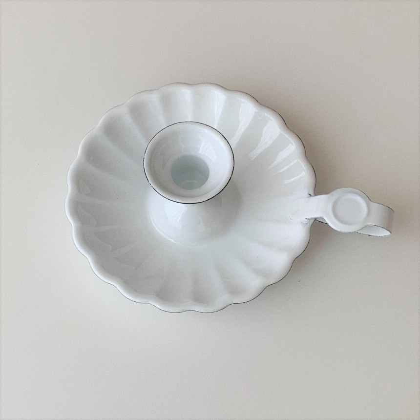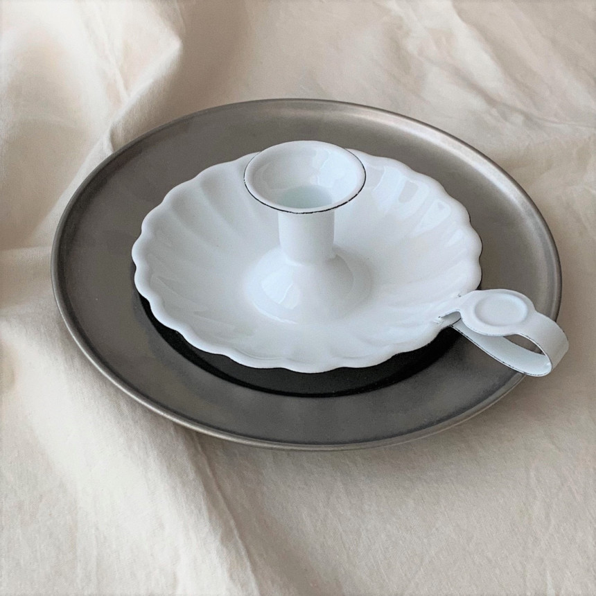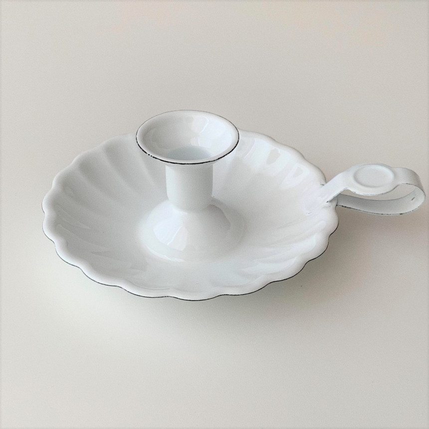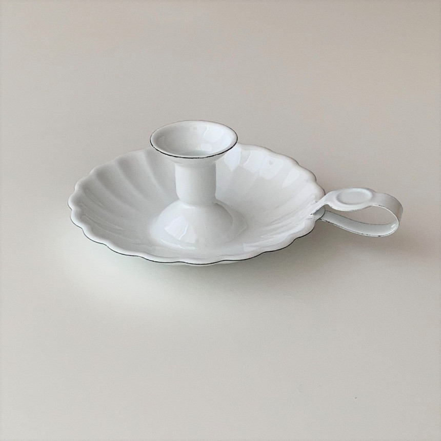 이런 심플하면서도 빈티지스러운 촛대를 찾고 있었는데 마음에 드는 디자인을 보고선 바로 입고하게 되었어요. 보통은 아주 앤틱하고 고풍스러운 느낌의 촛대를 많이 봤었는데 그보다는 더 심플하면서도 아주 새거같지 않은 그런 느낌을 원했거든요. 그리고 소재가 법랑 이라는 것도 참 마음에 들어요. 색상이 화이트라 어떤 컬러의 초를 꽂아도 너무 잘 어울릴 것 같고, 사실 초 없이 그냥 놔두어도 하나의 인테리어 소품 역할도 가능하답니다.