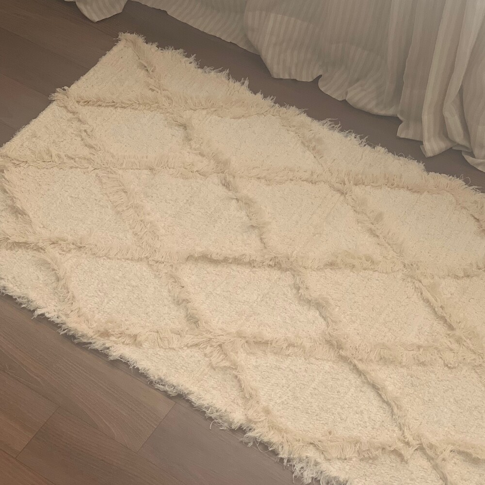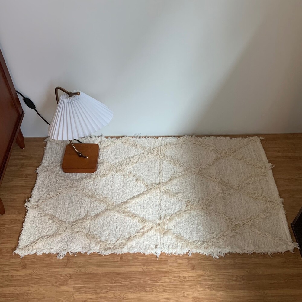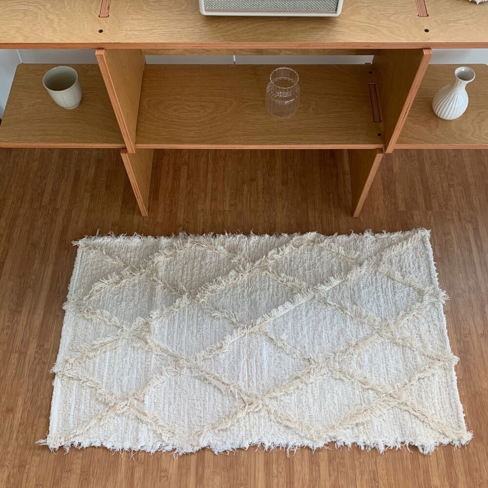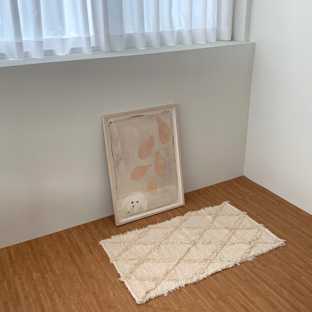 크림 빛이 감도는 아이보리 컬러의 미니 사이즈 러그 입니다.
