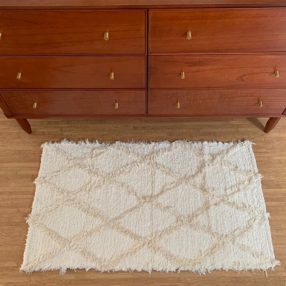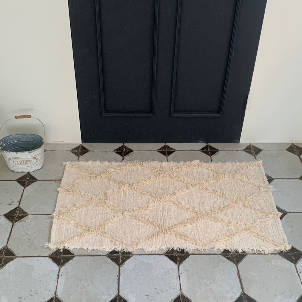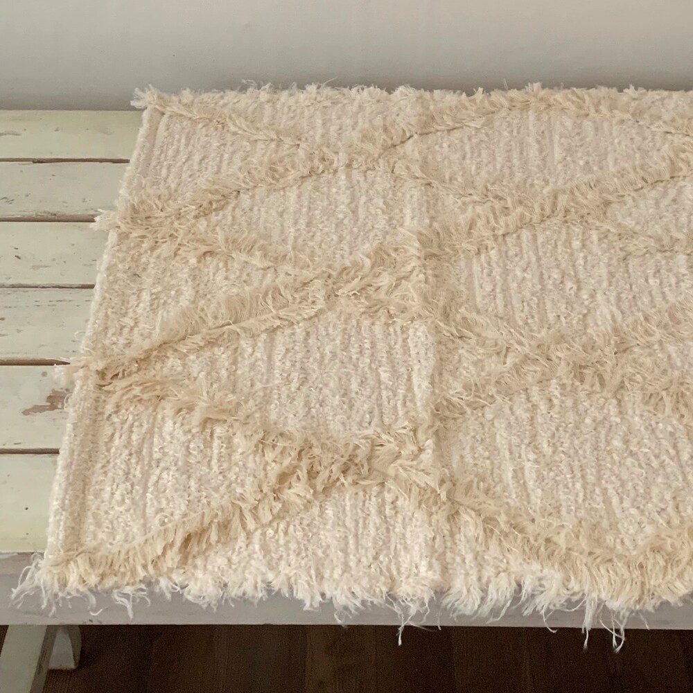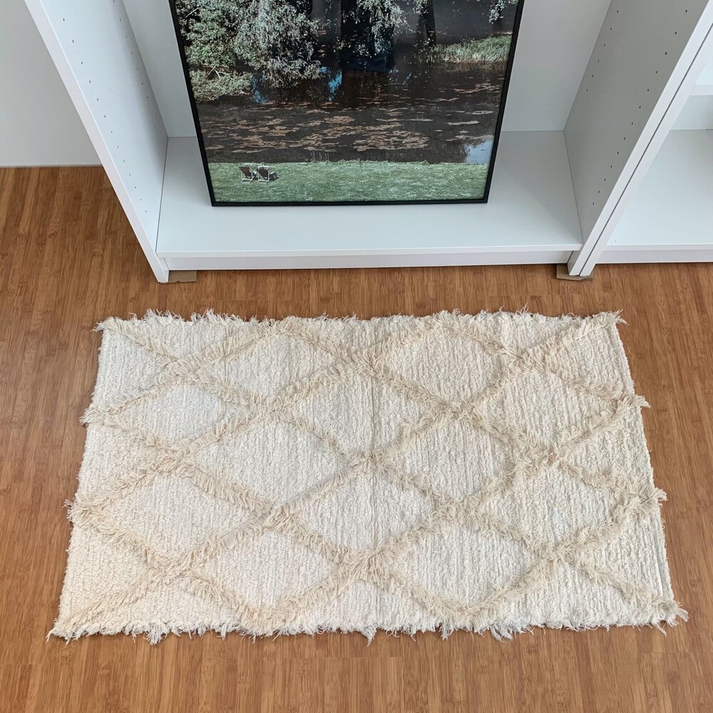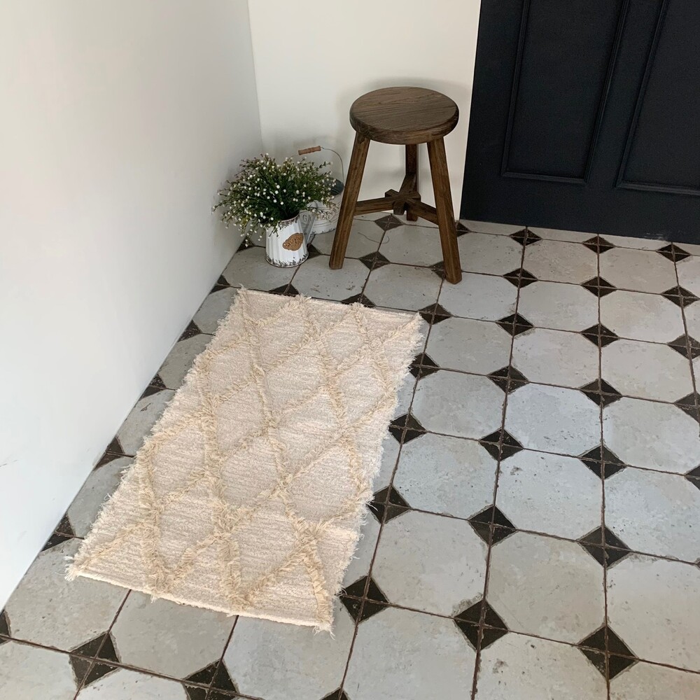 크림 빛이 감도는 아이보리 컬러의 미니 사이즈 러그 입니다.