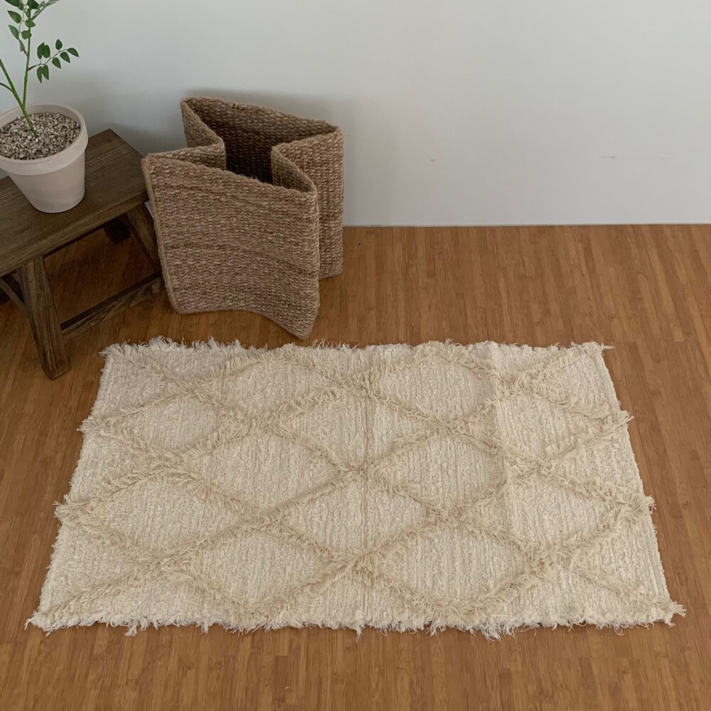 (포르투갈 수입) 핸드메이드 크림다이아몬드 러그