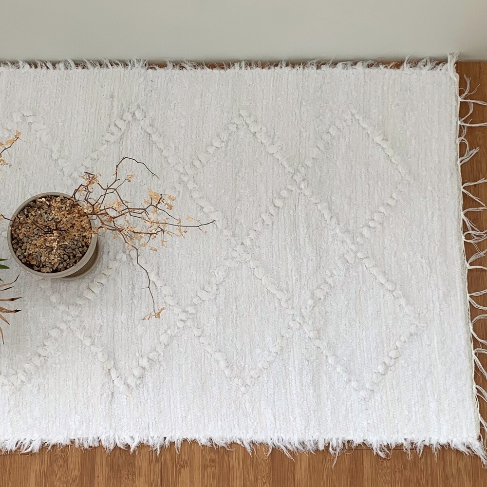 퓨어한 화이트 톤에 도톰한 다이아몬드 라인이 더해진 포근한 느낌의 러그 입니다.