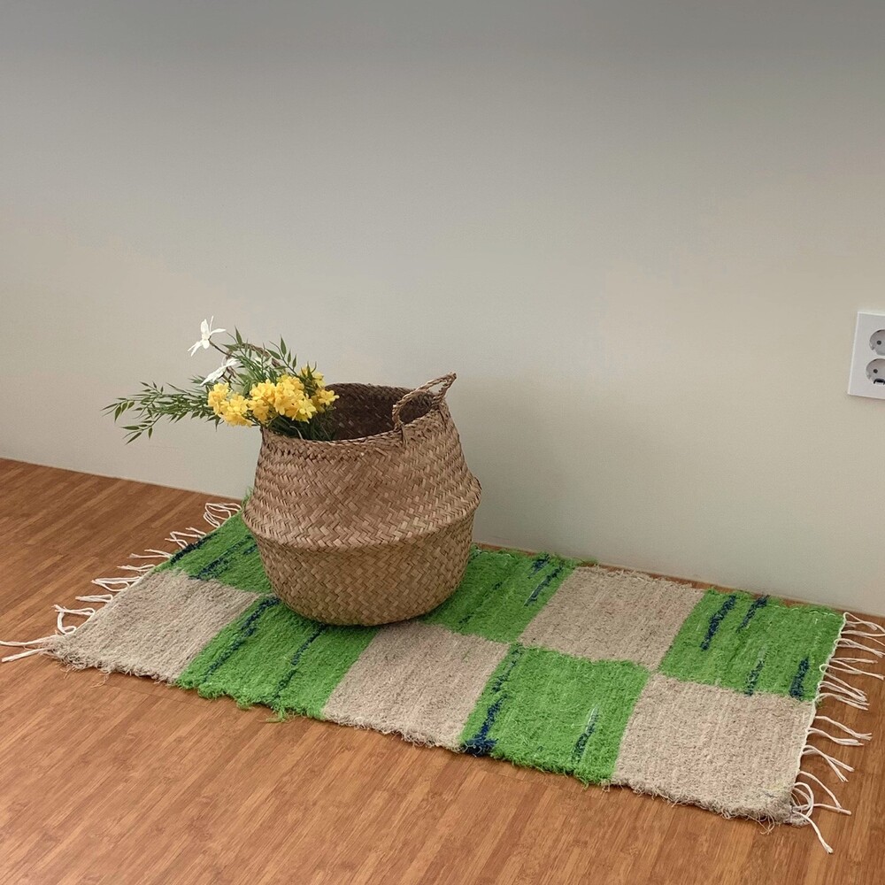 (포르투갈 수입) 핸드메이드 그린체커 러그
