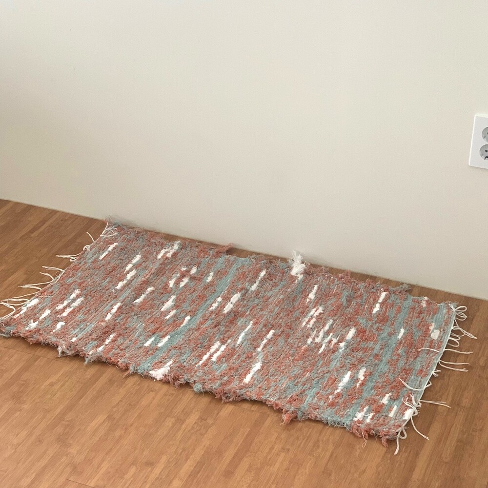 오렌지, 블루, 화이트 컬러가 믹스된 러그 입니다.