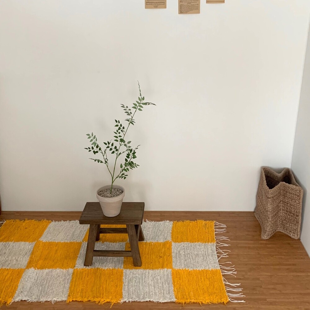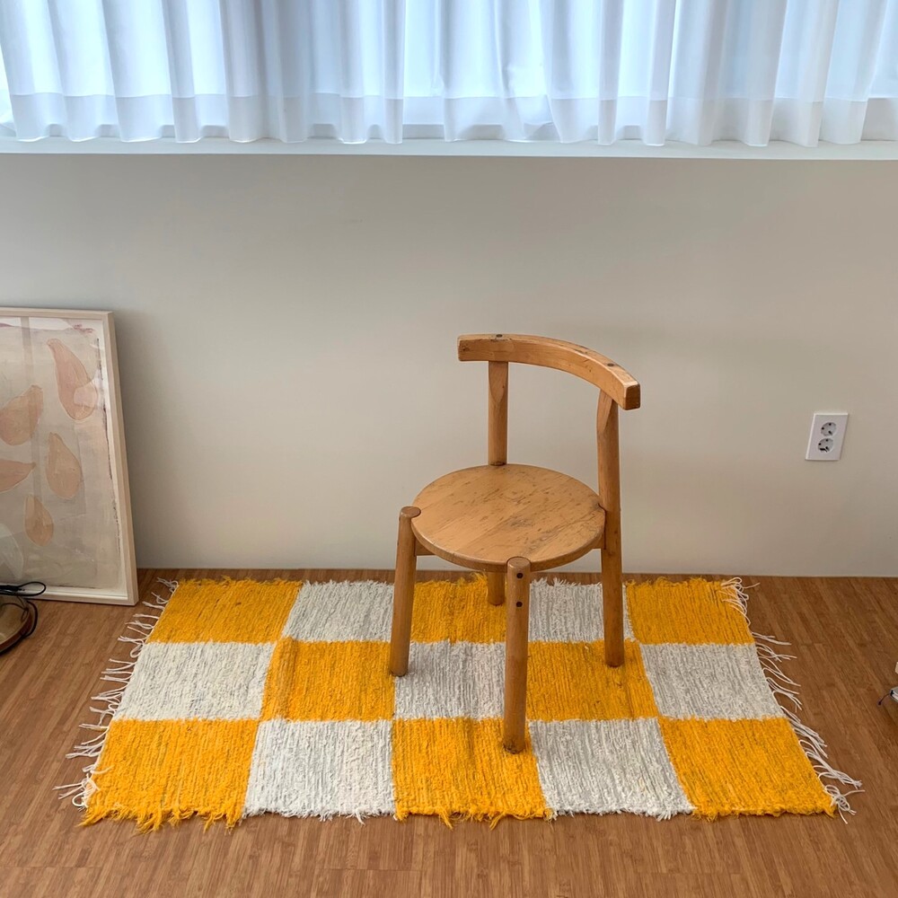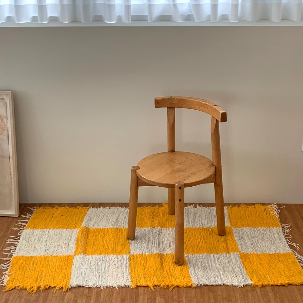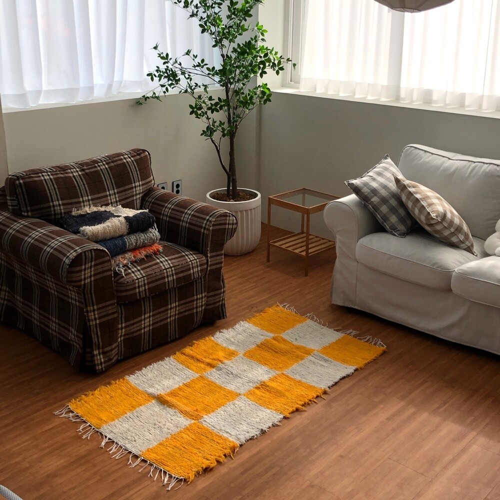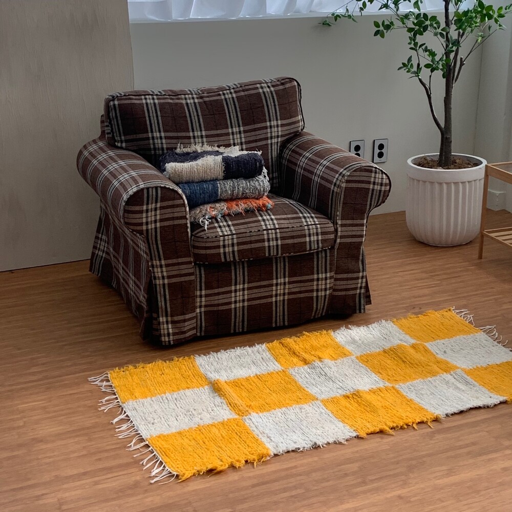 (포르투갈 수입) 핸드메이드 옐로우 체커 러그 미듐
