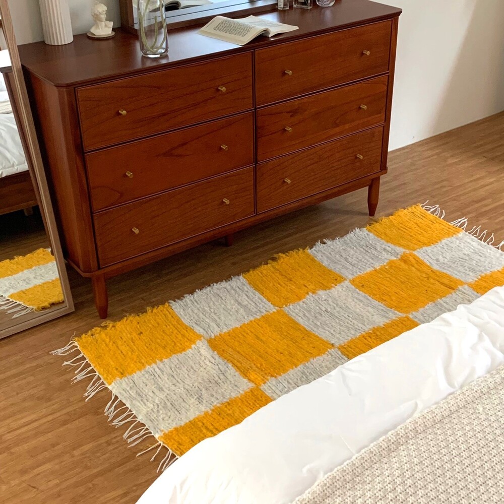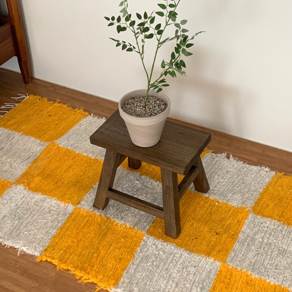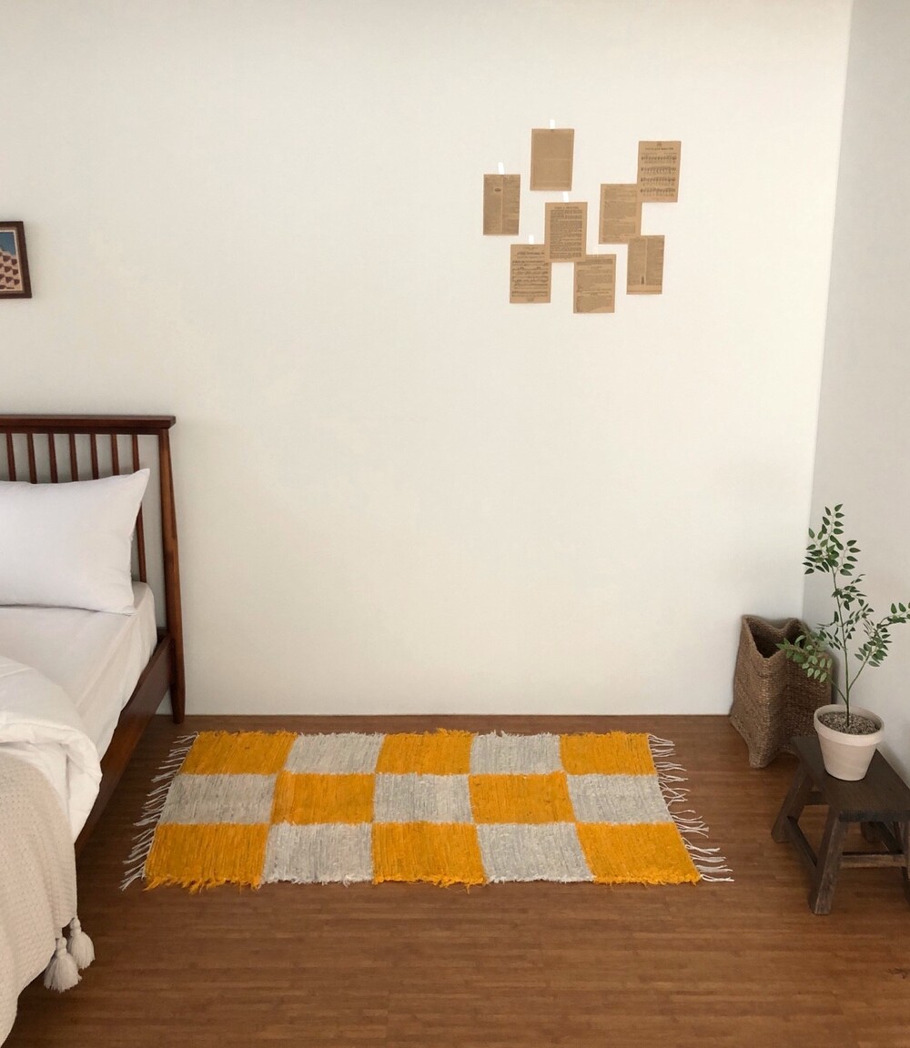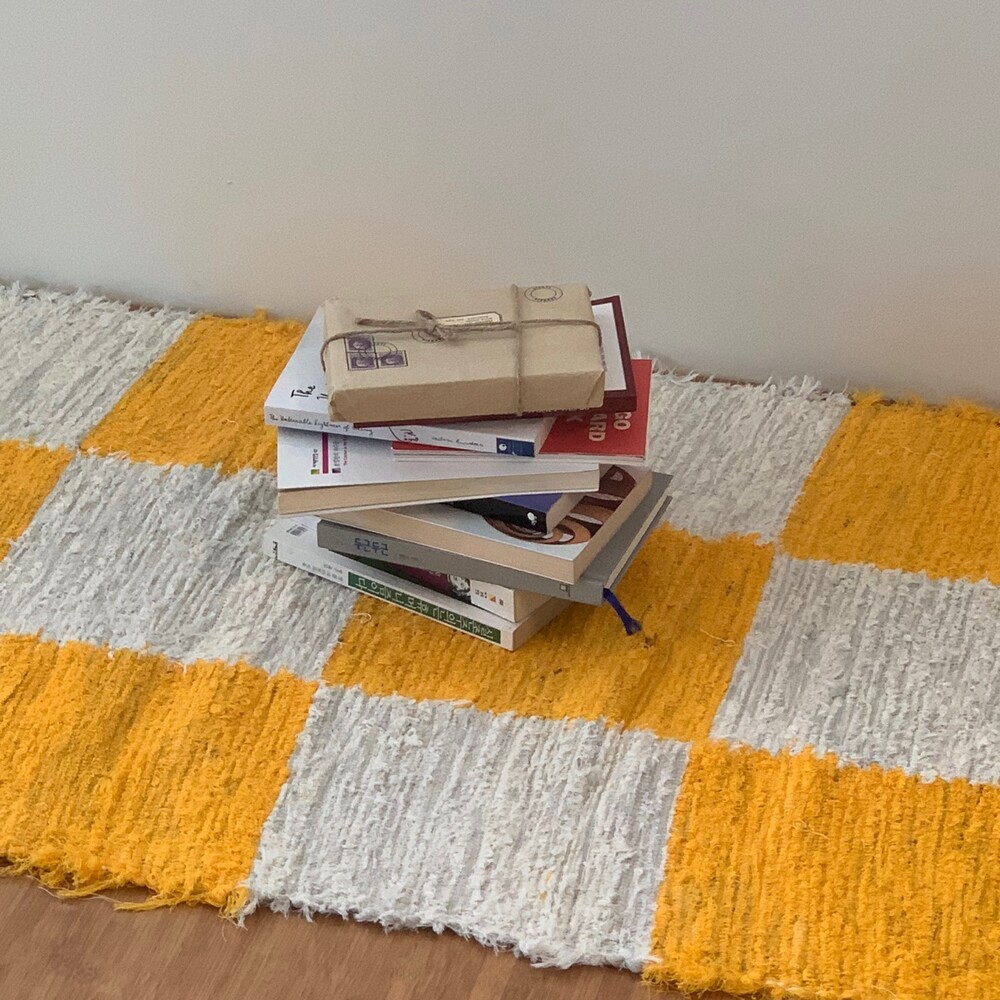 (포르투갈 수입) 핸드메이드 옐로우 체커 러그 미듐