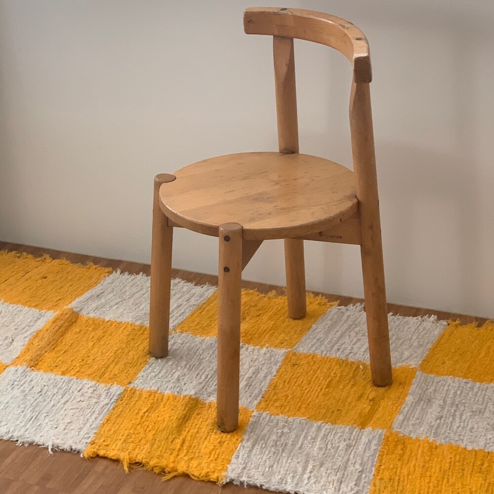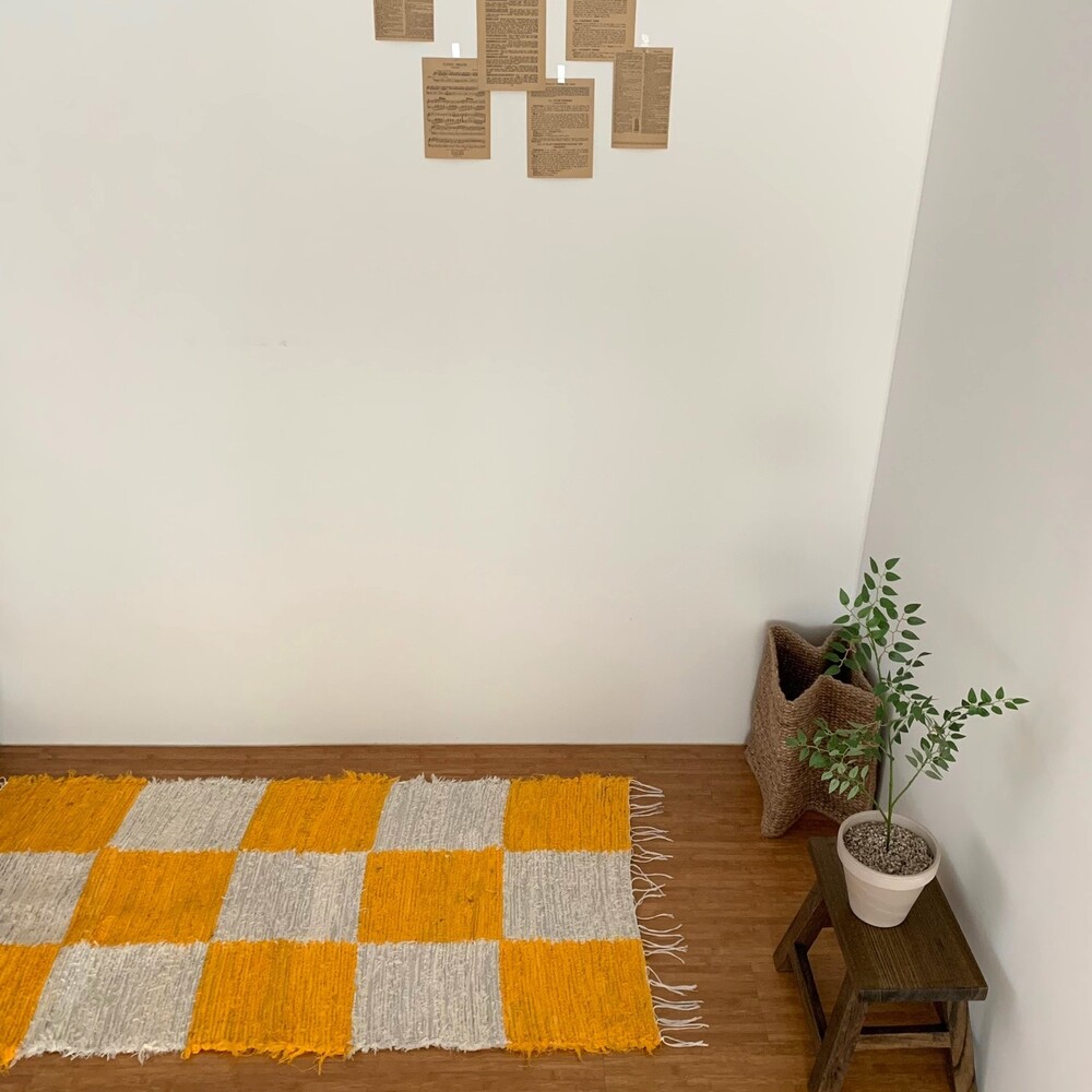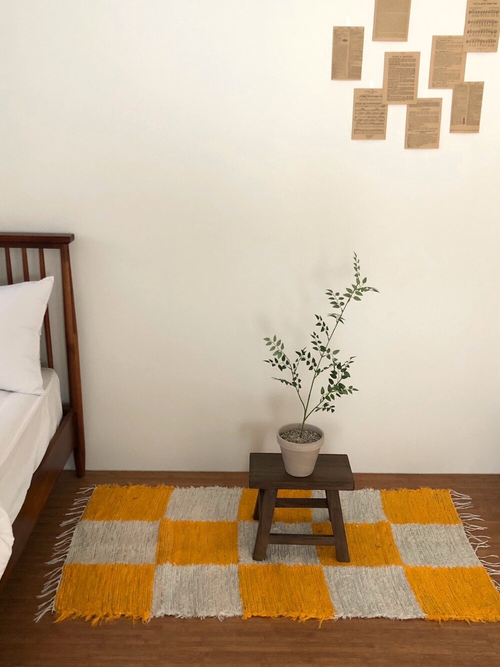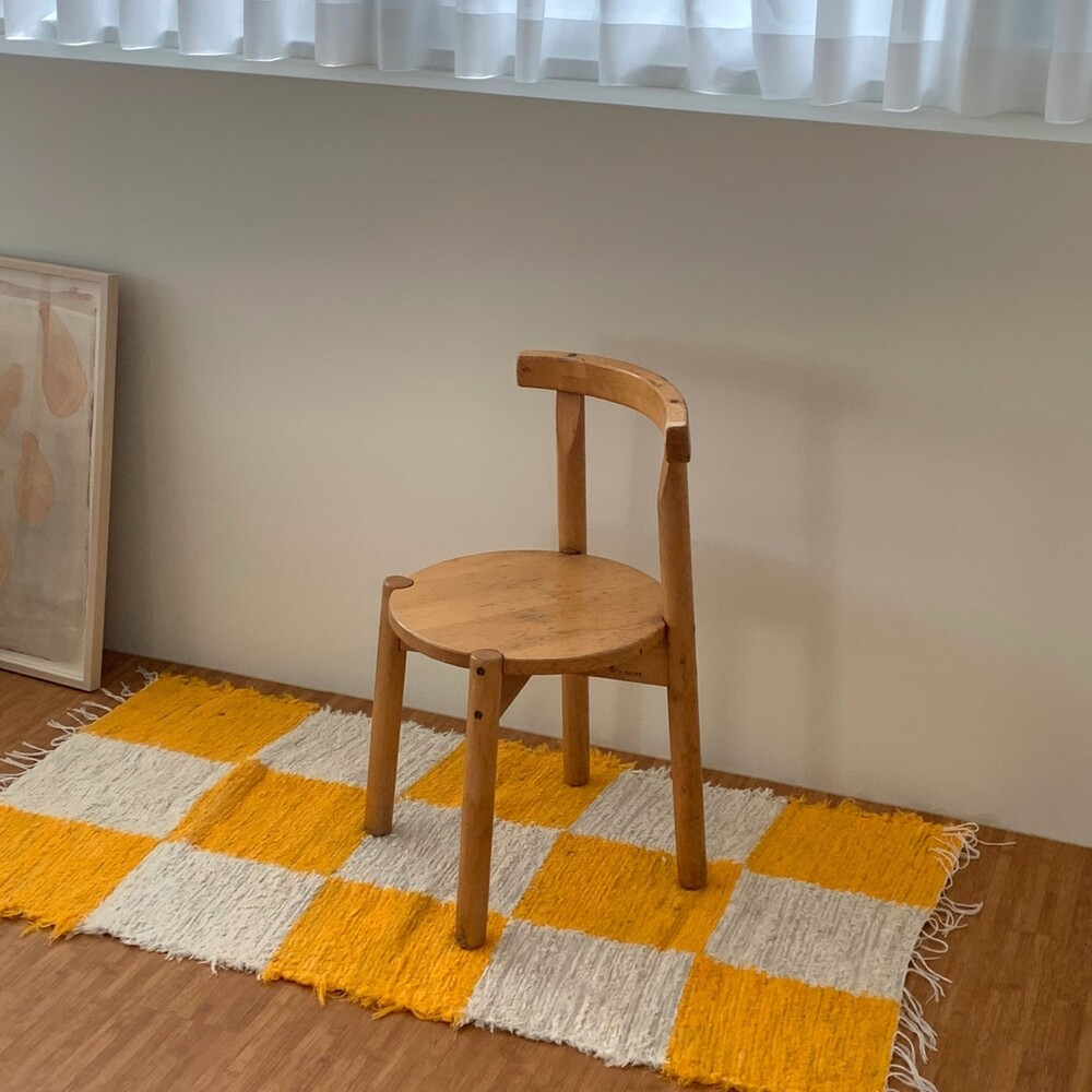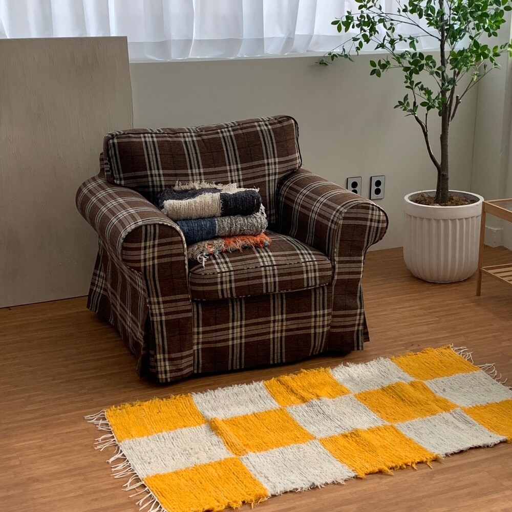 (포르투갈 수입) 핸드메이드 옐로우 체커 러그 미듐