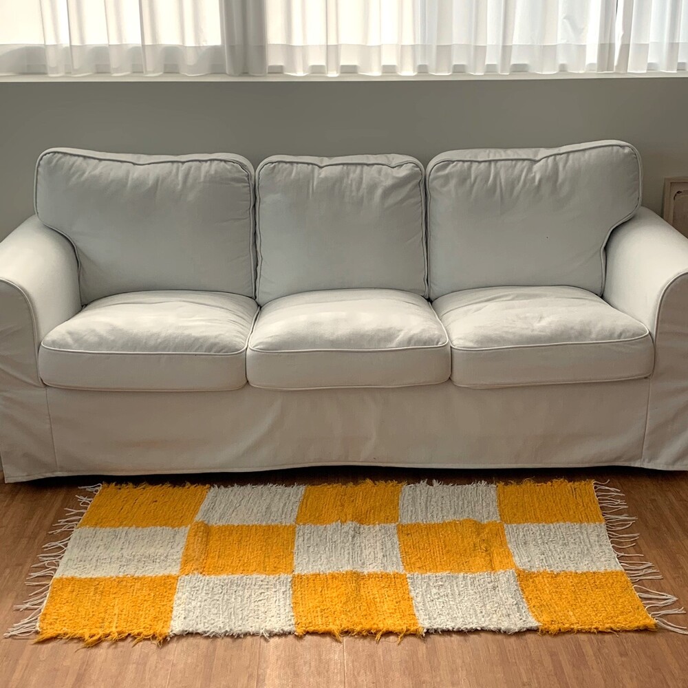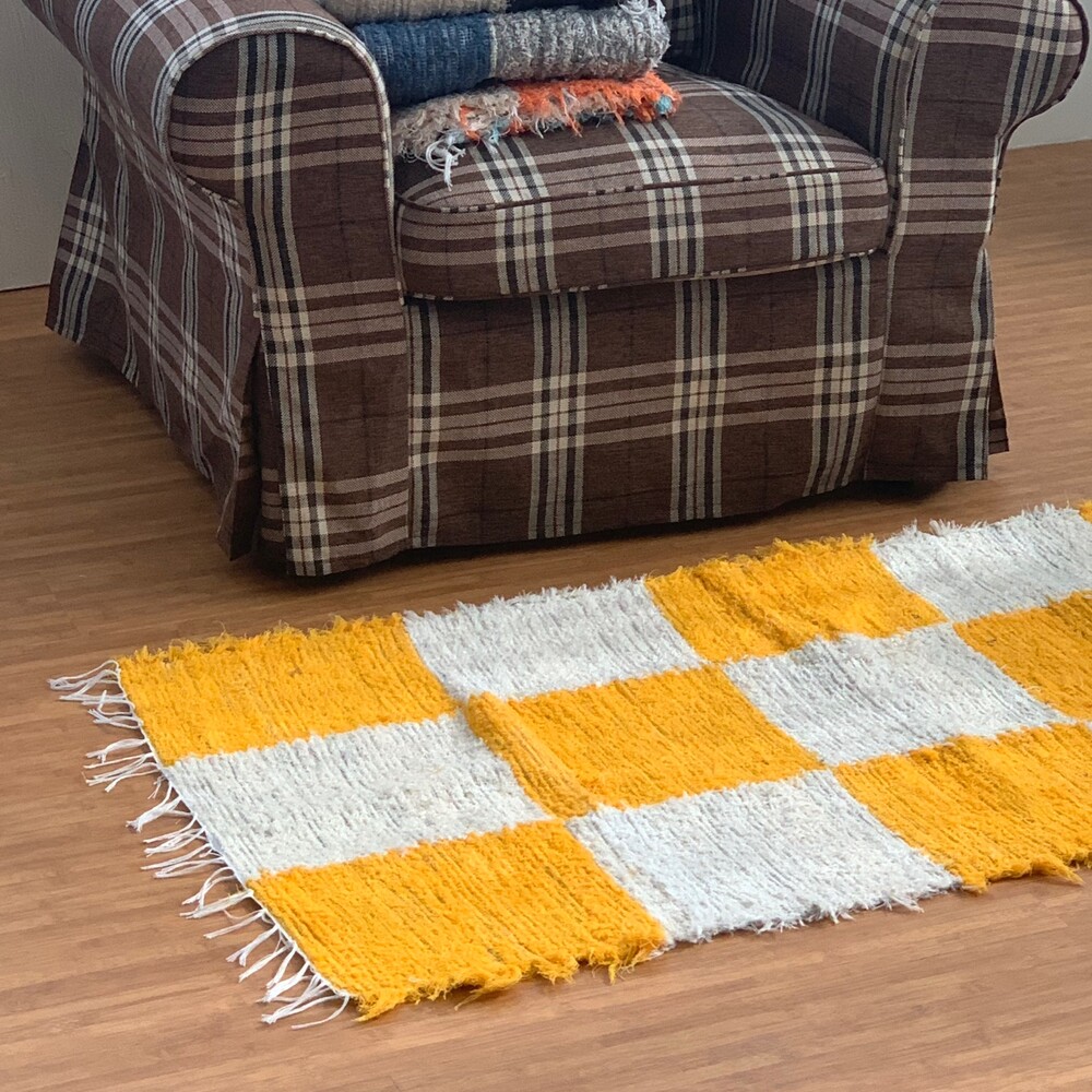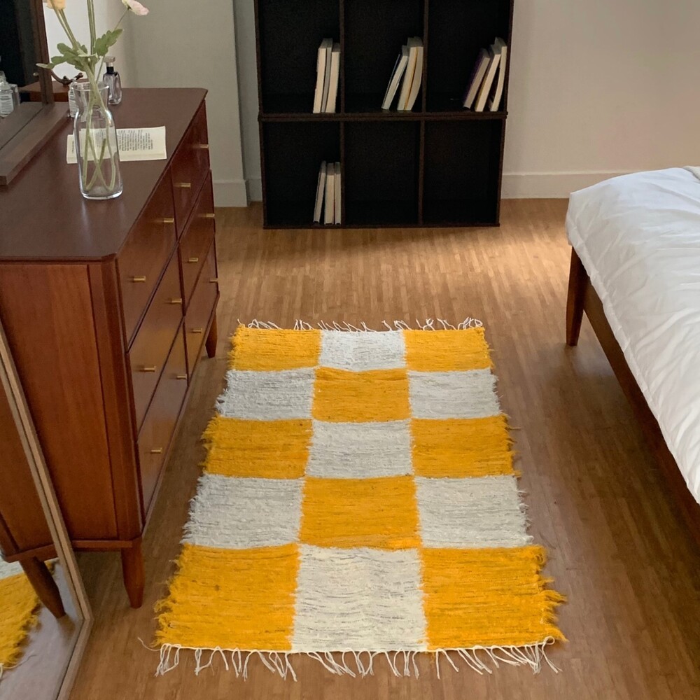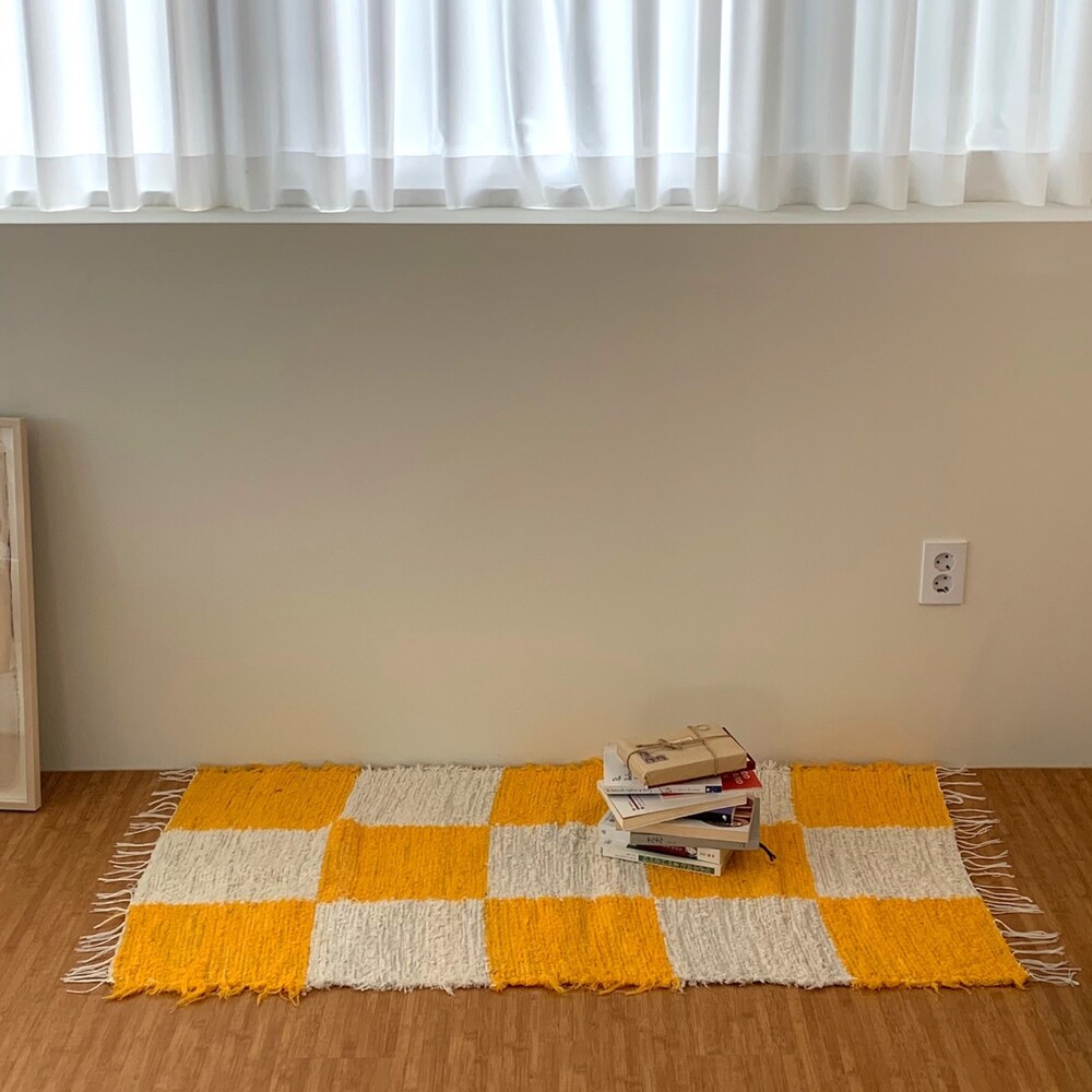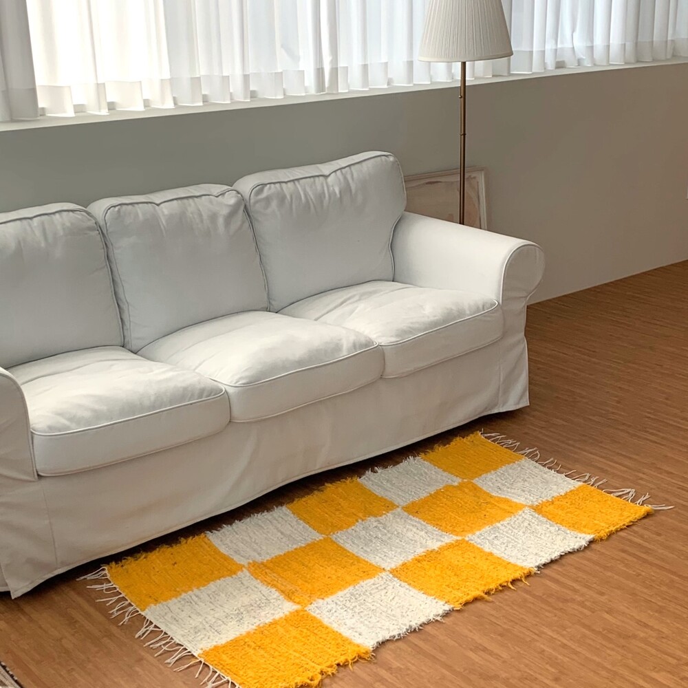 옐로우, 화이트 체커 무늬 러그 입니다.