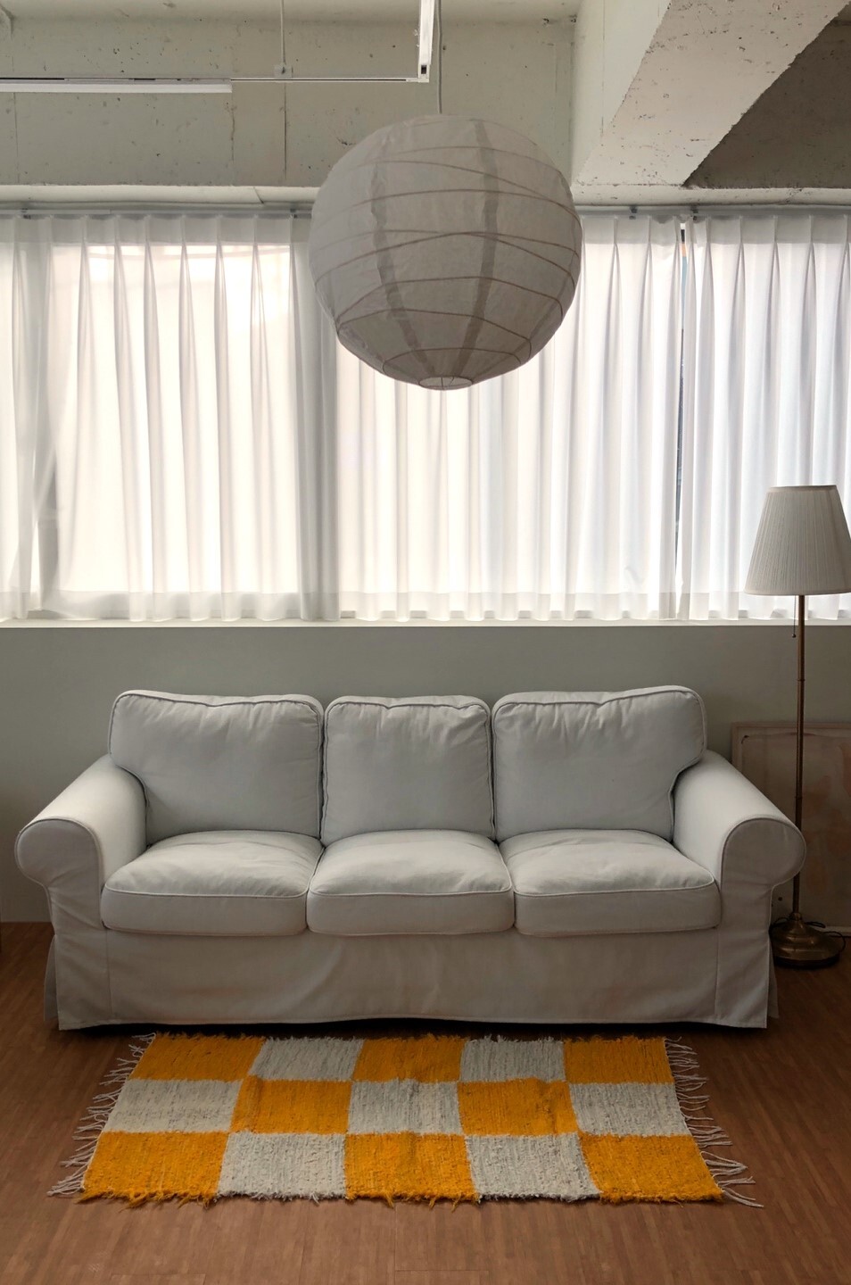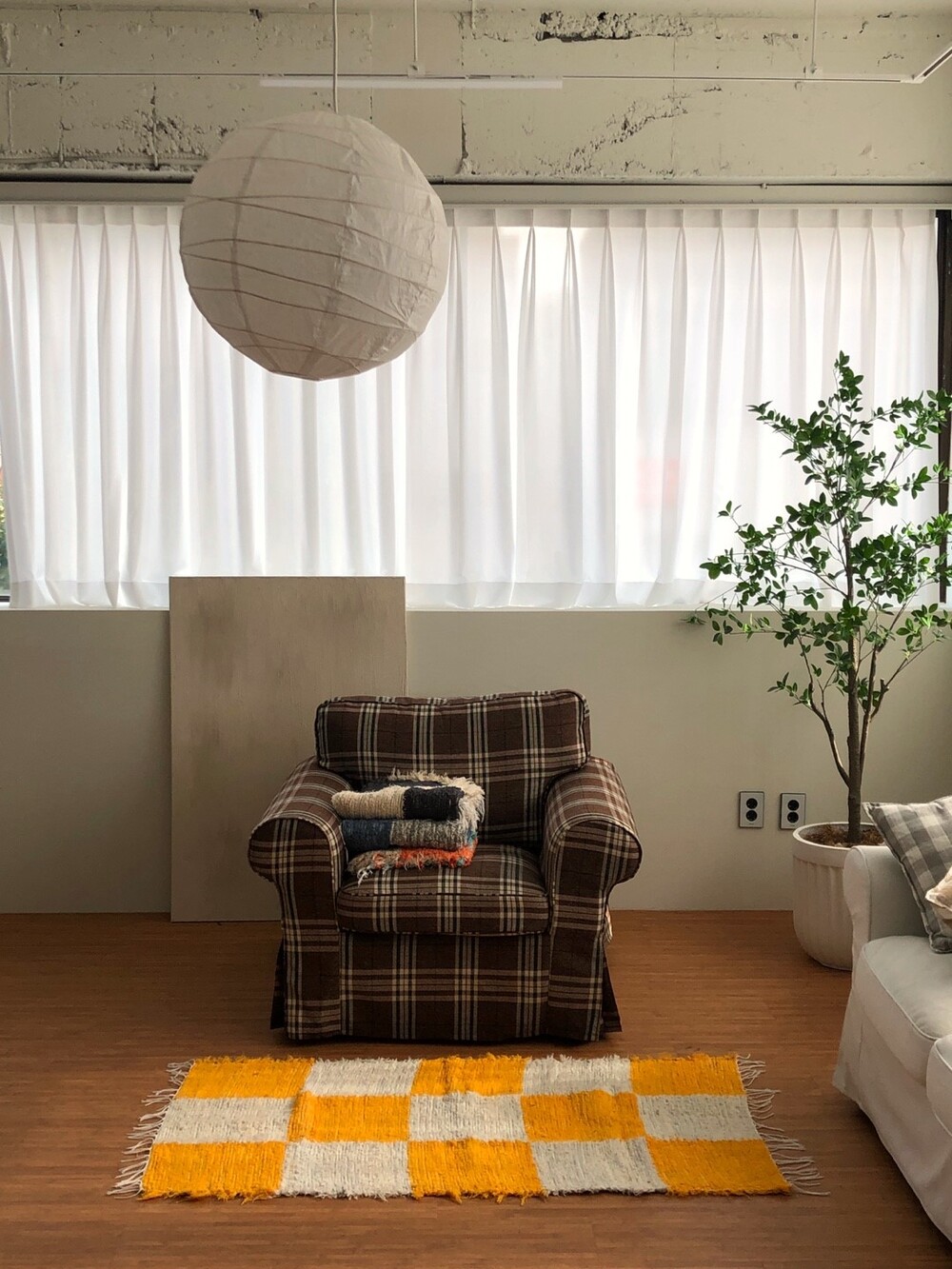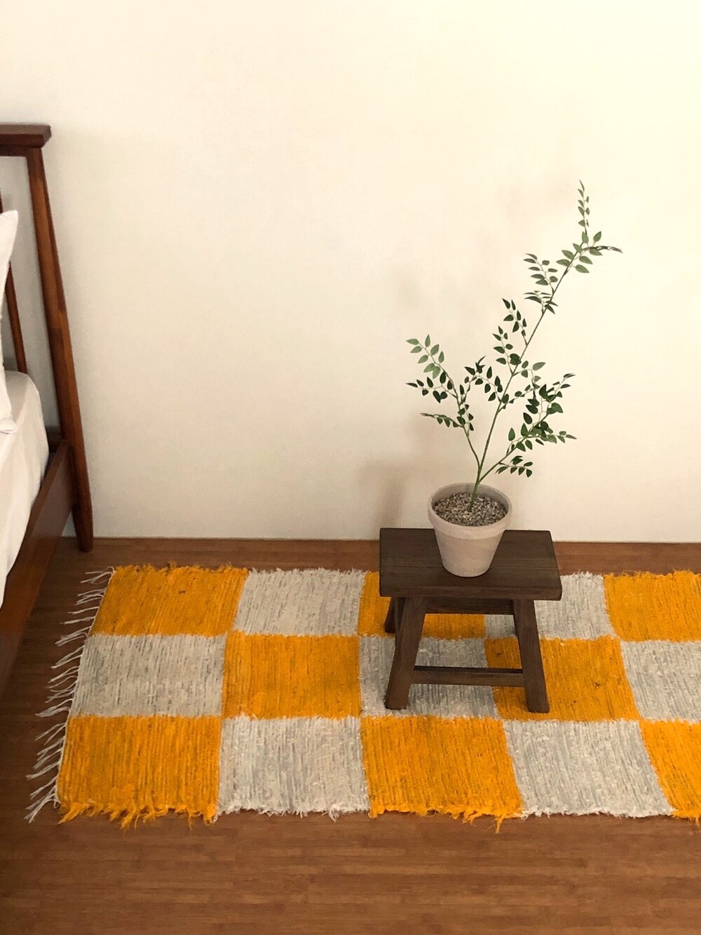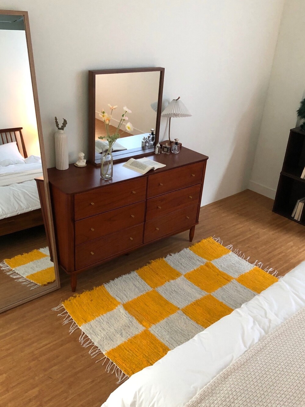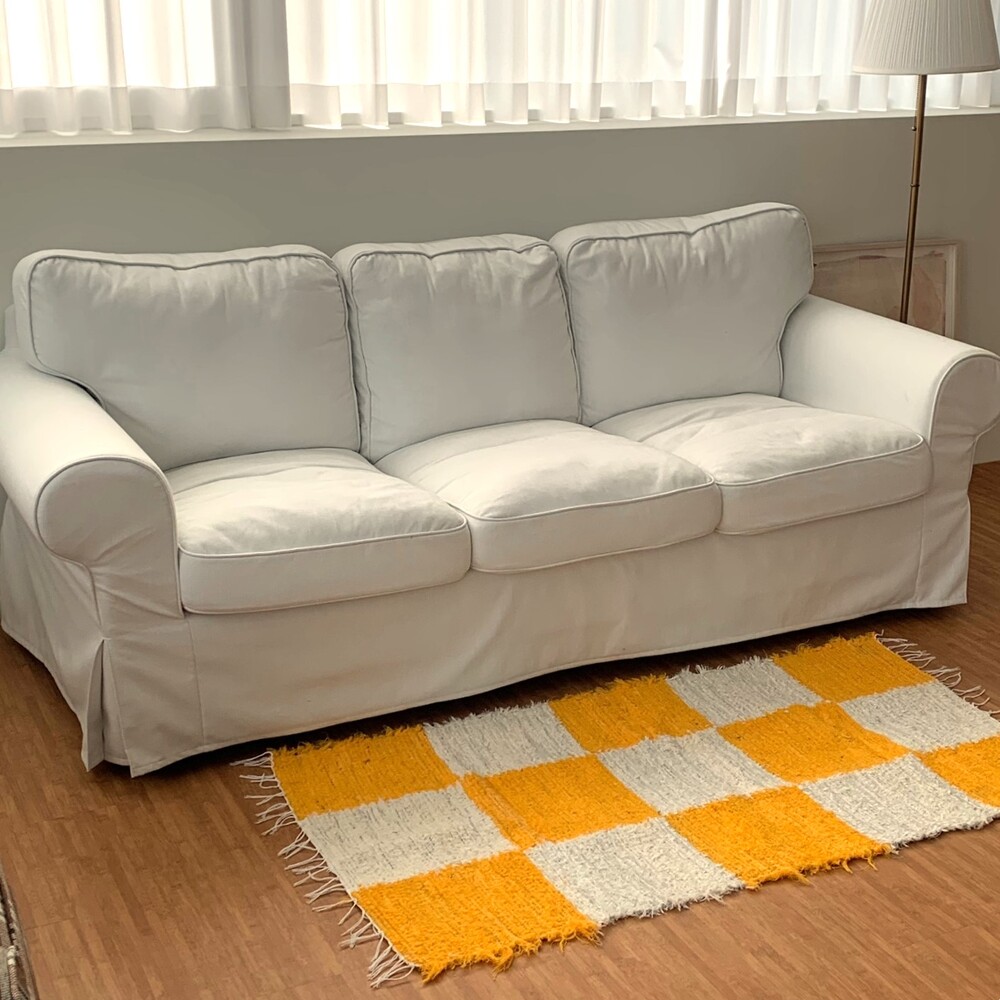 옐로우, 화이트 체커 무늬 러그 입니다.