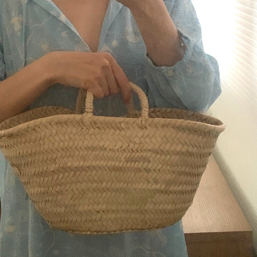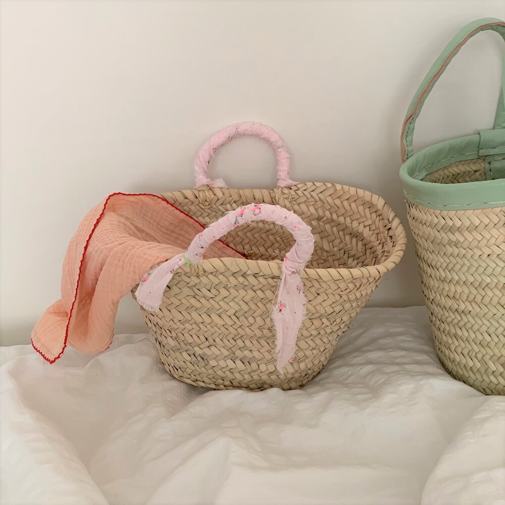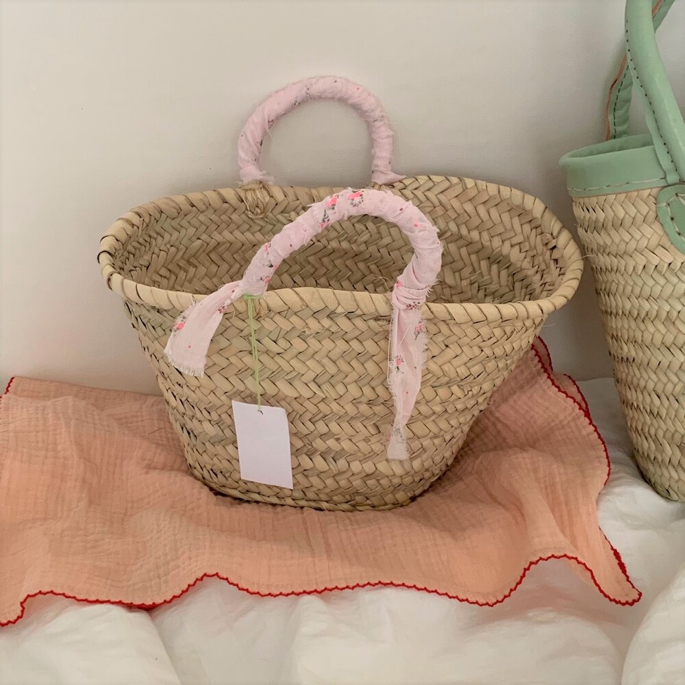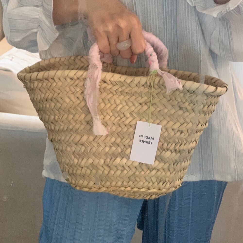 프랑스에서 온 기본 마르쉐 백 바디에 아주 사랑스러운 베이비핑크 컬러의 패브릭을 손잡이 부분에 감아 더욱 특별한 백이 되었습니다. 덕분에 손잡이에 거칠었던 부분도 보완되었구요 , 넉넉한 사이즈는 아닙니다. 아래 제품정보 란에서 수치는 확인해주세요. 마르쉐 백은 모든 제품을 하나씩 수작업으로 만들어 사이즈 모양도 조금씩 모두 다릅니다. 또한 제작과정과 소재 특성상 거칠고 정교하지 않은 마감 부분이 많이 보입니다. 많이 사용해보시는 분들은 이 또한 매력으로 느끼고 자주 구매하시는데요, 처음 구매 하시는분들은 아래 필독사항을 꼭 숙지하신 후 구매해주세요.