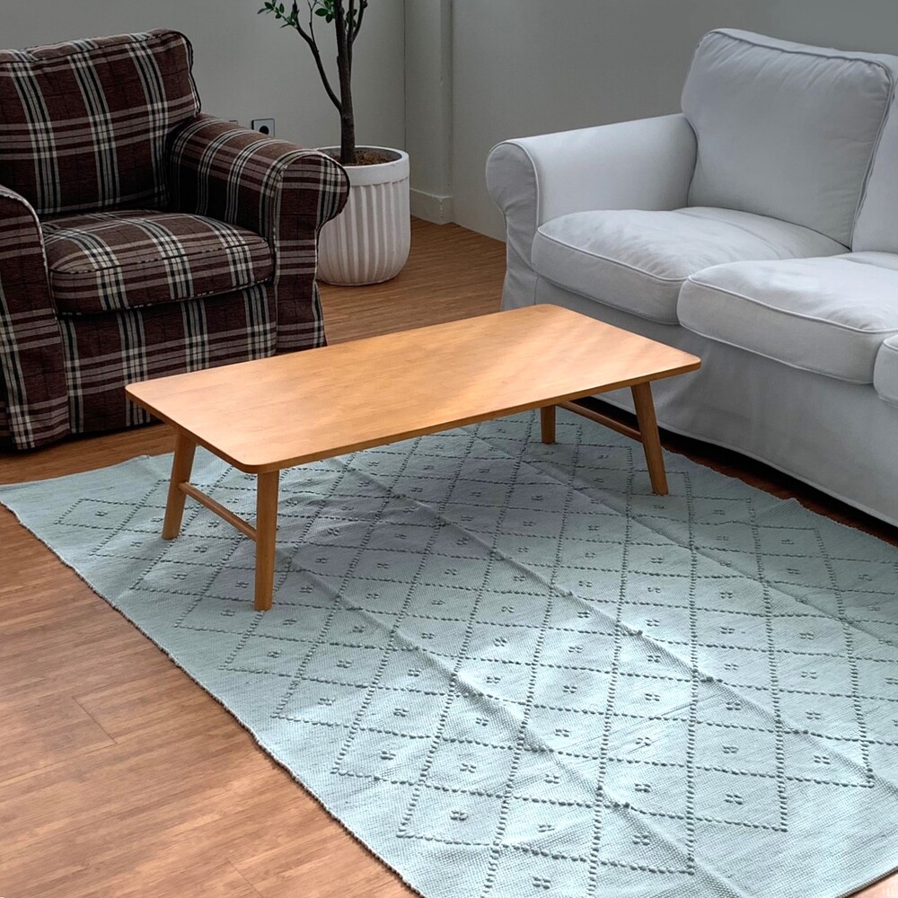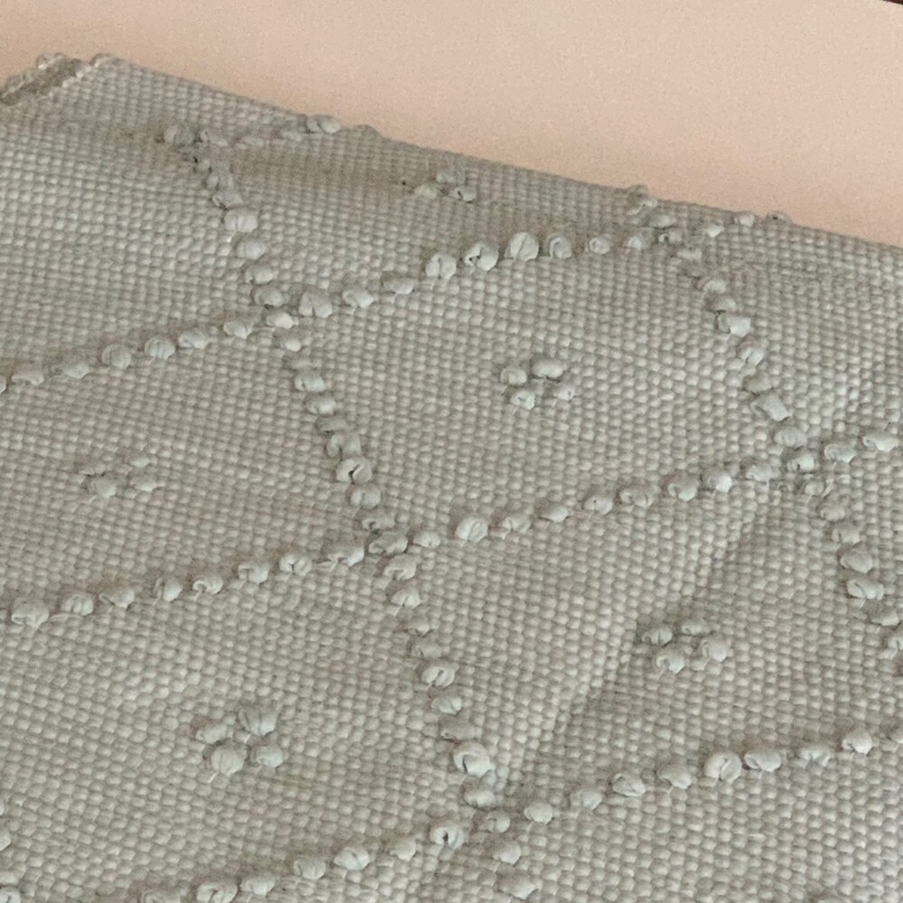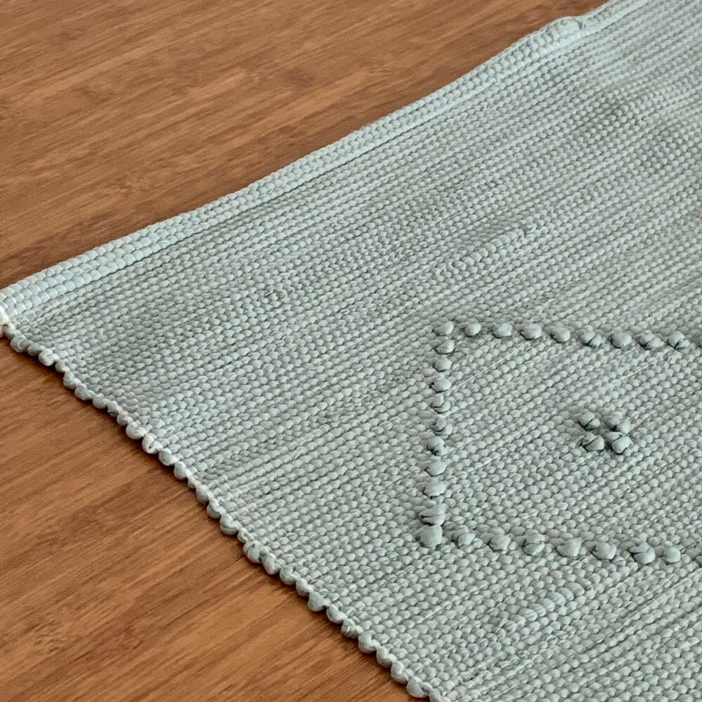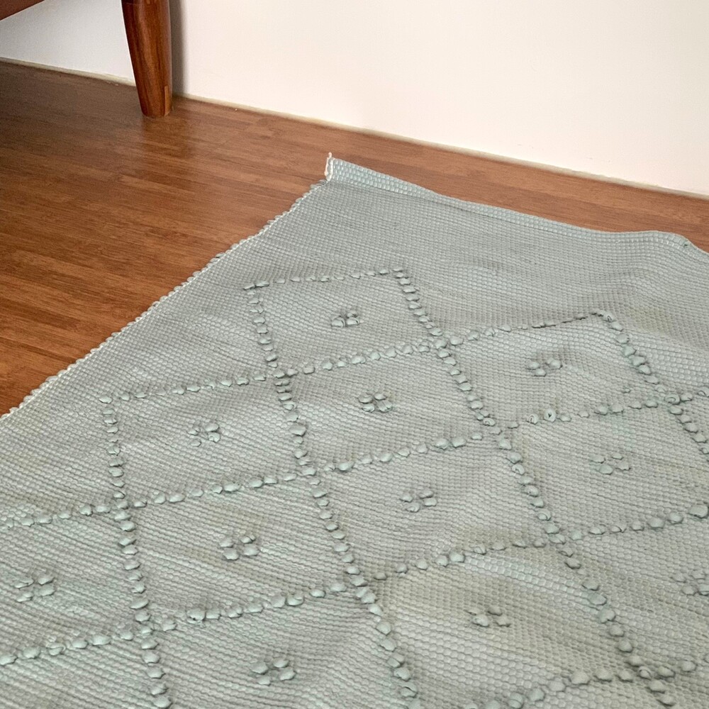 아쿠아 컬러에 도톰한 다이아몬드 디테일이 돋보이는 라지 사이즈 러그 입니다.